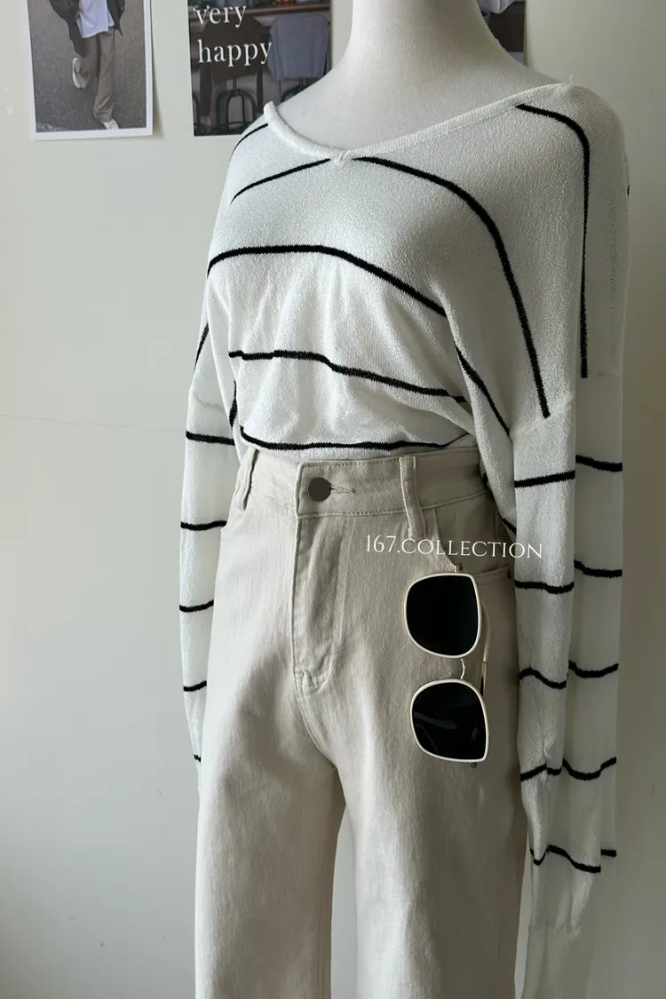 寬鬆大V領針織上衣
