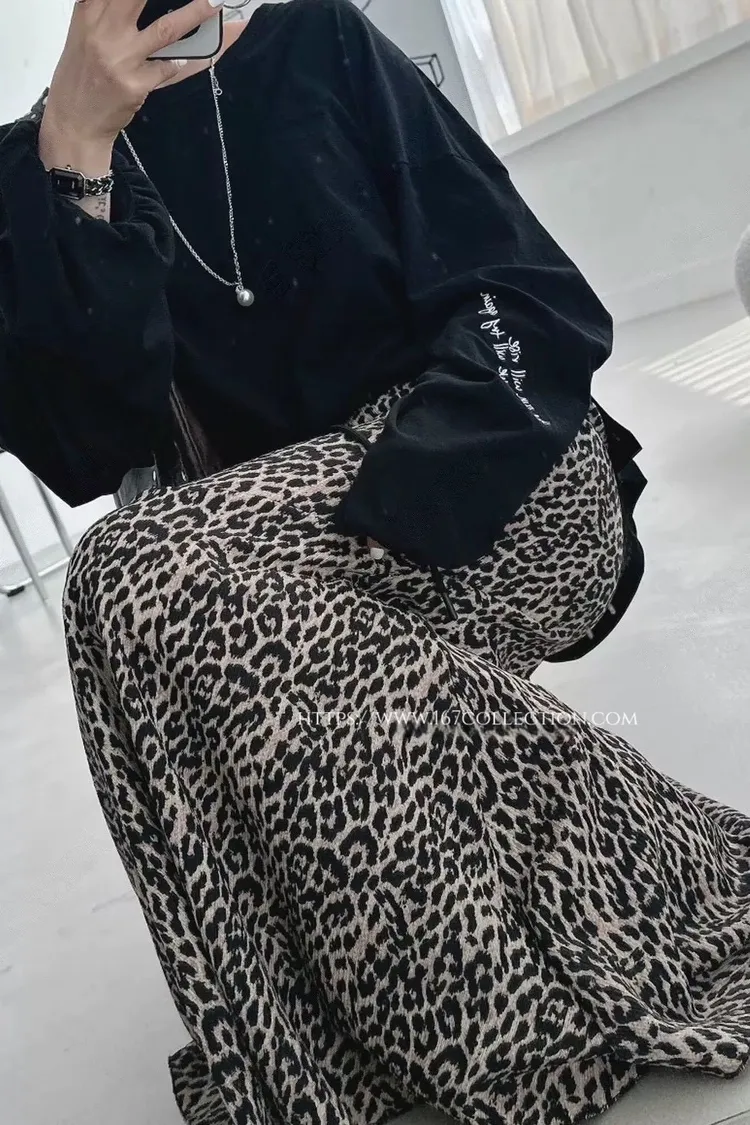 後開衩魚尾豹紋裙