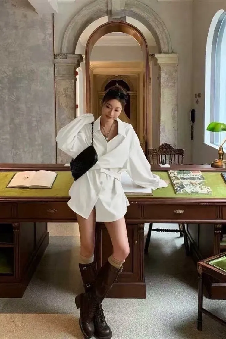 高級線條收腰襯衫