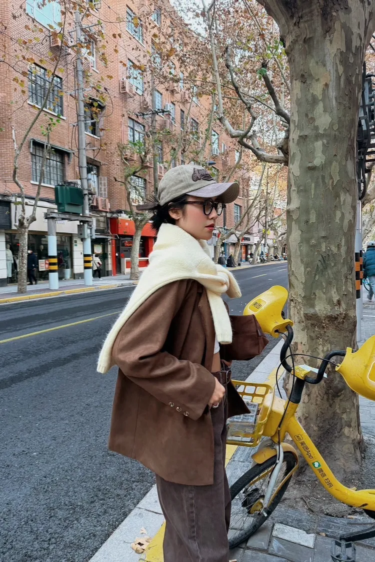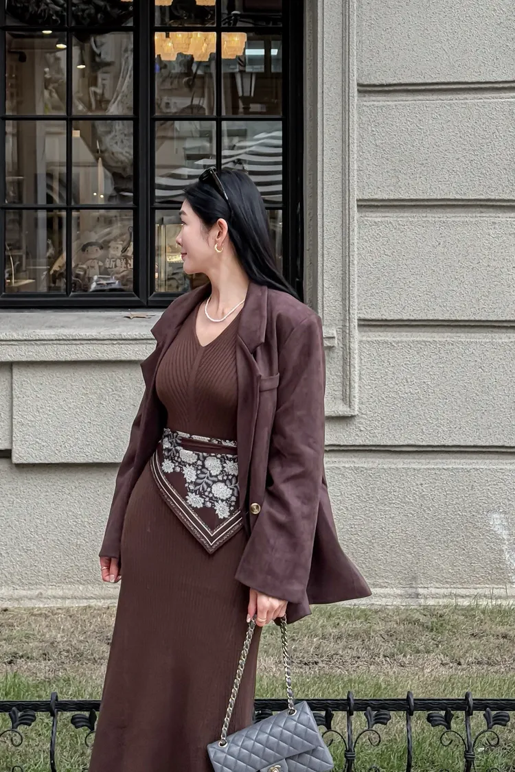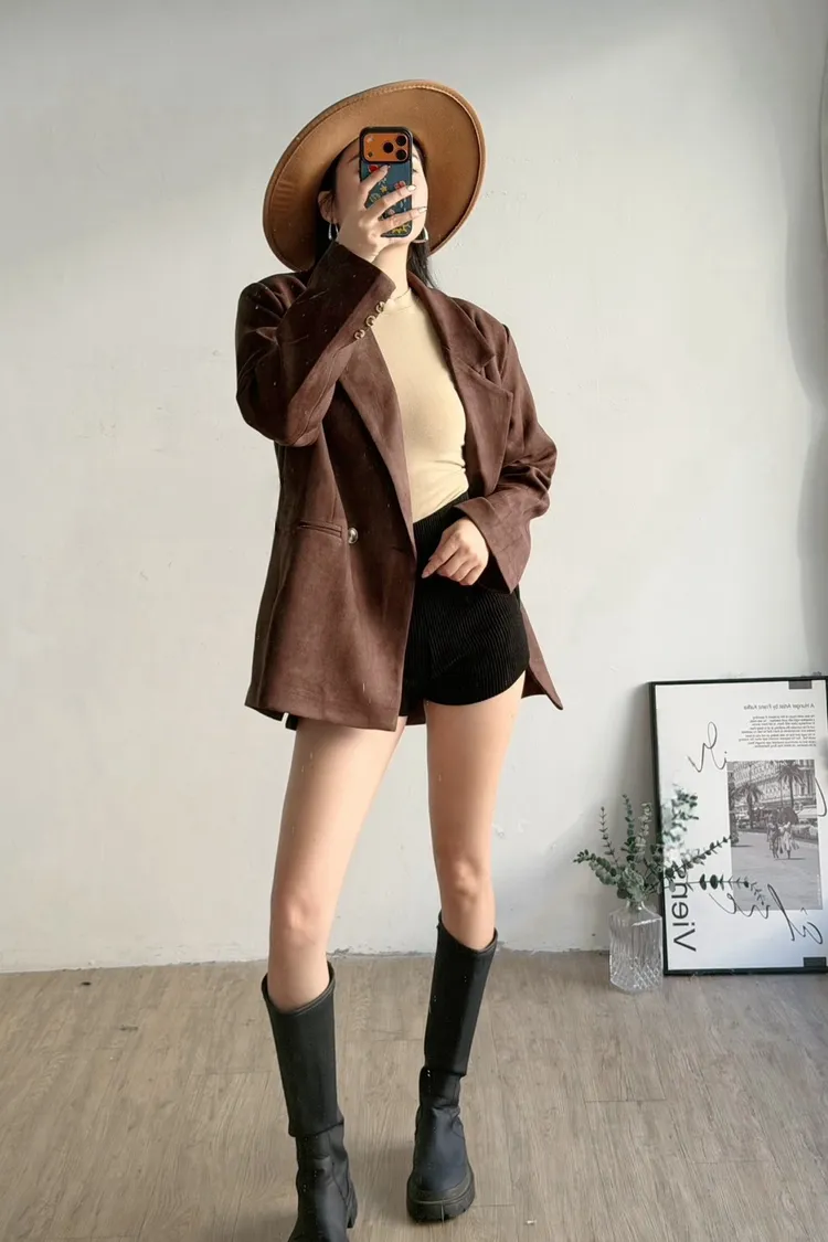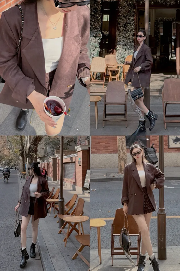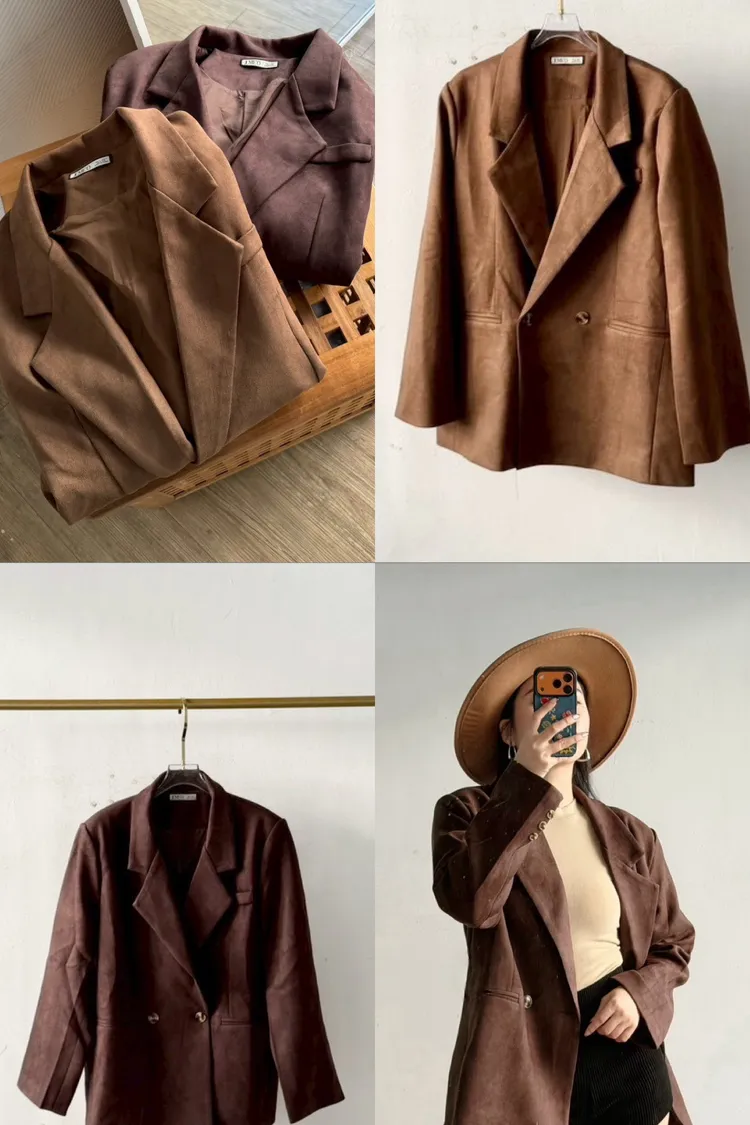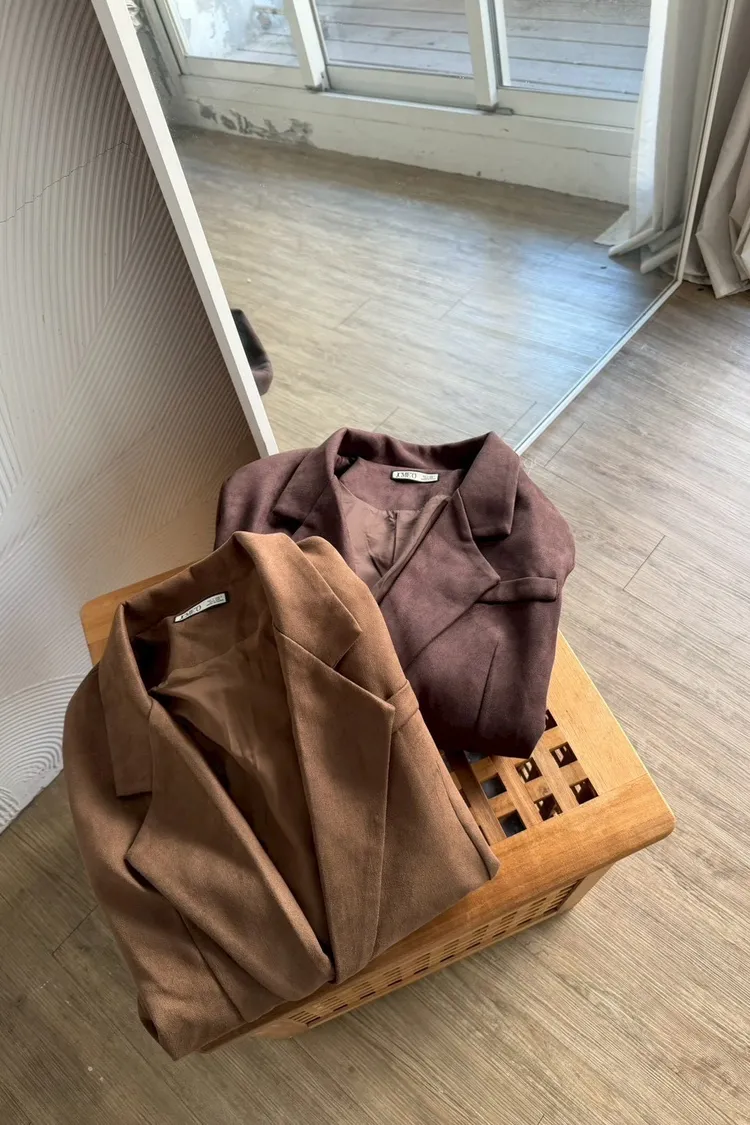 秋天栗子麂皮西裝外套
