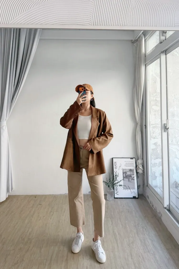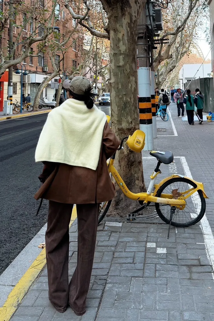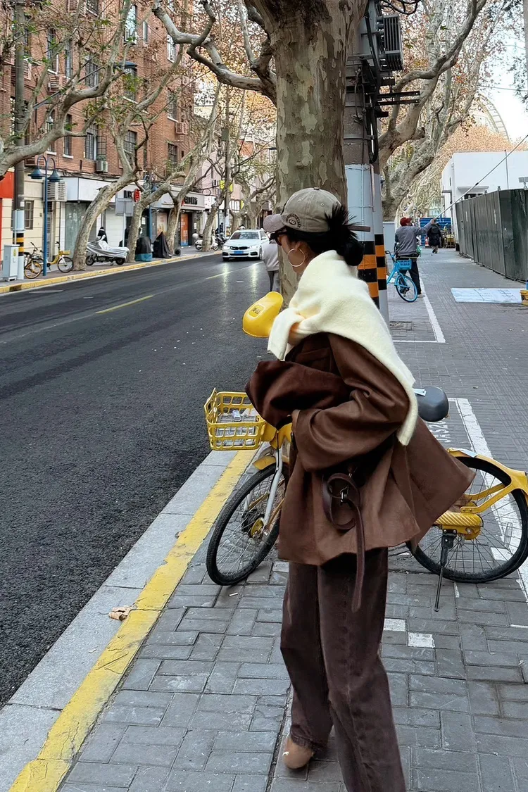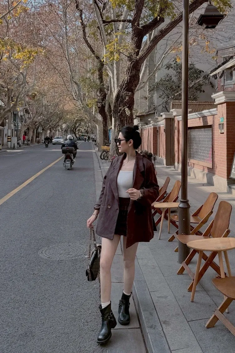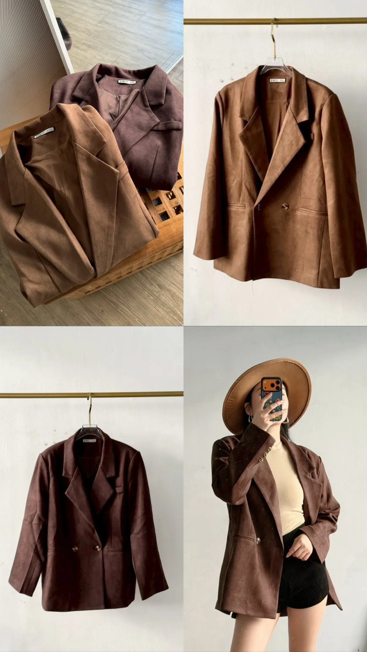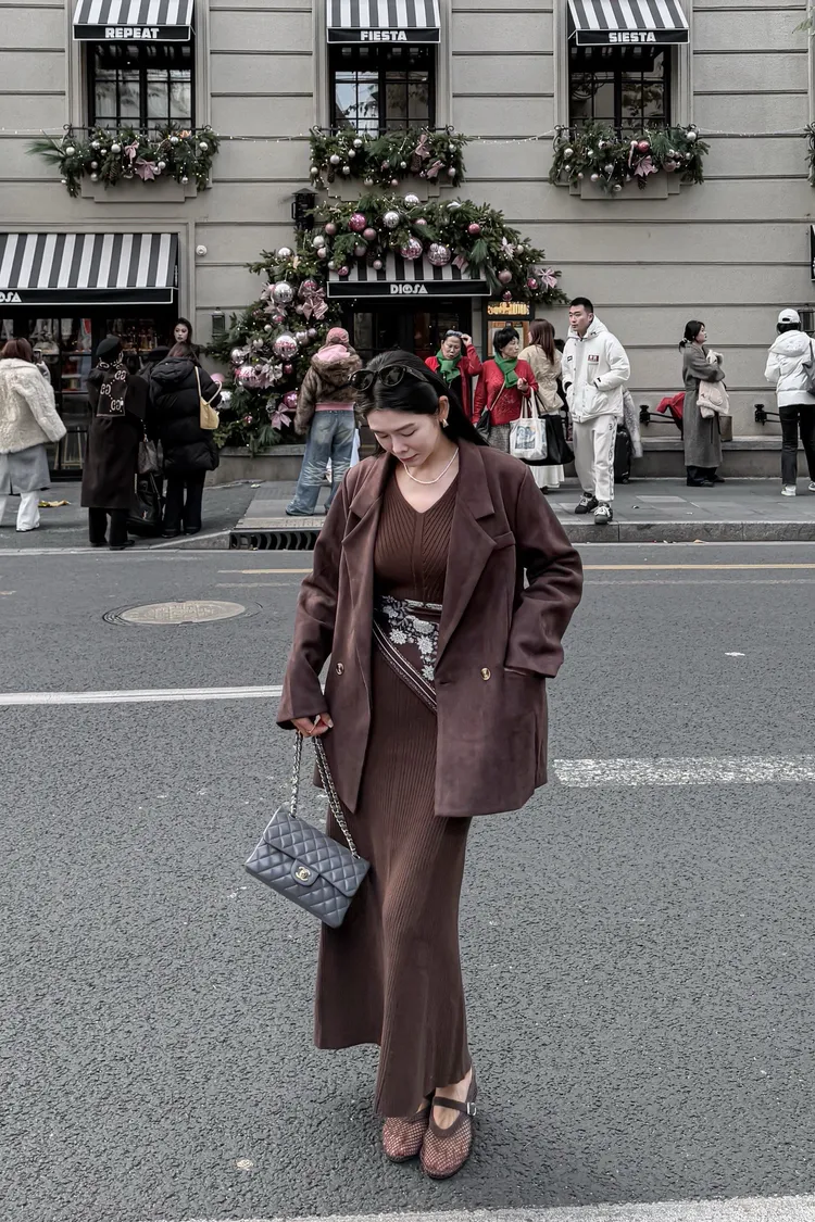 秋天栗子麂皮西裝外套