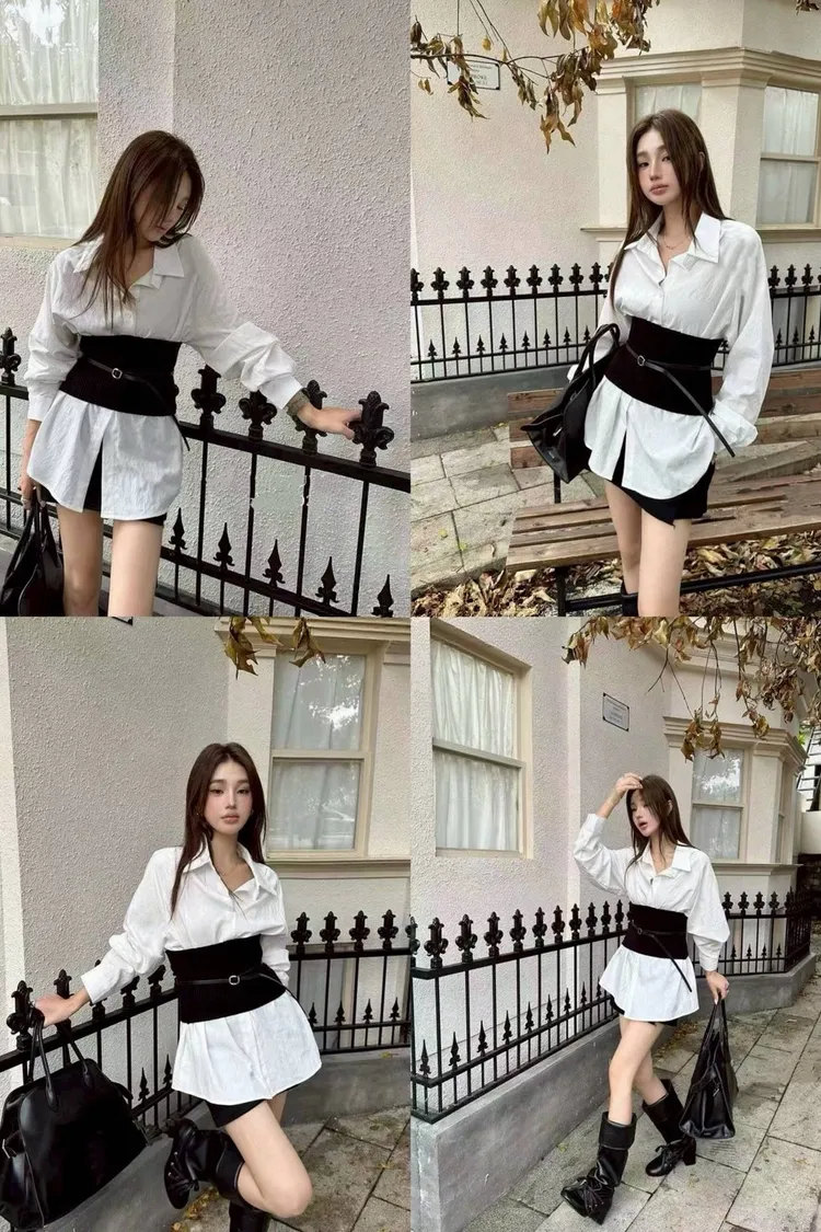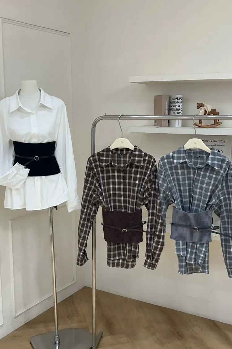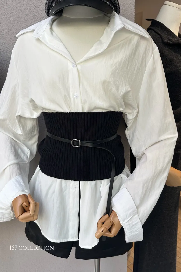 知性襯衫腰封上衣