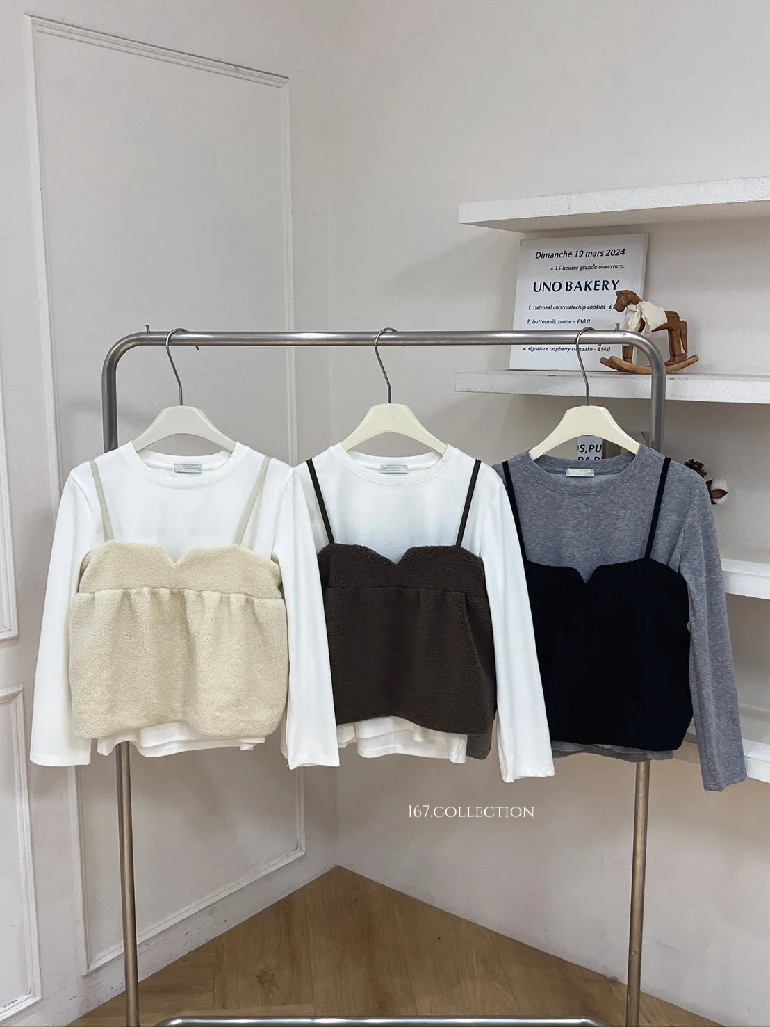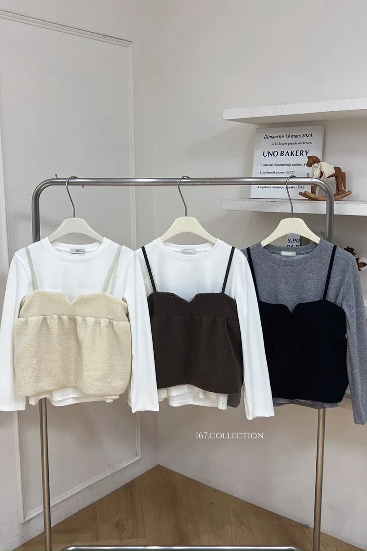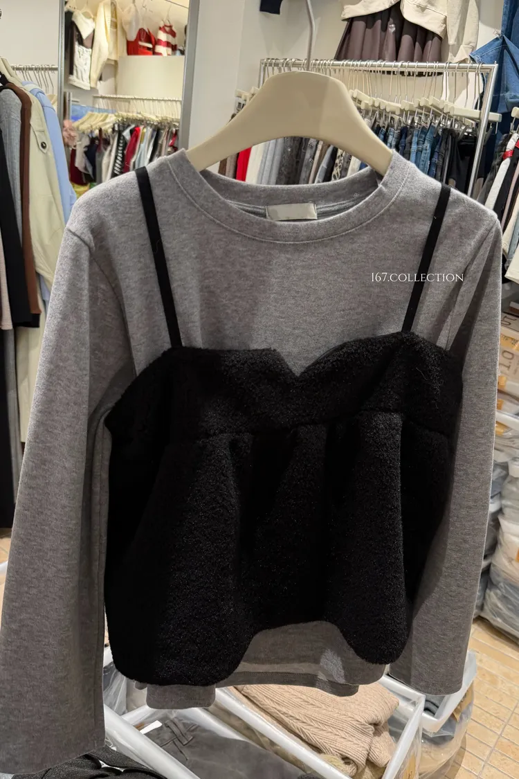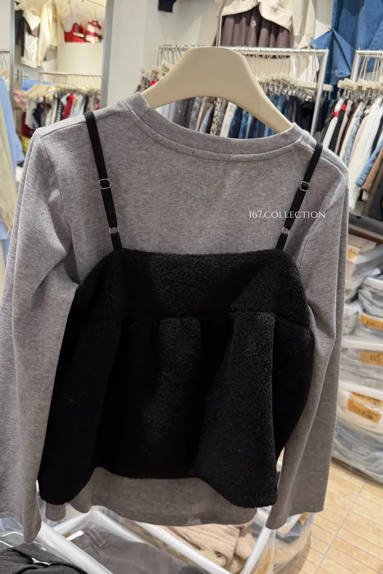 毛毛背心兩件式上衣