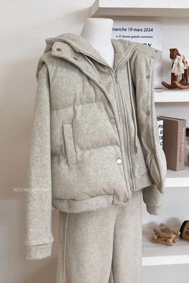 好划算!三件式連帽外套+背心套裝組
