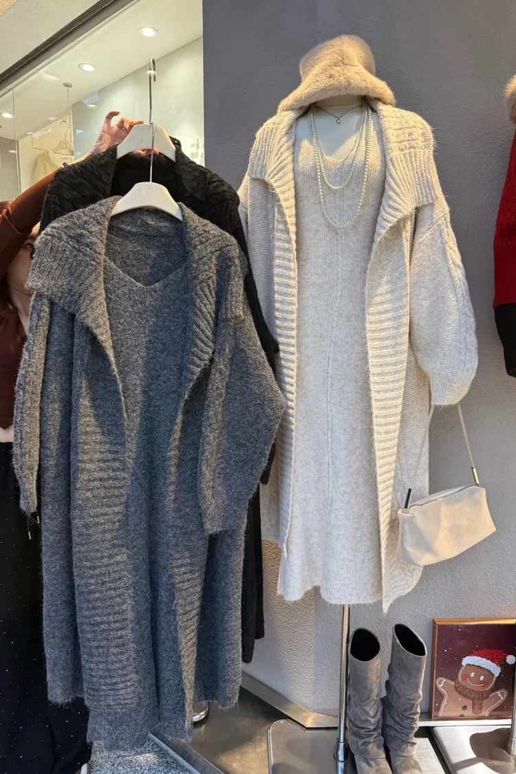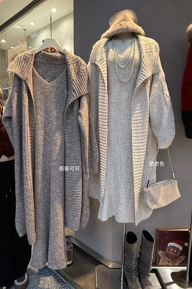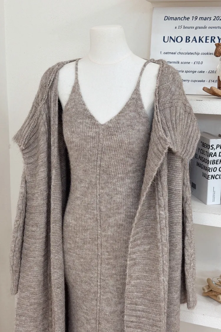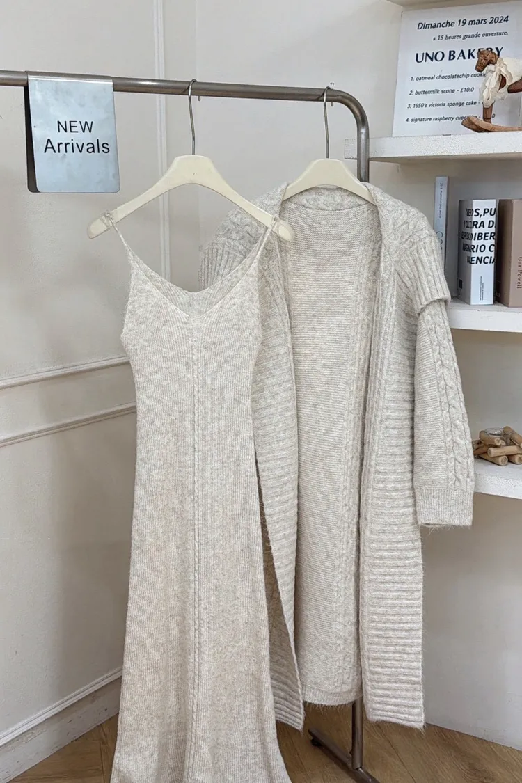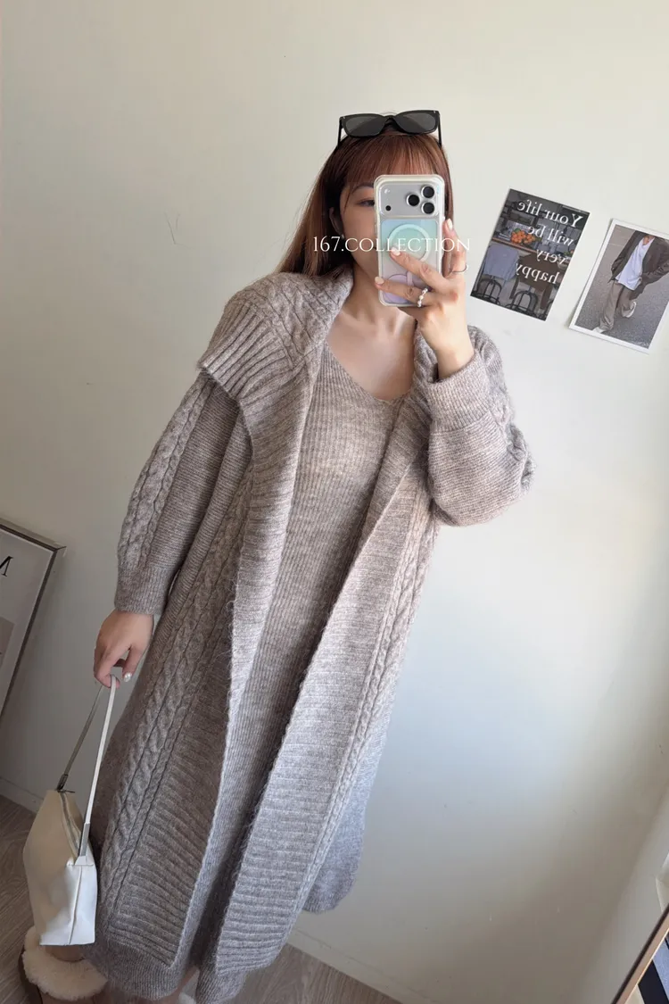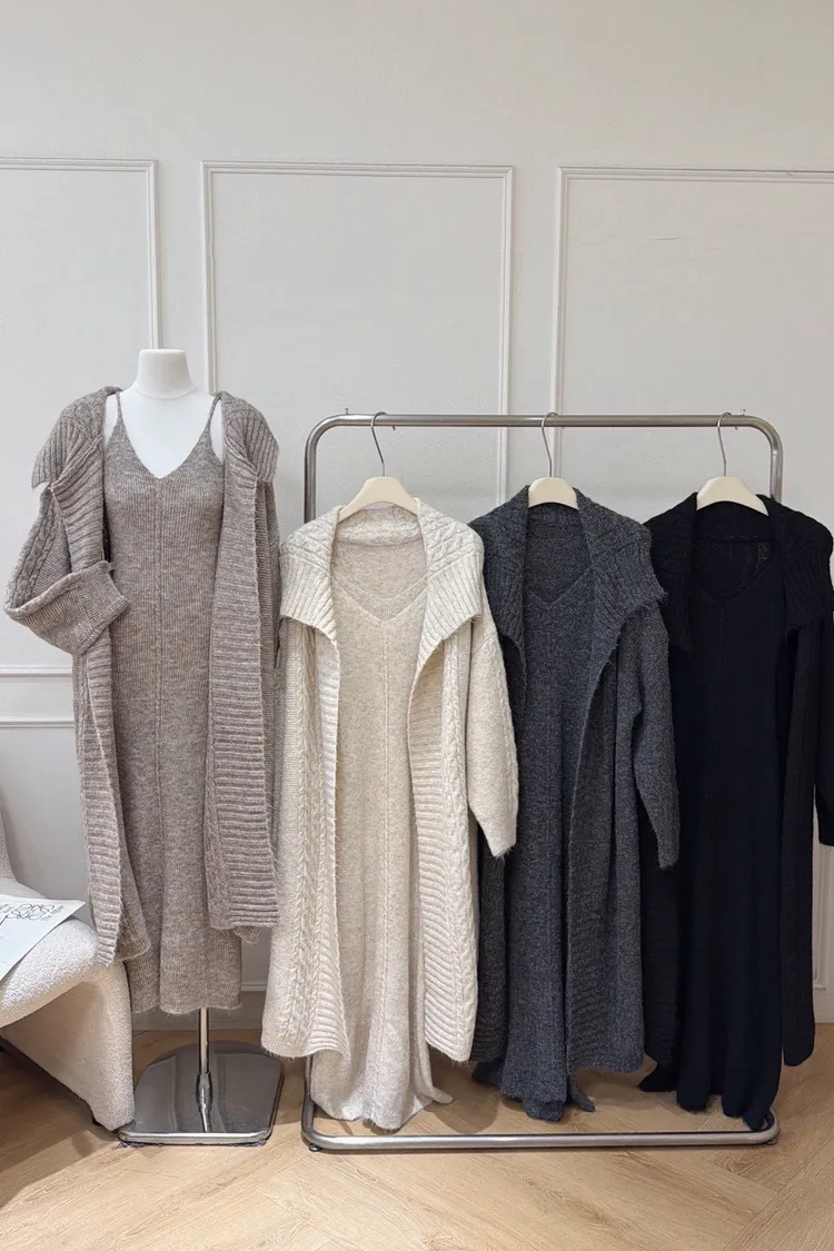 麻花針織洋裝長罩衫套裝組(闆娘推薦)