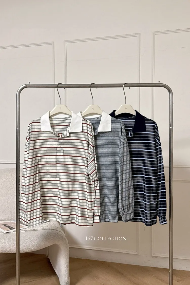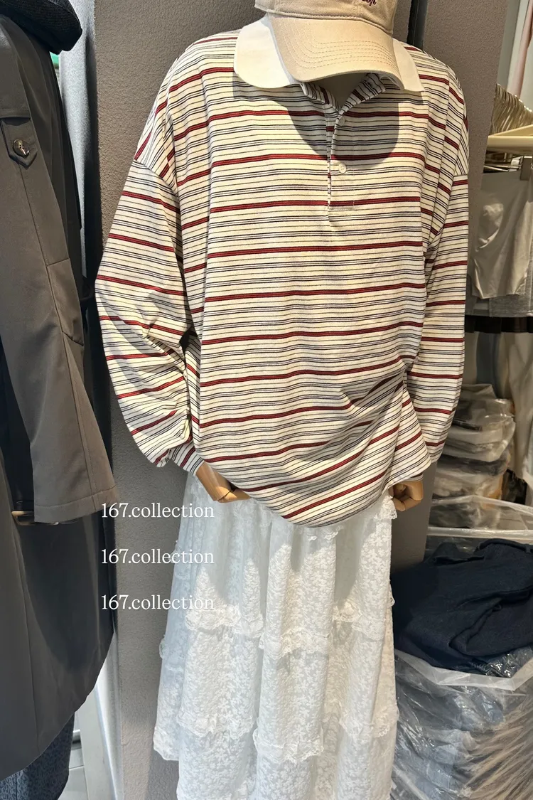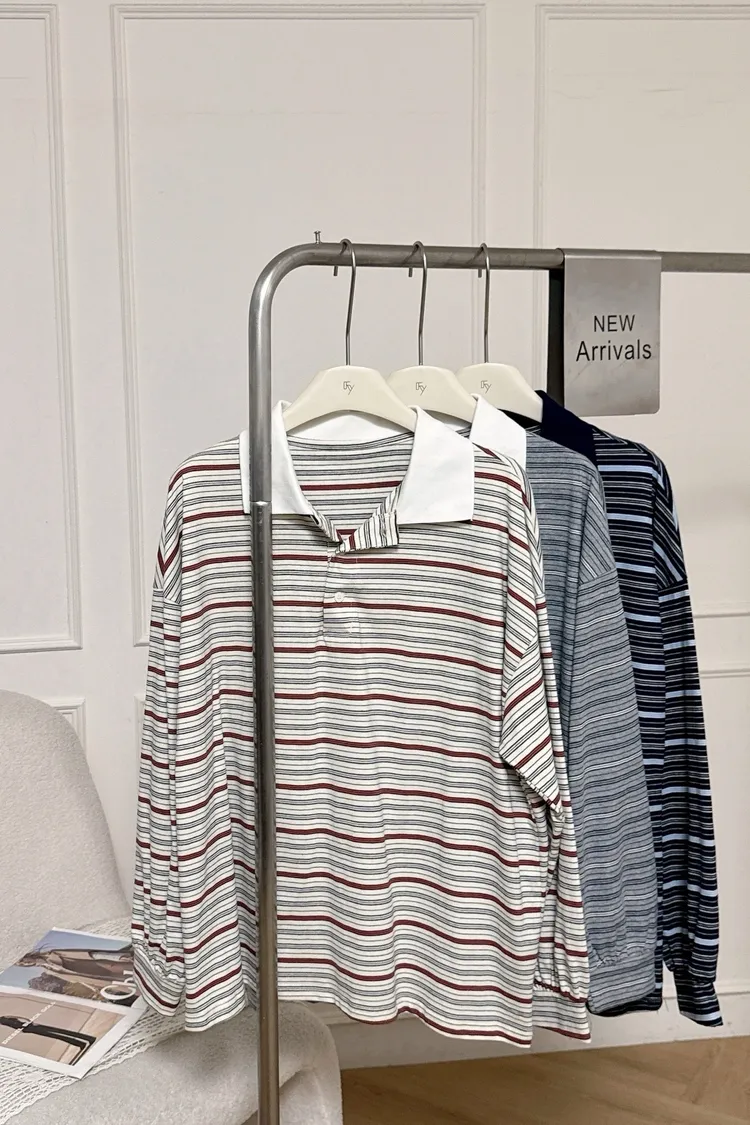 男友寬版polo條紋上衣
