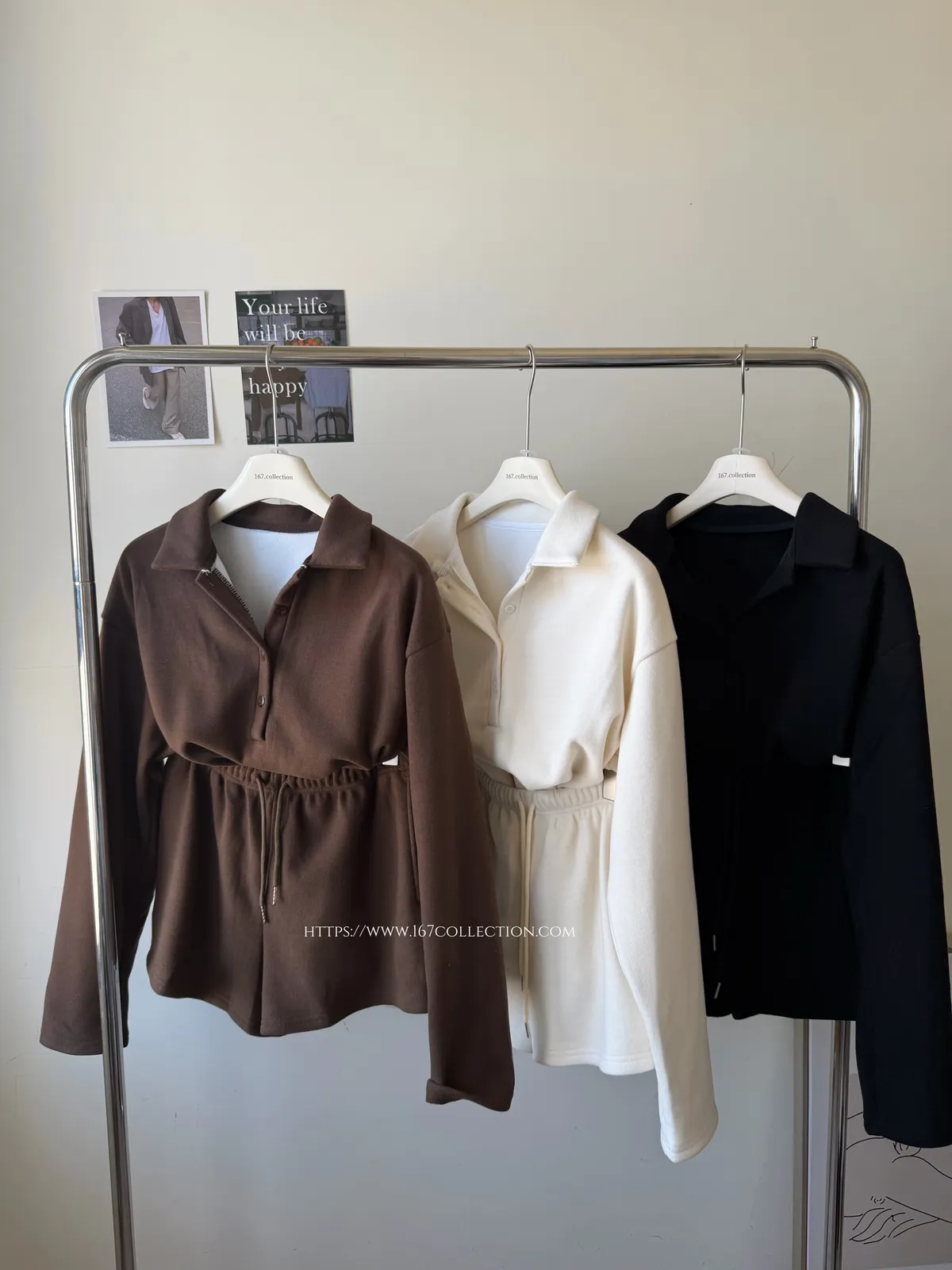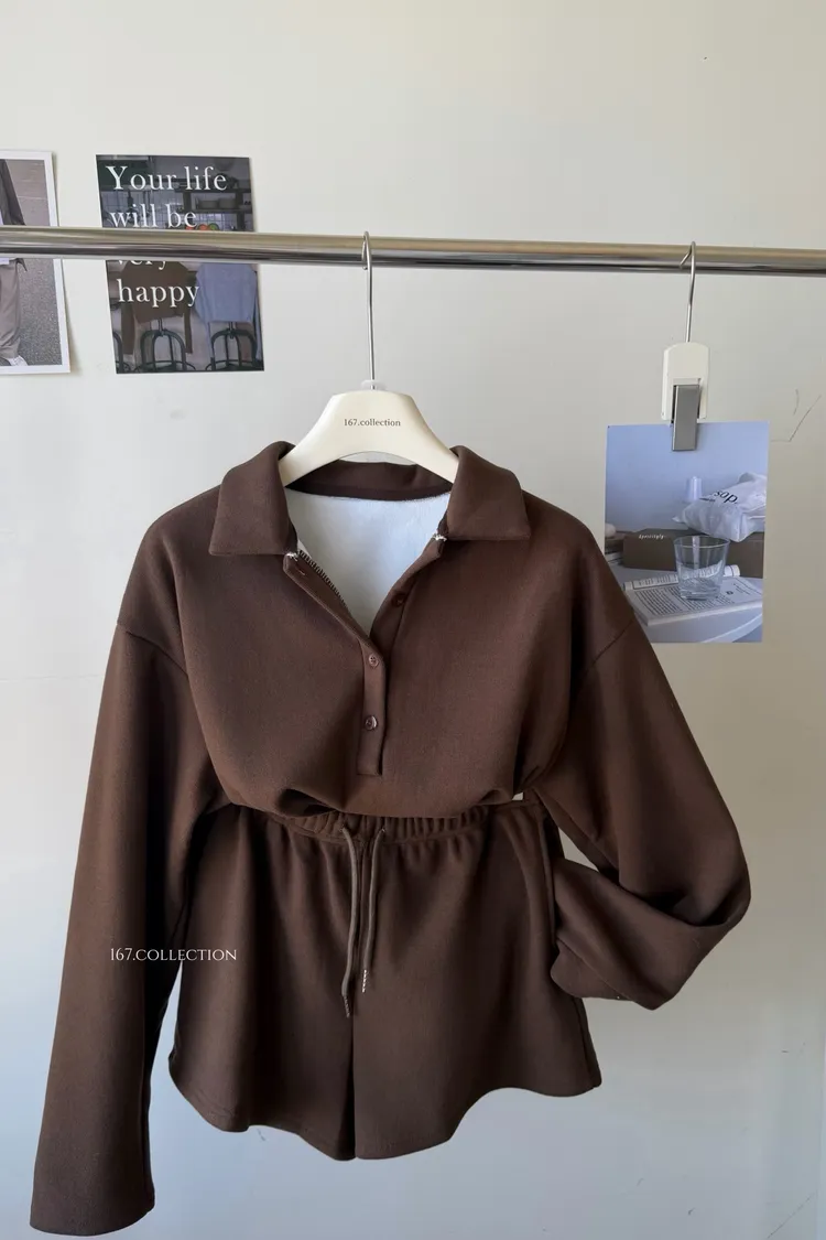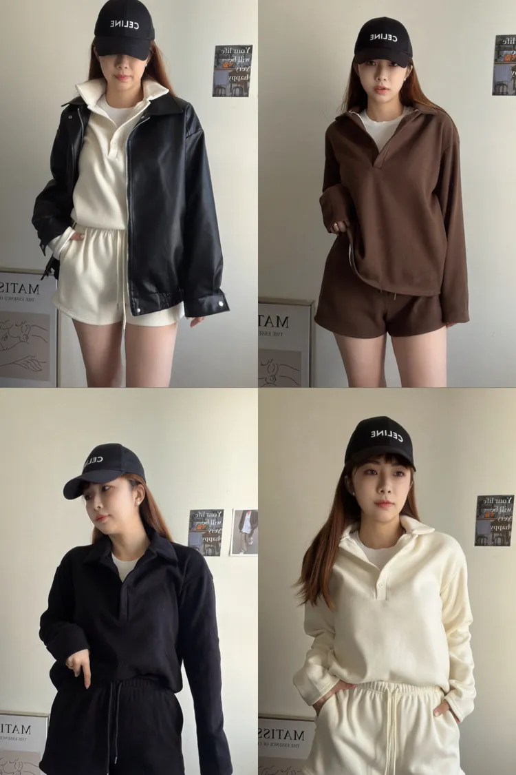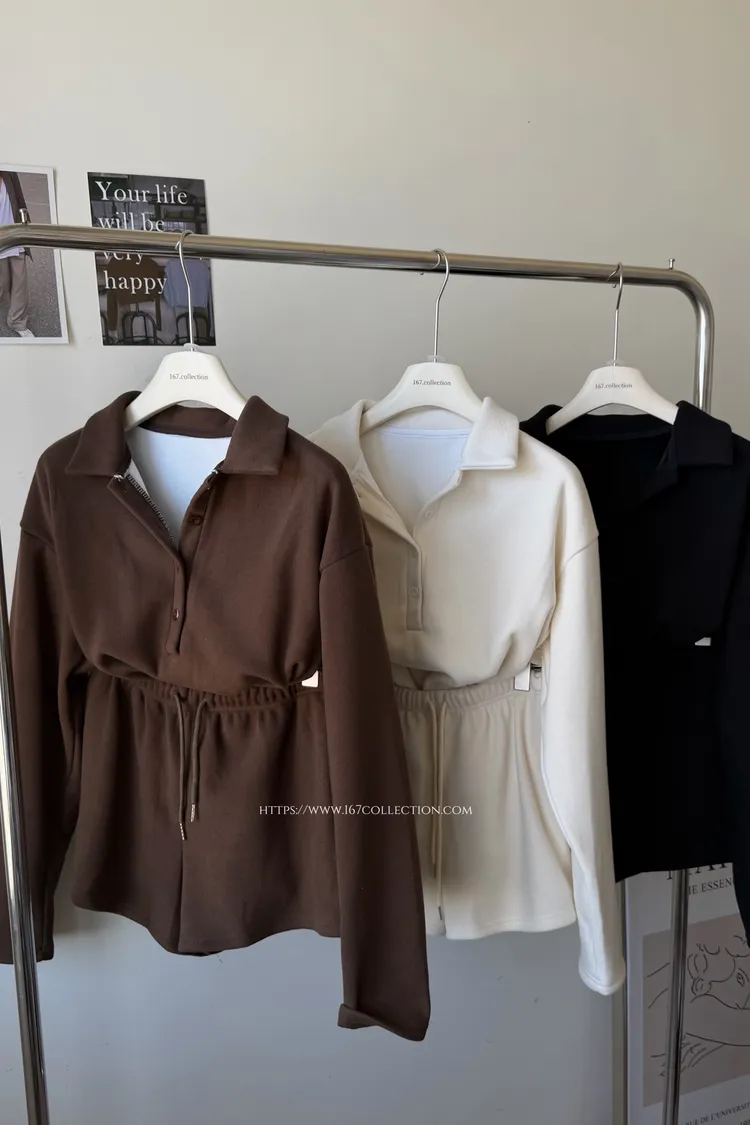 歐美POLO領質感磨毛套裝組