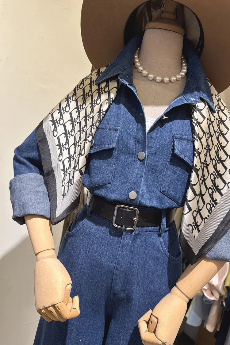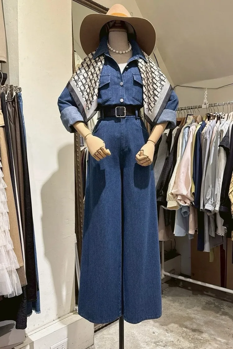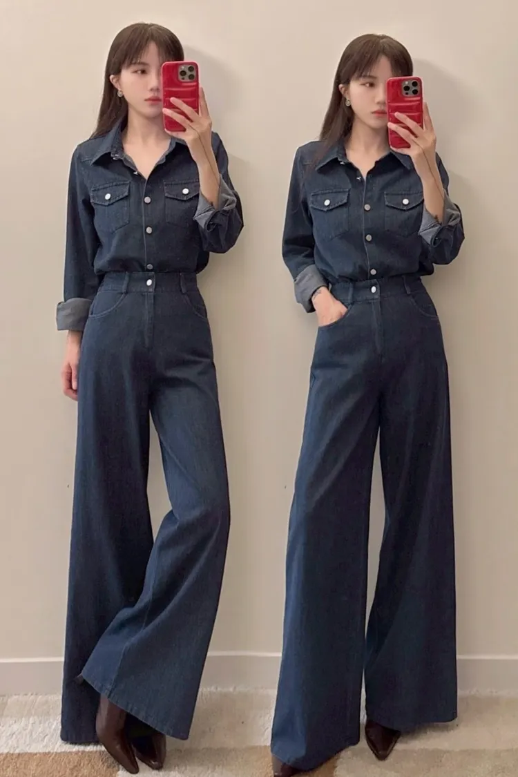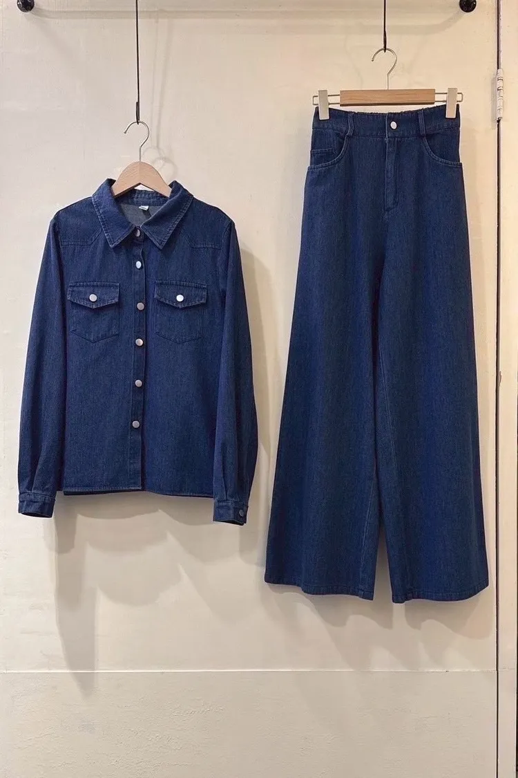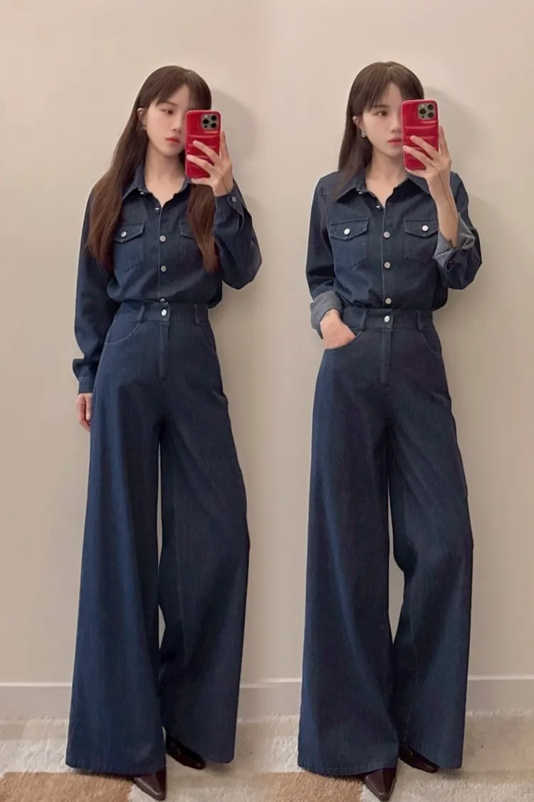 訂製牛仔襯衫+寬褲套裝組