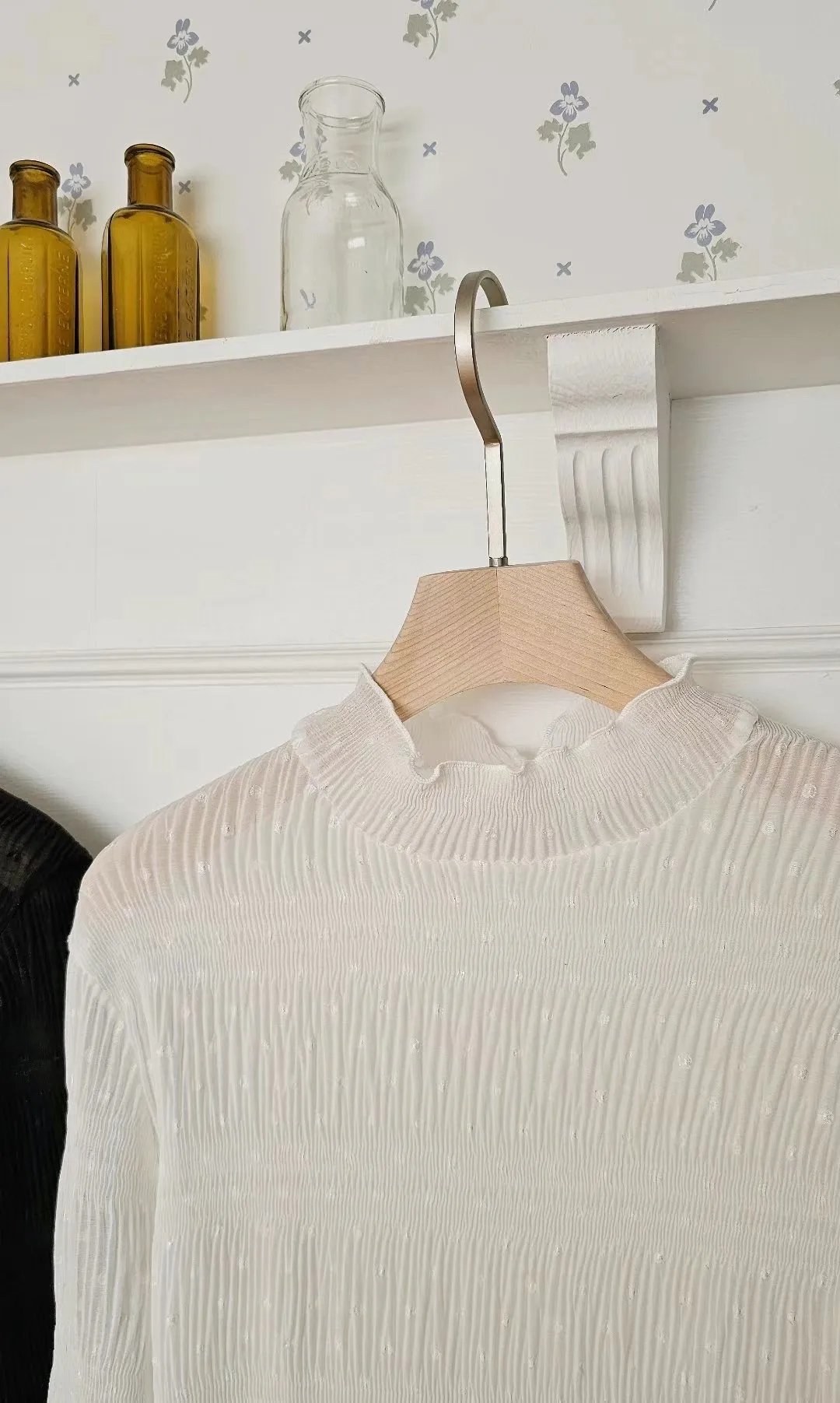 春天就愛這樣夢幻風格🥰🥰 溫柔小仙女款白色仙氣 🧚♀️黑色小女人不規則的直紋搭配波點圖案柔軟又帶立體感🤍🖤 透肌面料 照片中都是搭配淺色內衣單穿建議也可以搭配Bratop或是細肩帶打底~ 100%聚酯雪紡 onni搭配:鬆緊腰天絲闊腿牛仔褲
