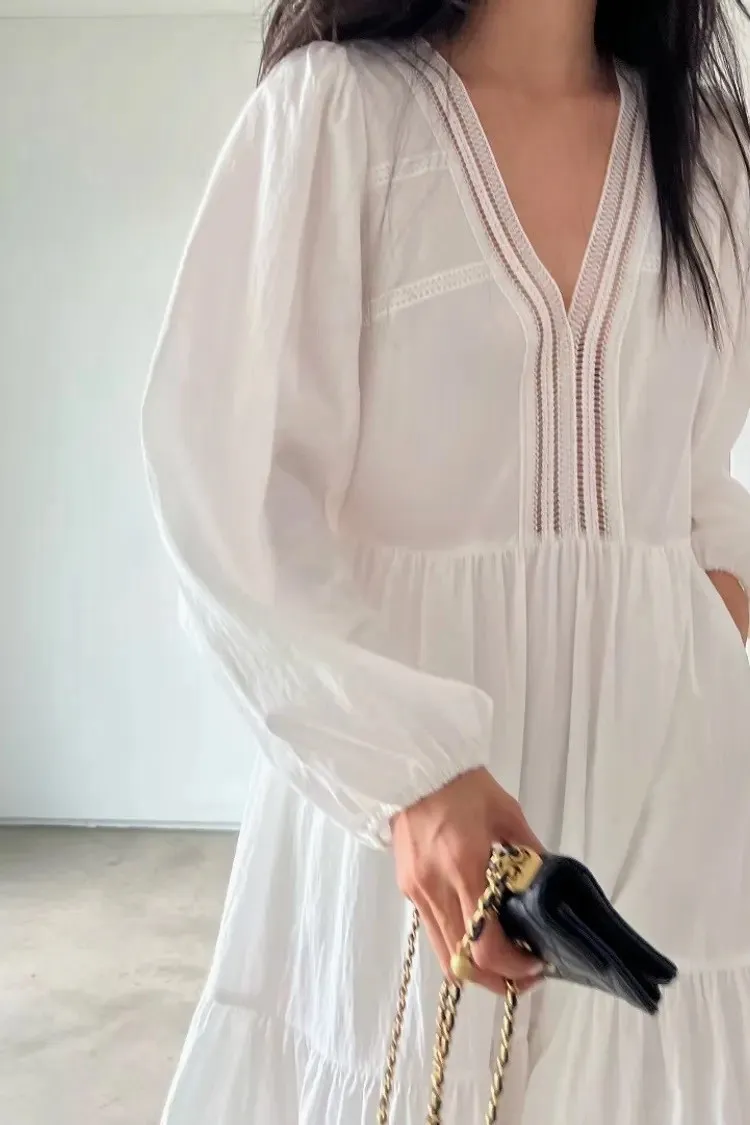 正韓 雅典娜女神澎袖鏤空長洋裝