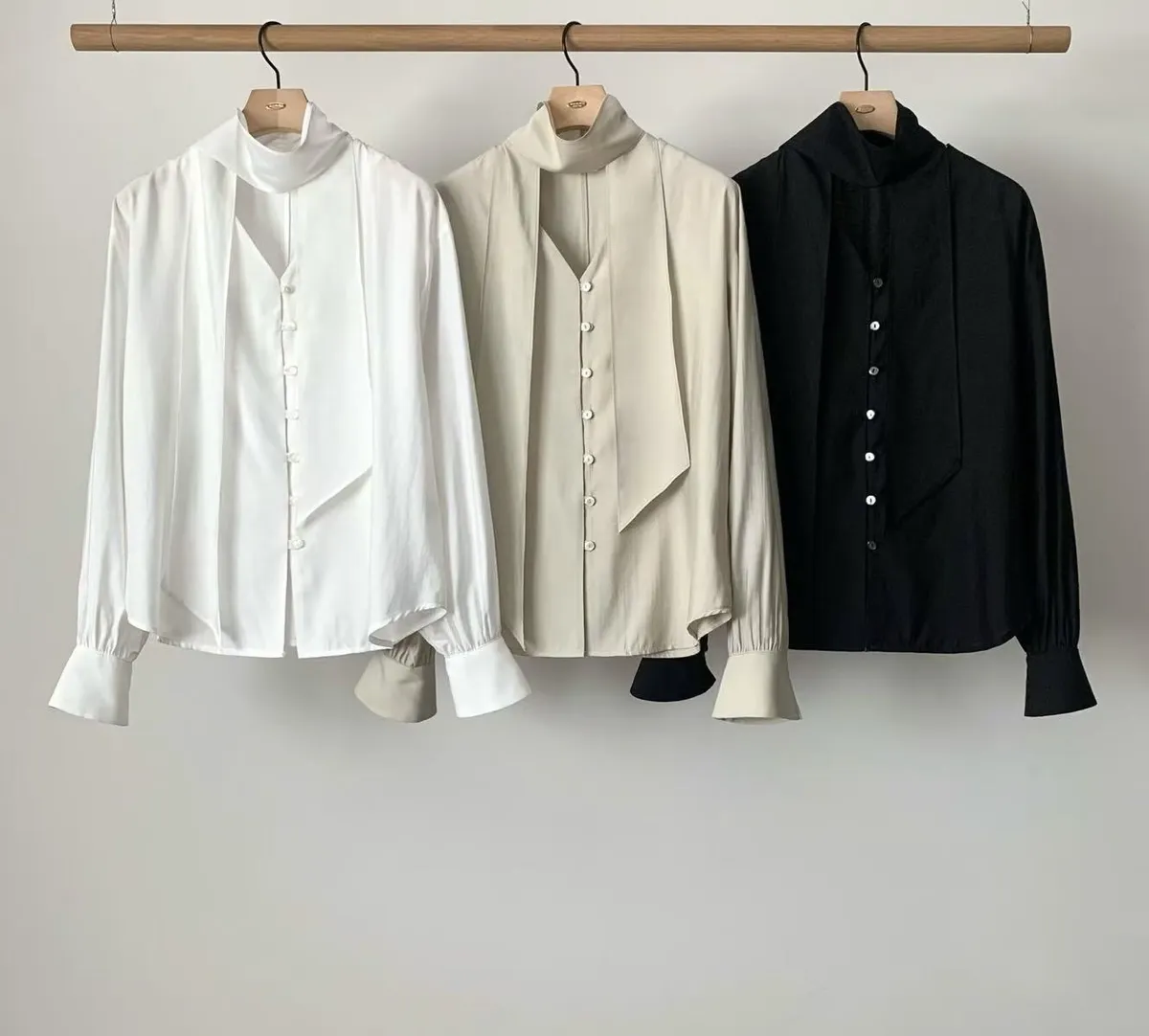 正韓 一秒變身韓國歐尼!繞脖質感襯衫