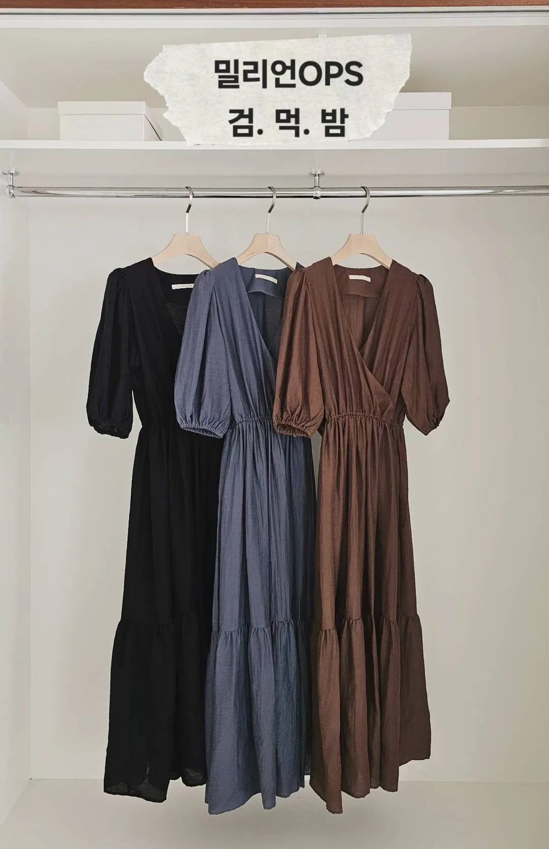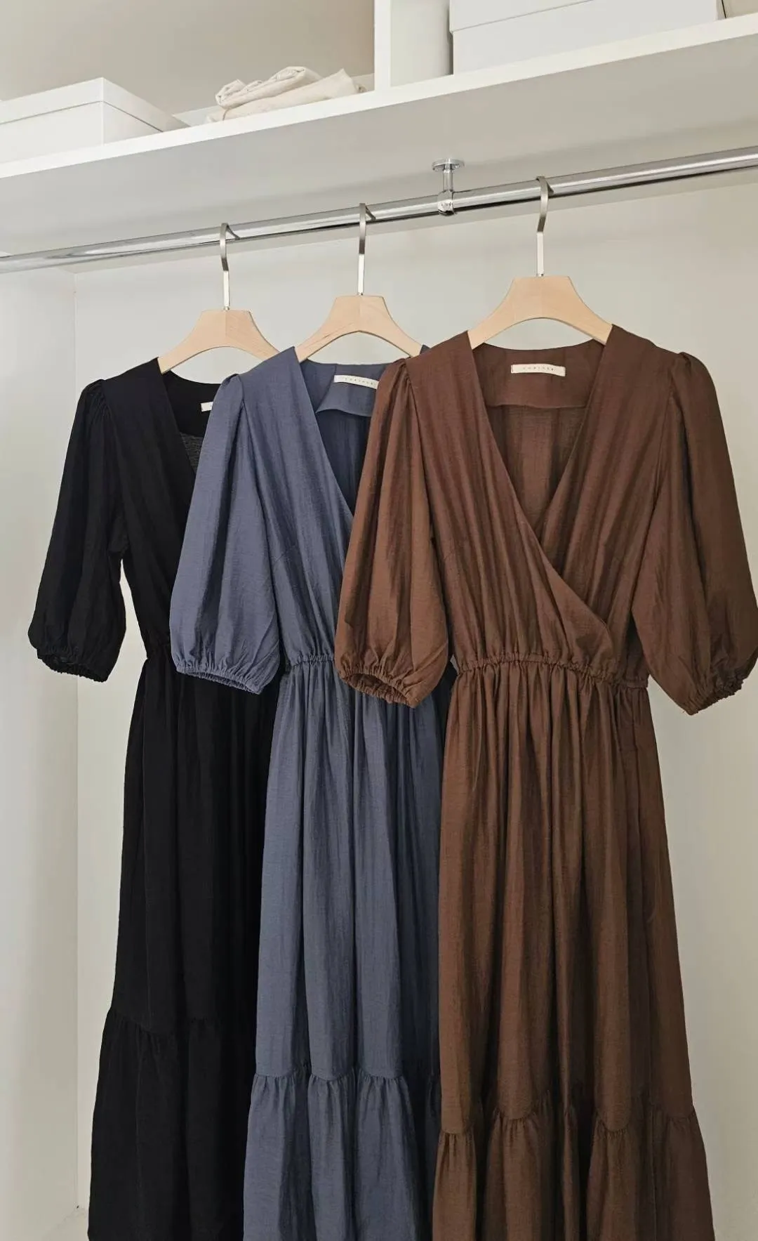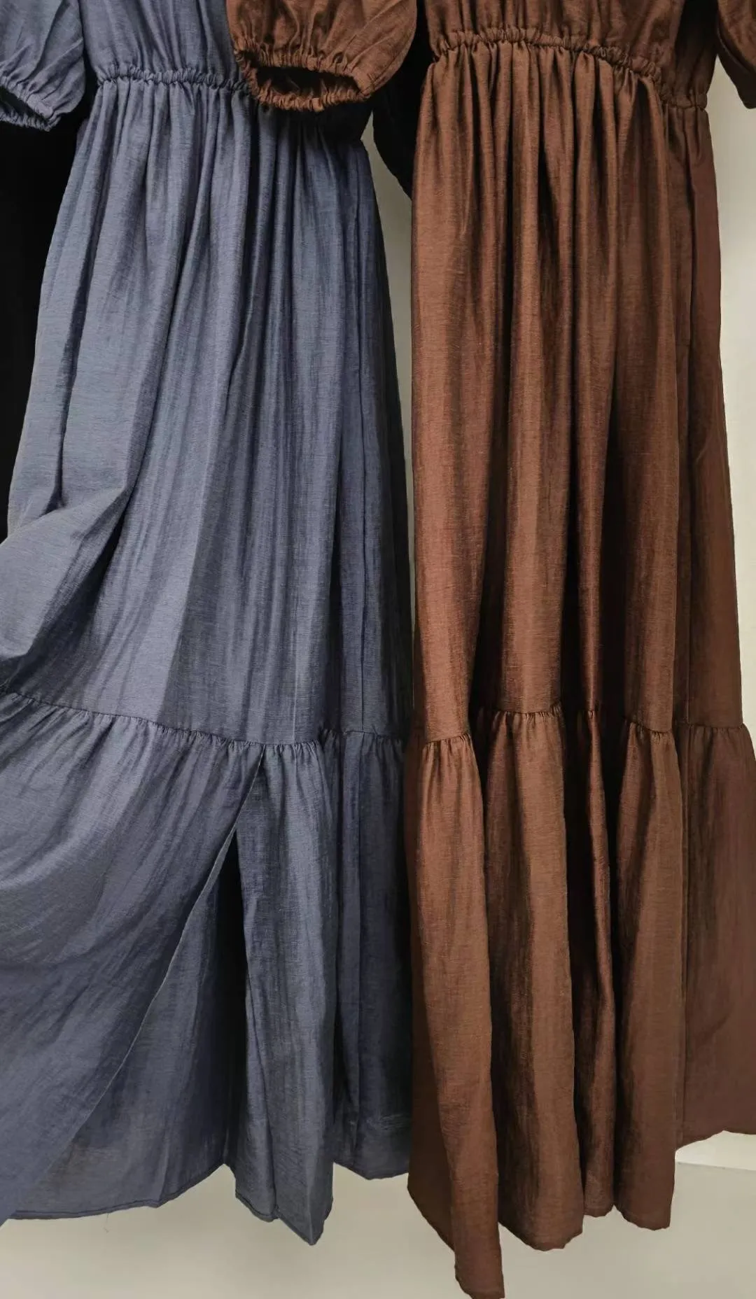 早秋的浪漫長洋裝 可以氣質優雅也可以配短靴和皮夾克也是又颯又美的🤎🥺 柔軟又帶一點挺度的面料袖型和裙擺傘狀線條都非常漂亮~ 腰部以下都有內裡,兩側隱藏口袋左側下擺有開衩 胸前沒有暗釦但是交叉領的包覆性很不錯~ 腰部有鬆緊 11%亞麻+64%嫘瑩+25%尼龍