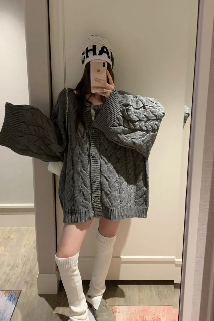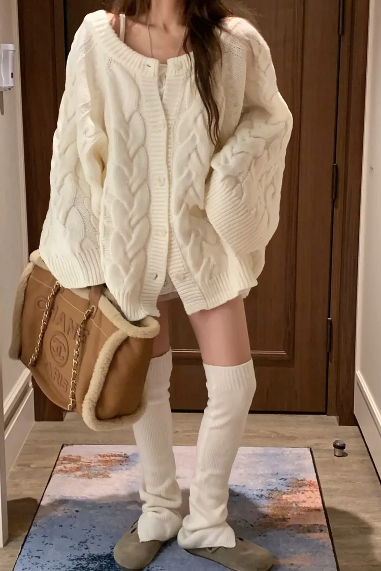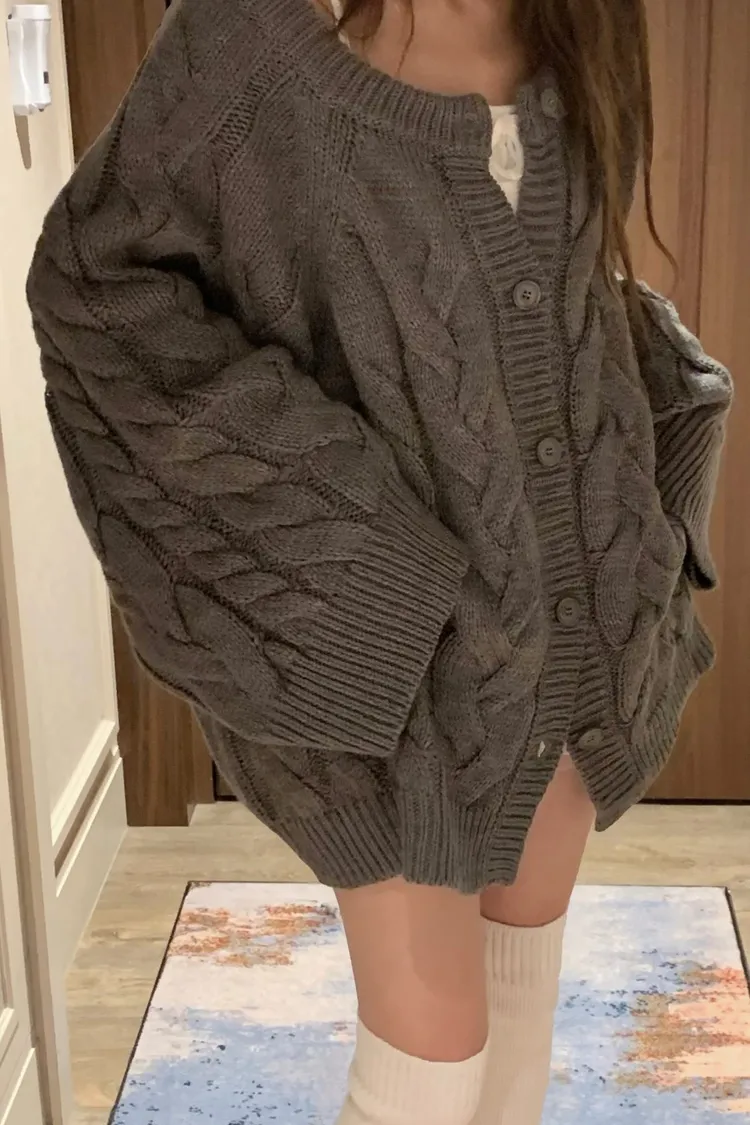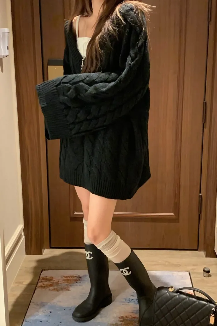 正韓 小心機寬袖擺麻花針織外套(兩穿造型)