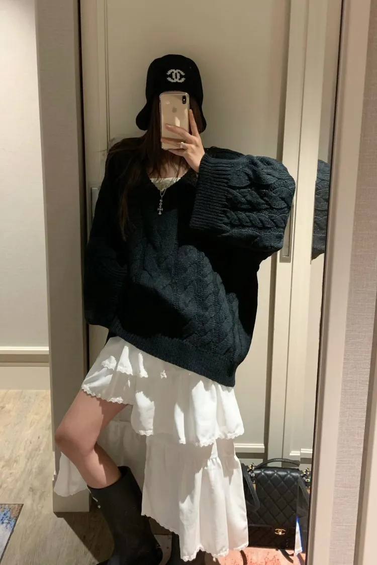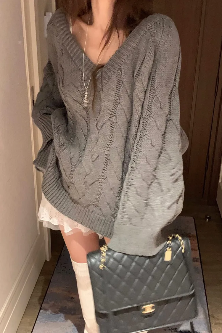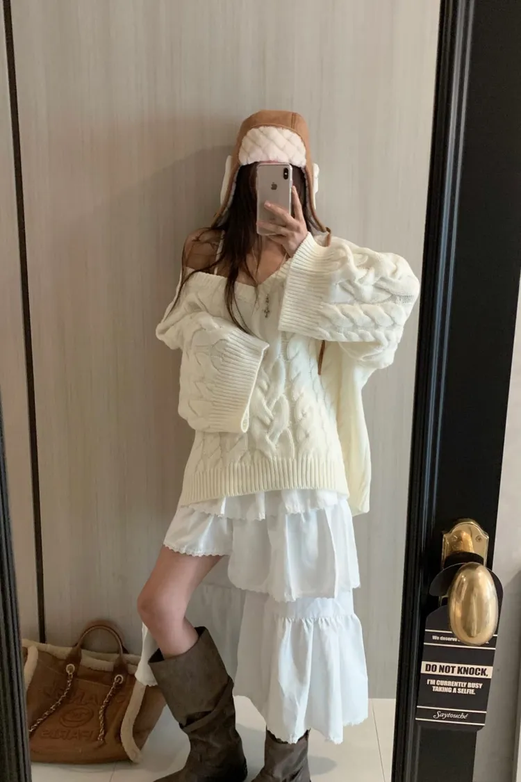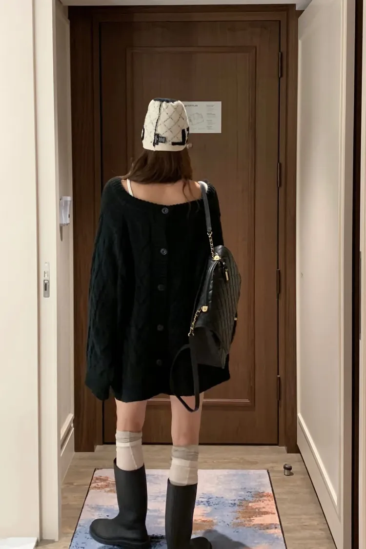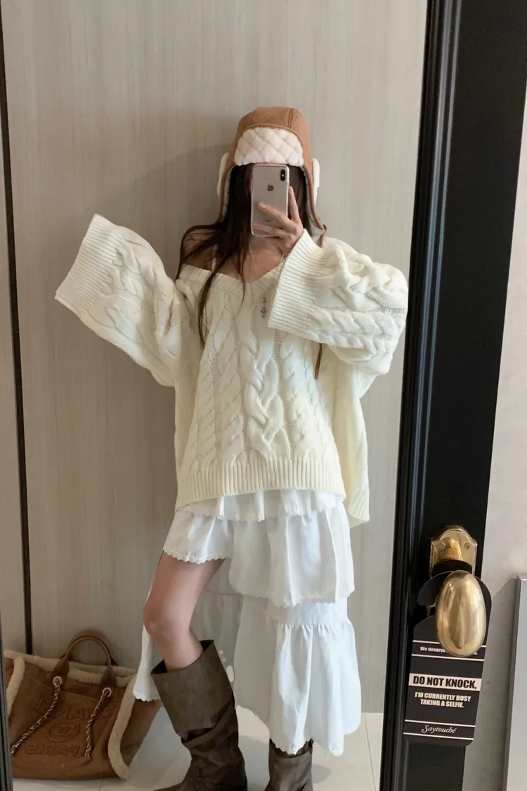 正韓 小心機寬袖擺麻花針織外套(兩穿造型)
