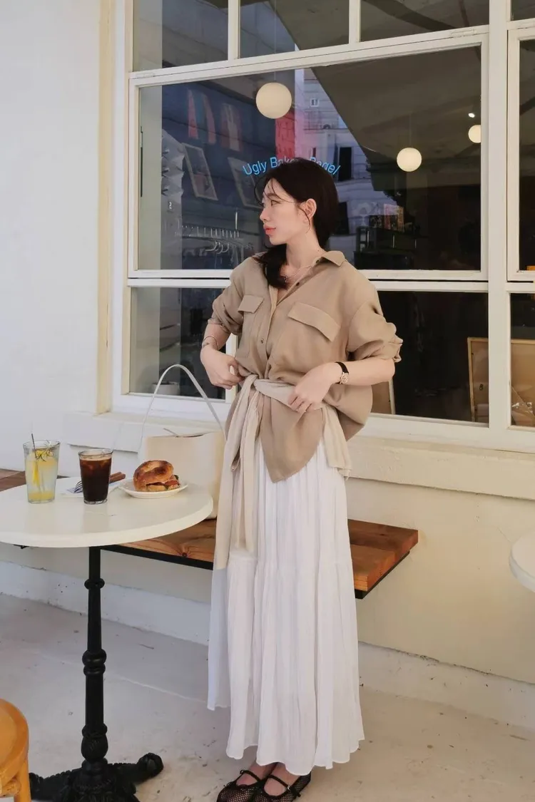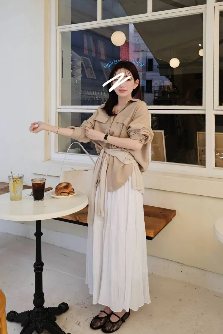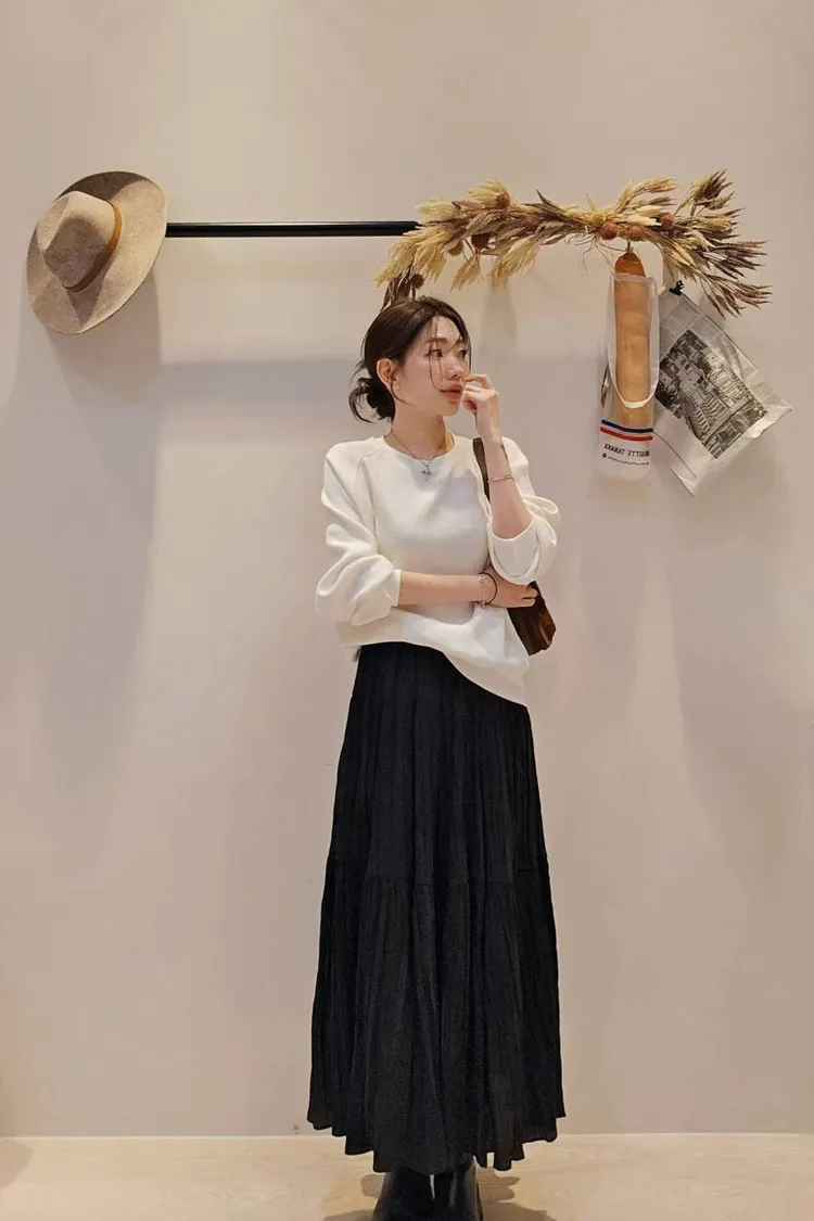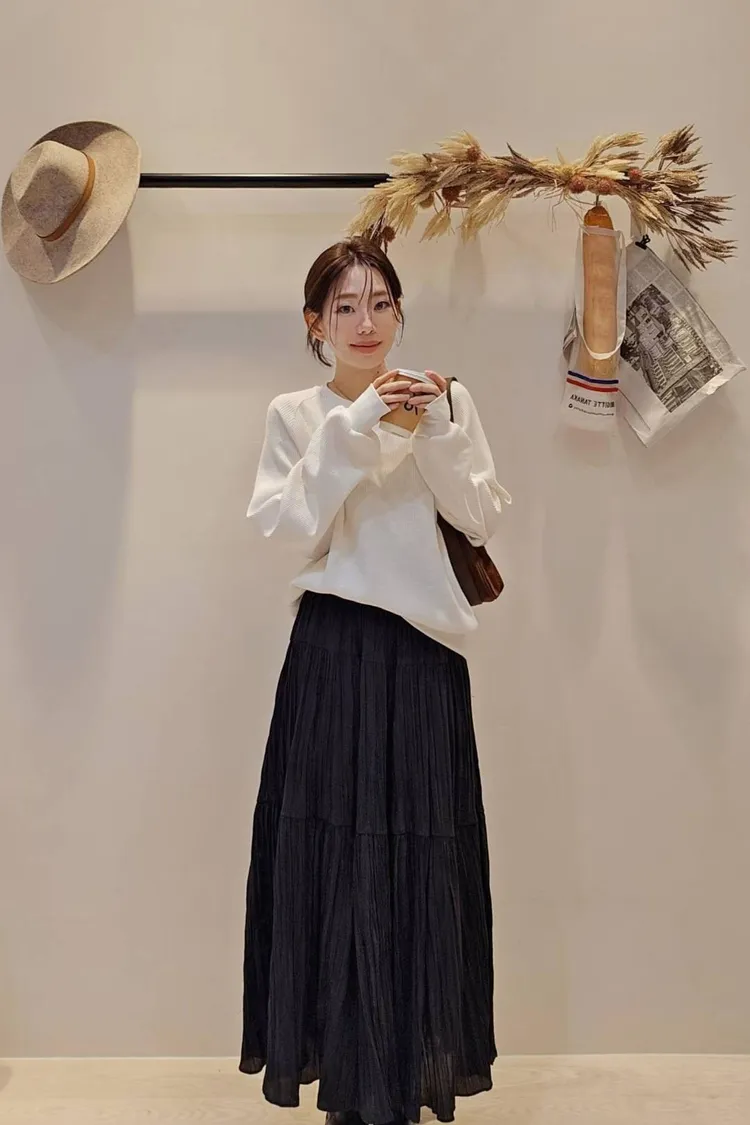 秋冬想當仙女就穿這款裙子配寬鬆毛衣~直接美死人 🤭🥰 可以微正式穿搭也很適合搭配鬆弛感的針織優雅氣質小女人🍂🍂 不規則皺皺面料 帶有微珠光走動時候的光澤感很美~布料輕盈飄逸 三色都有內裡 沒有口袋 腰部有鬆緊 100%聚酯 ONNI搭配🩰鬆餅格休閒大學衛衣