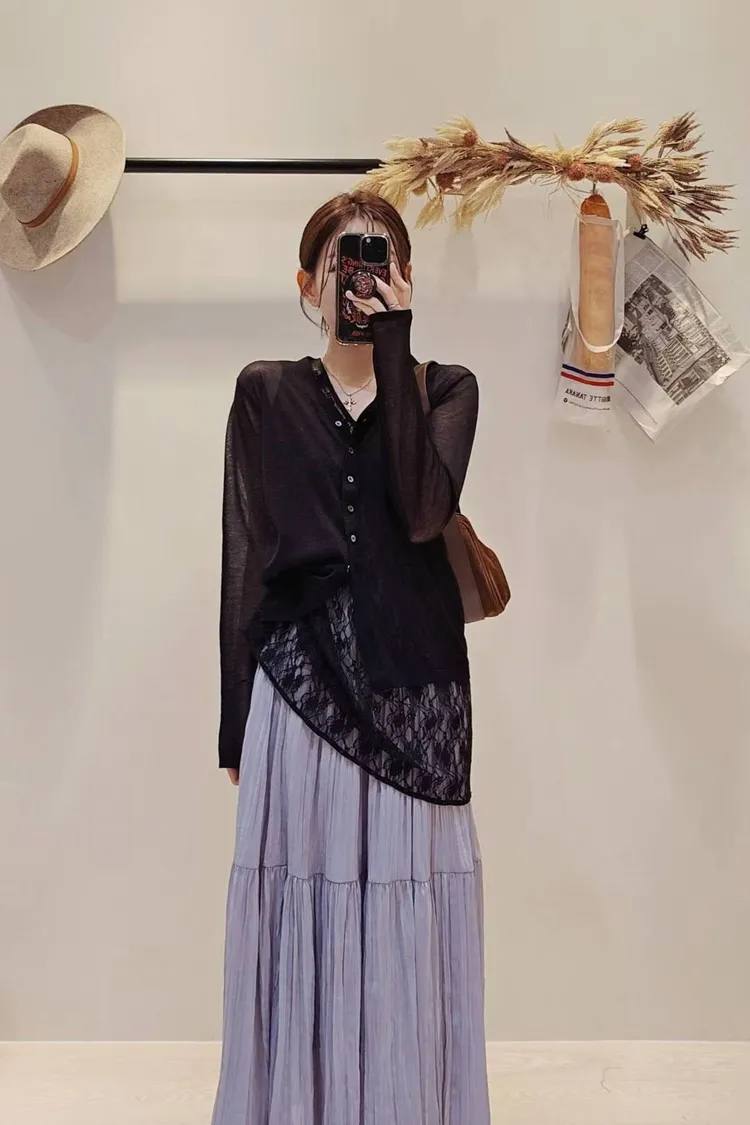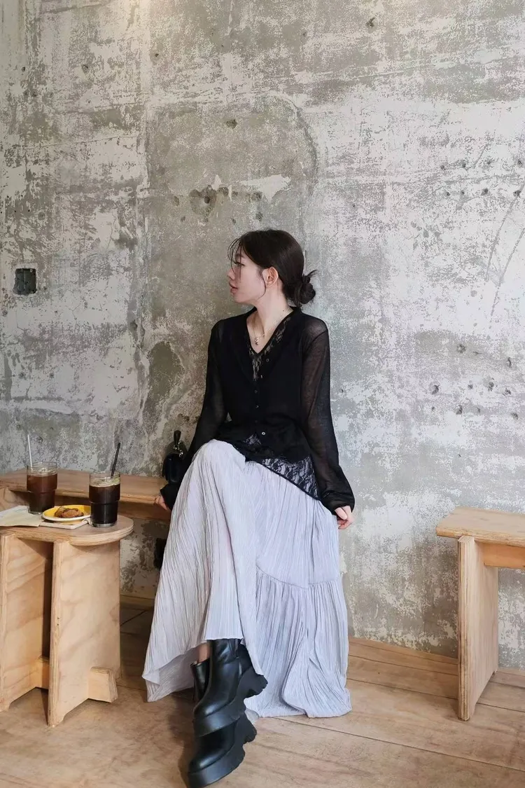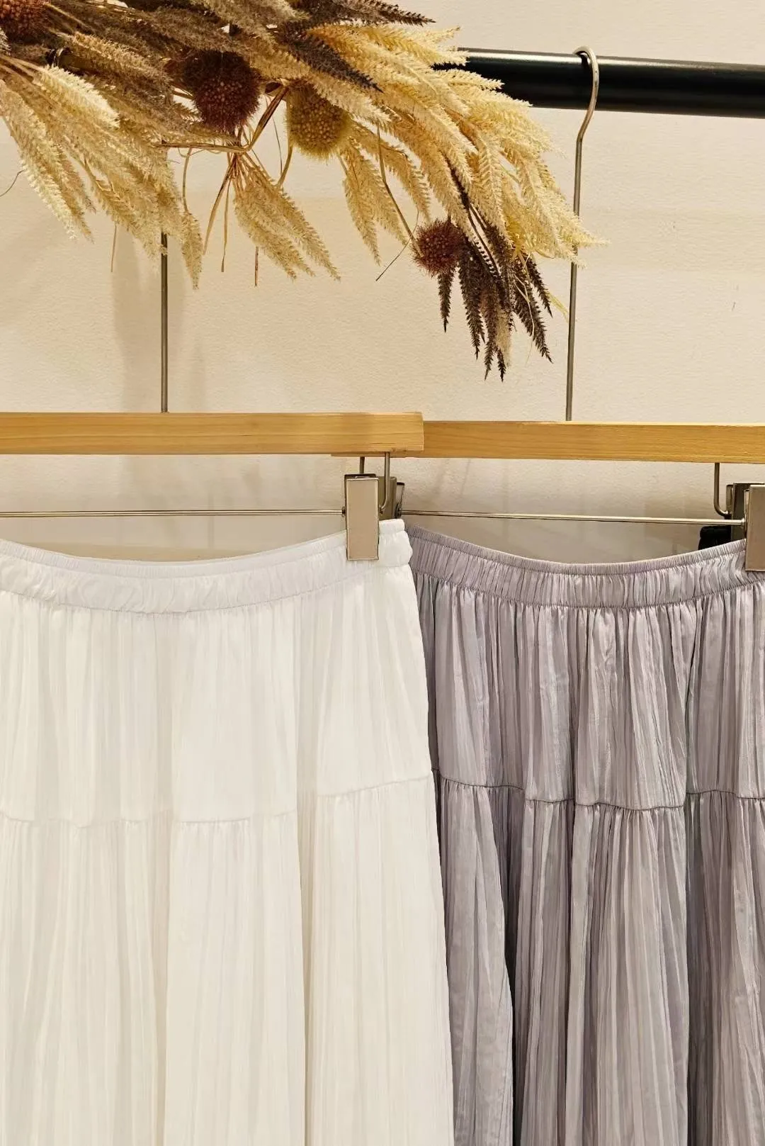 秋冬想當仙女就穿這款裙子配寬鬆毛衣~直接美死人 🤭🥰 可以微正式穿搭也很適合搭配鬆弛感的針織優雅氣質小女人🍂🍂 不規則皺皺面料 帶有微珠光走動時候的光澤感很美~布料輕盈飄逸 三色都有內裡 沒有口袋 腰部有鬆緊 100%聚酯 ONNI搭配🩰鬆餅格休閒大學衛衣