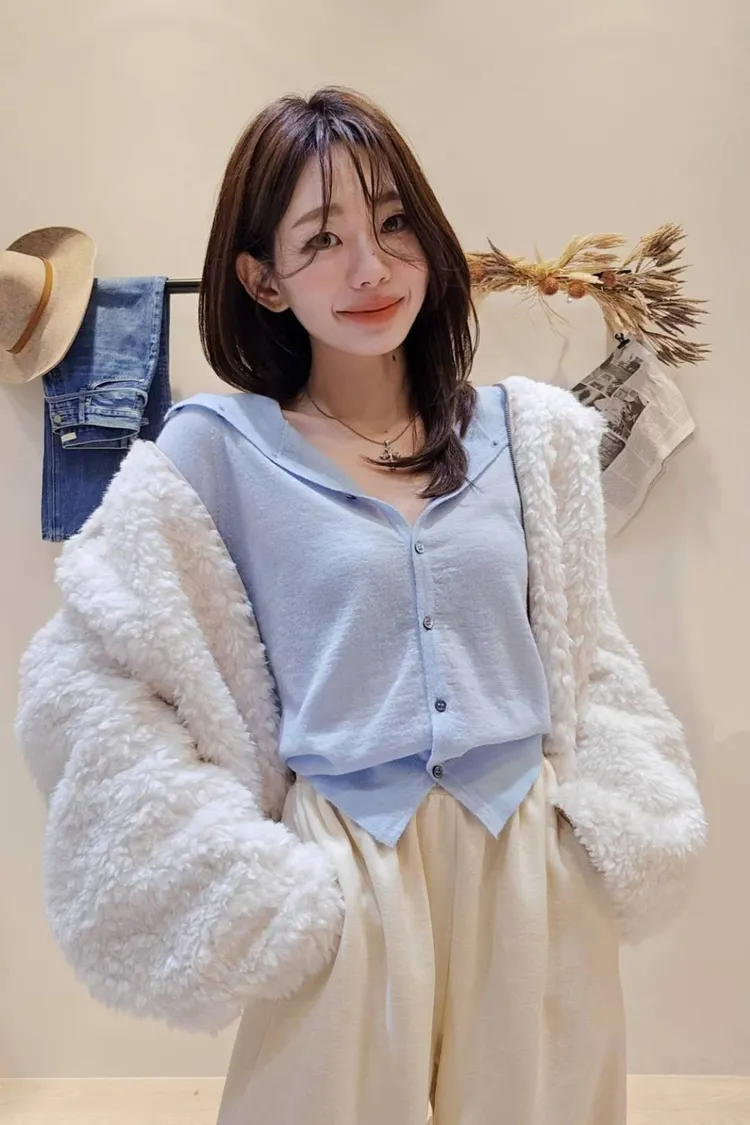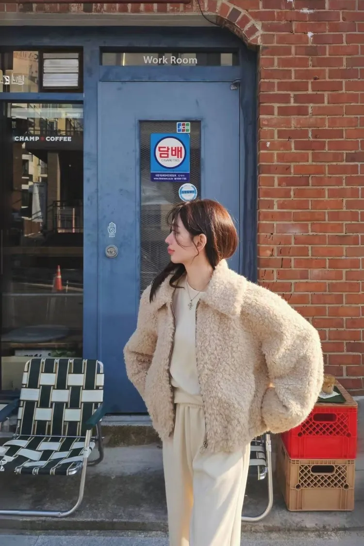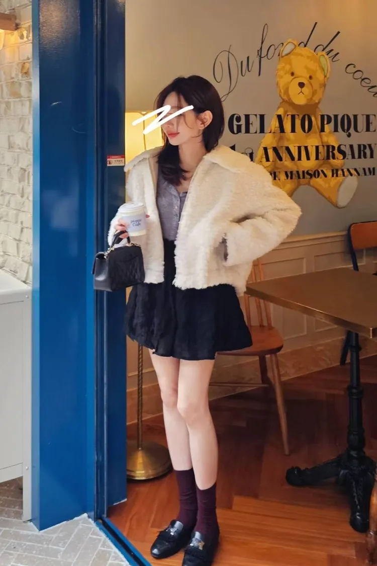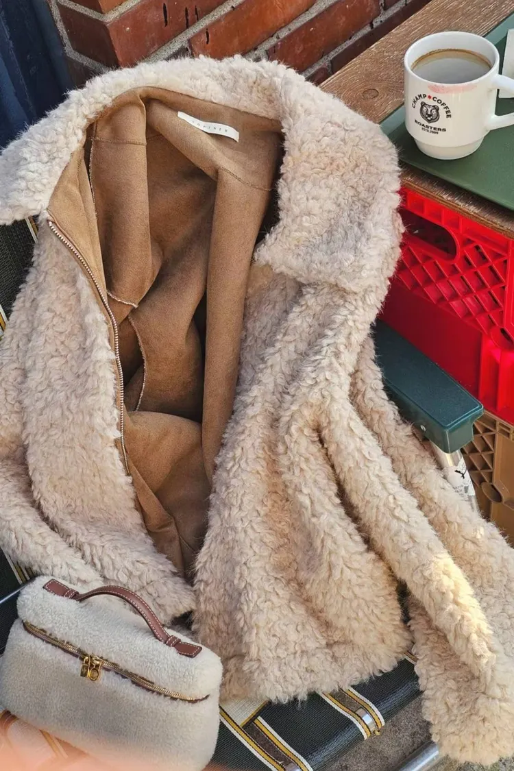 氣質蕾絲洋裝到休閒牛仔褲都可以搭配的一款毛毛大衣🤌👍