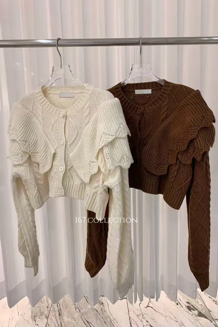 正韓 設計款簍空羊毛針織外套