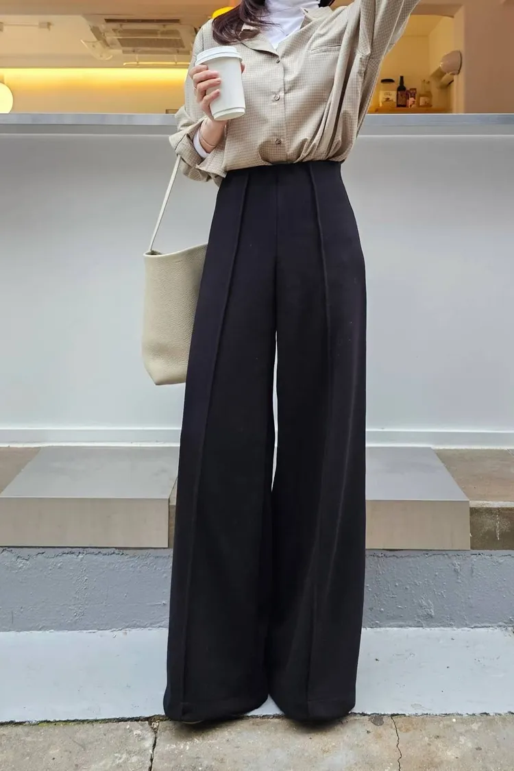 長腿+舒適+鬆弛感=完美🤌🤌立體中線裝飾,微寬褲管版型,褲腳靴型無腰頭設計,胸部以下都是腿~😍😍 高質感圓編針織布,中等偏厚組織細密的面料觸感高級,柔軟帶有挺度,垂感美到爆沒有內裡,腰部整圈內鬆緊 50%聚酯+20%嫘瑩+14%尼龍+10%羊毛+6%彈力
