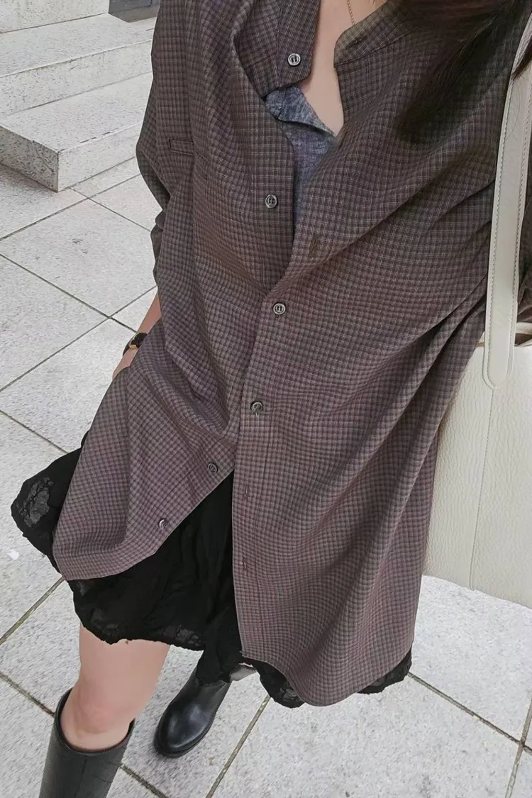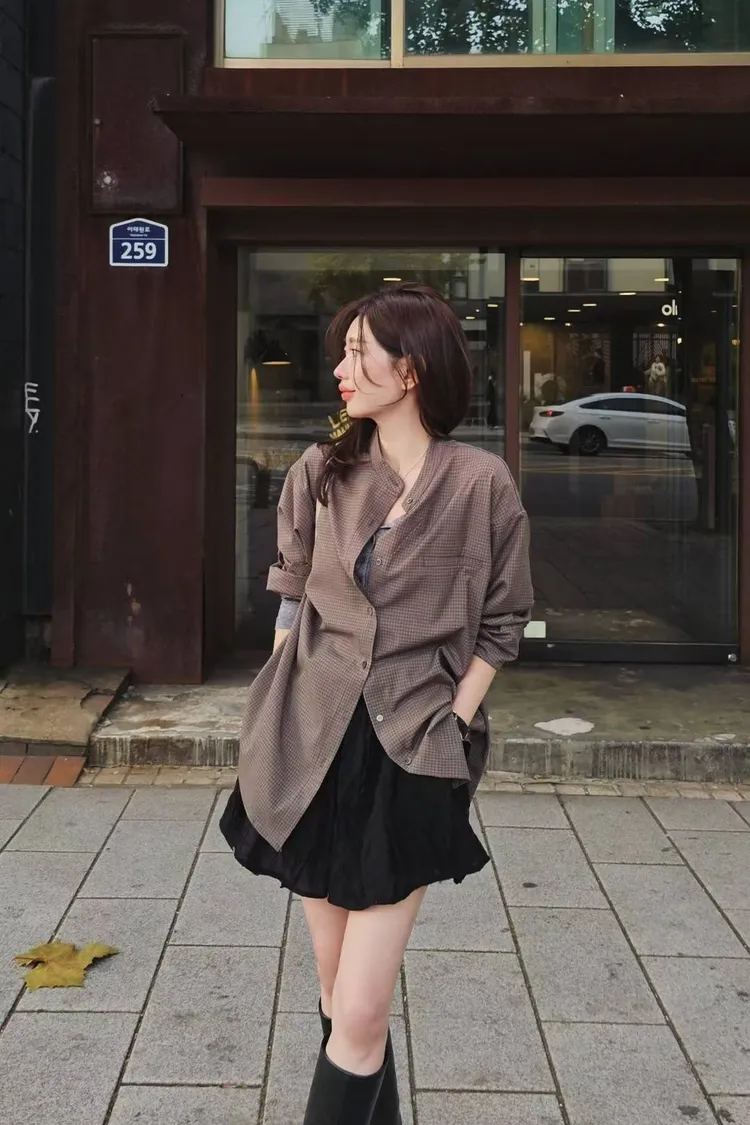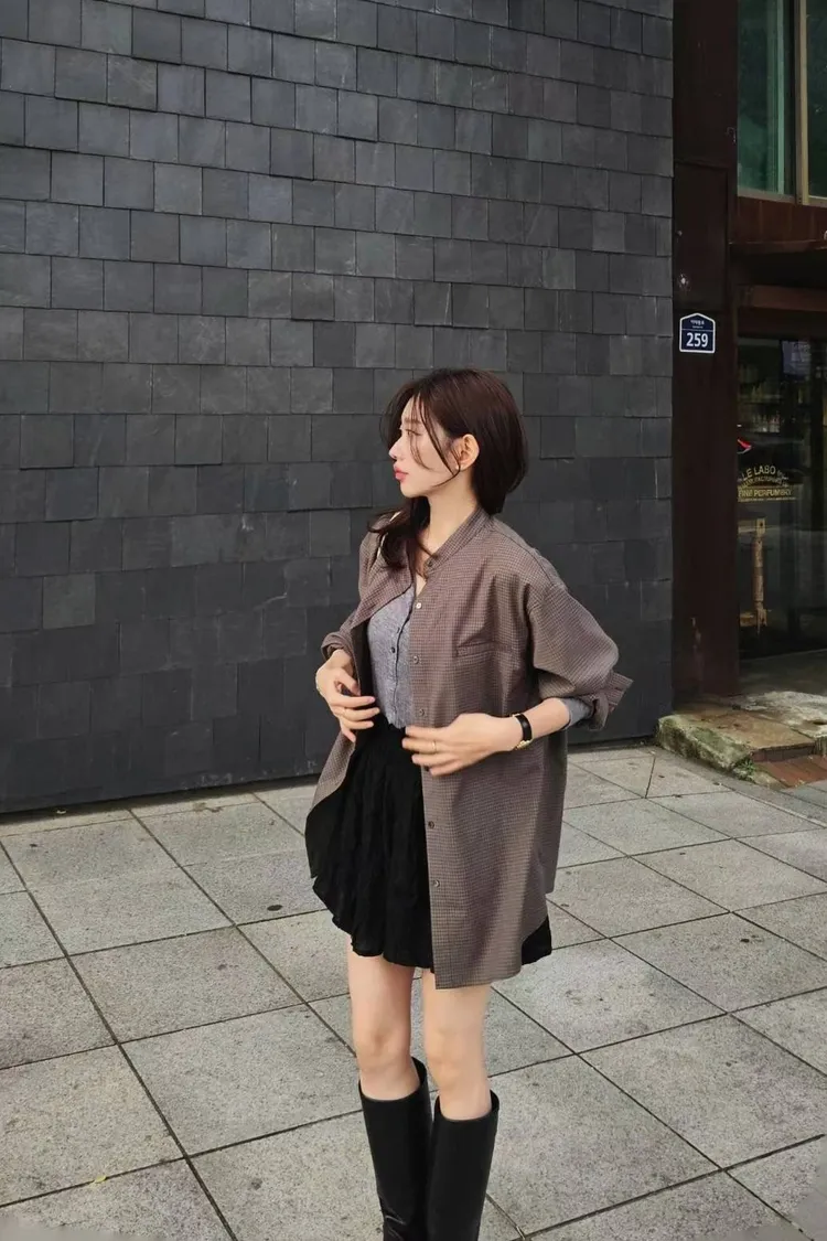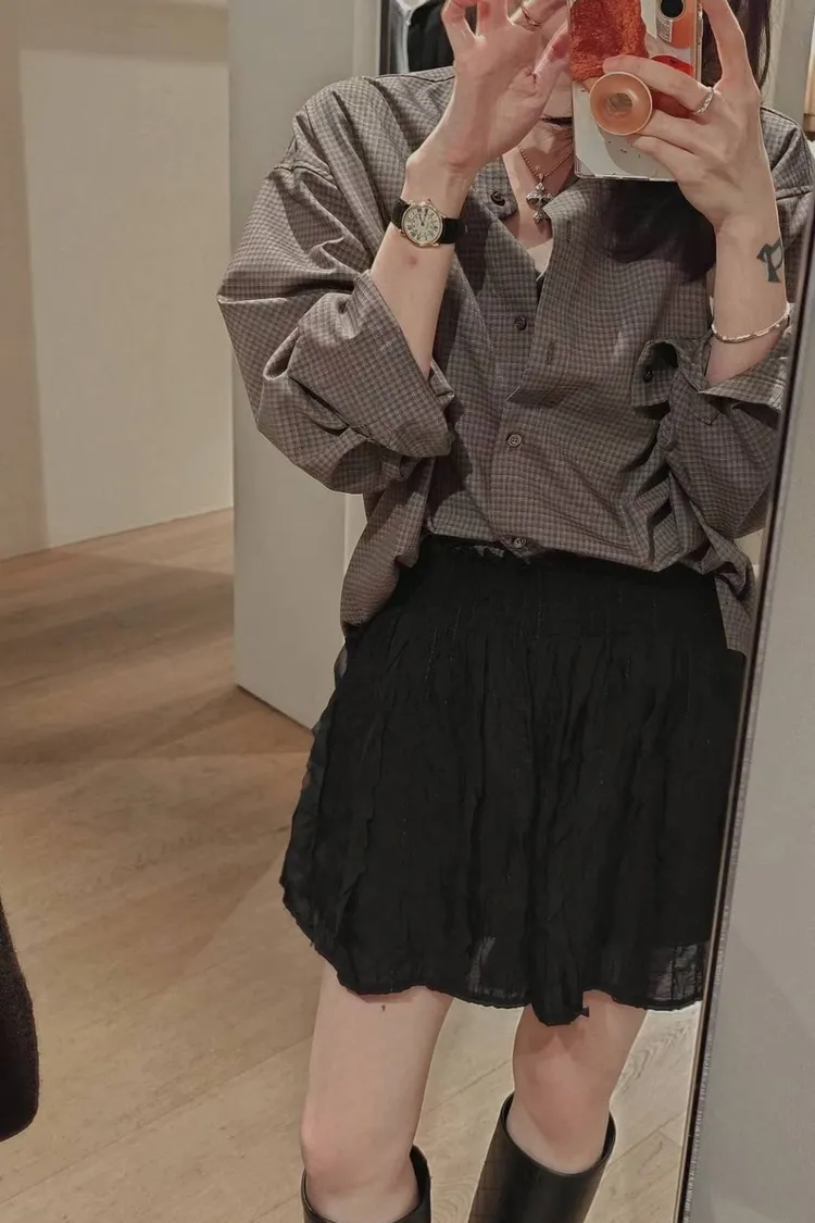 哦莫!!格子襯衫穿上韓起來毫不費力~🤭😎兩色都是韓妞最愛的基礎大地色系單穿/外罩或是套在毛衣裡面都好看格子控必須收🧸🍁☕️🍂 襯衫面料來說,算是中等有一點厚度的柔軟帶有挺度 屬於較不易皺材質 寬鬆休閒版型 75%聚酯+24%嫘瑩+1%彈力
