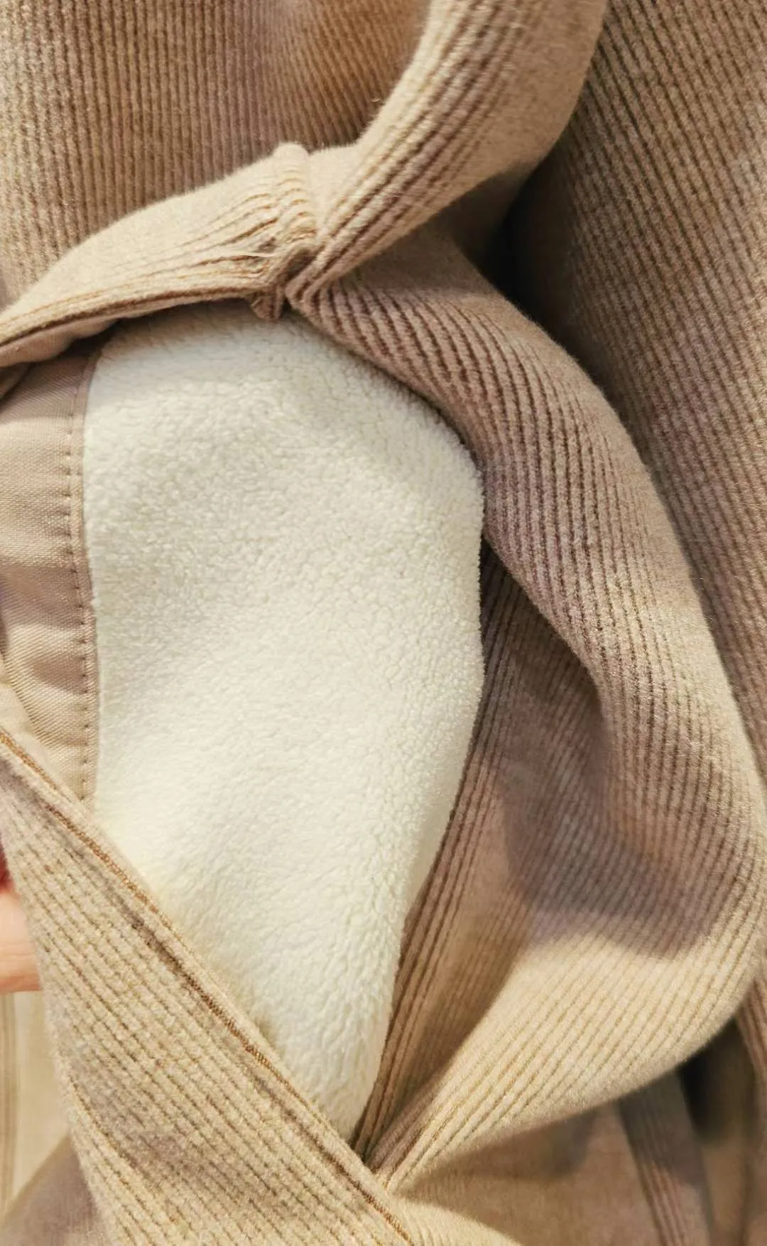 超細緻燈芯絨面料,整件內側都有做珊瑚絨加工