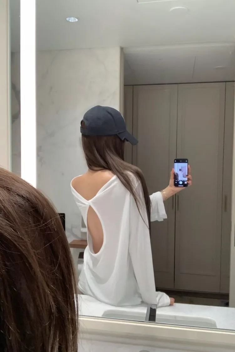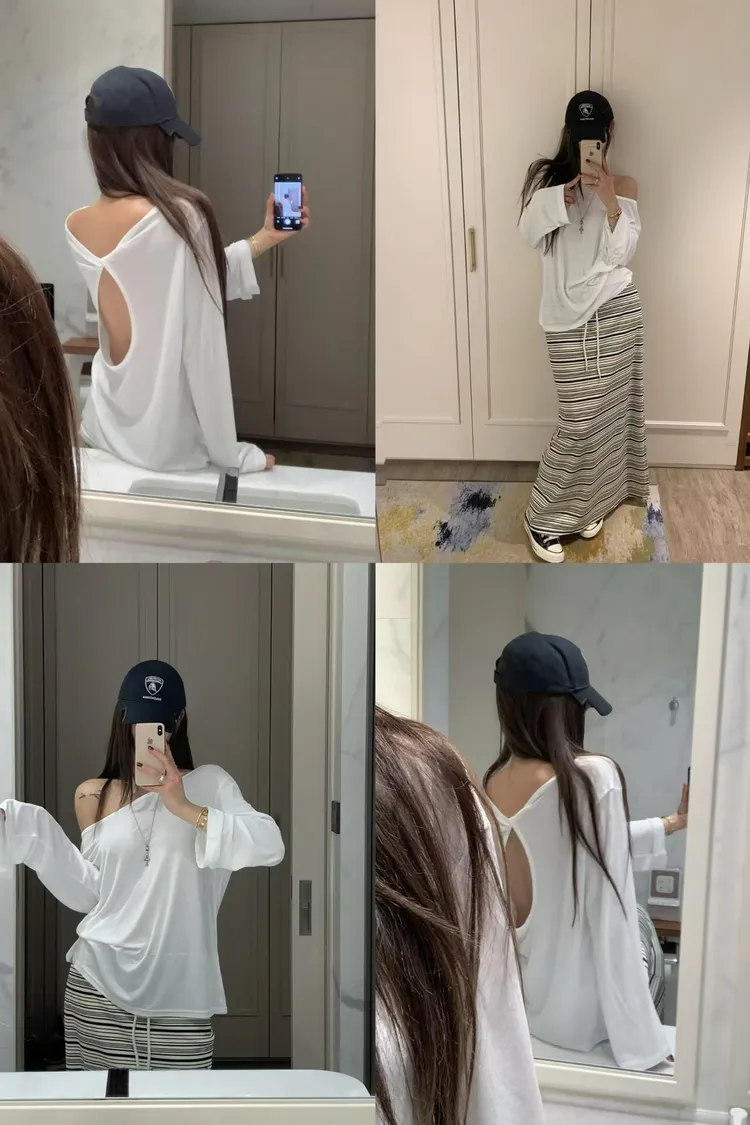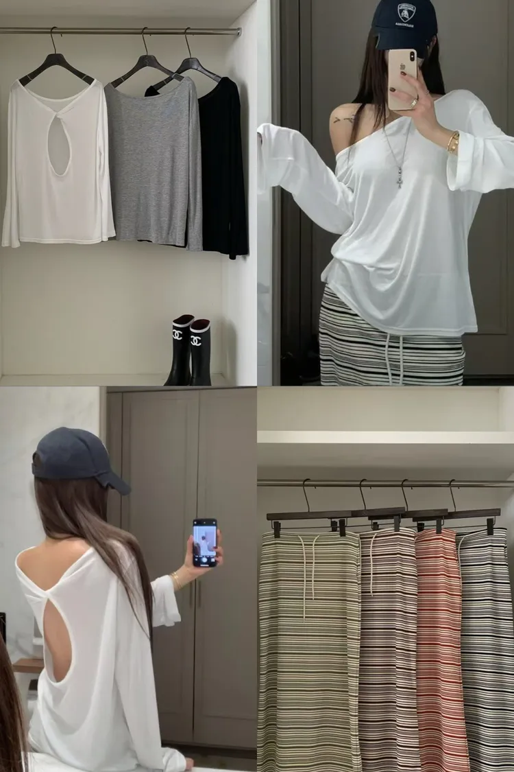 正韓 大露肩美背寬鬆上衣