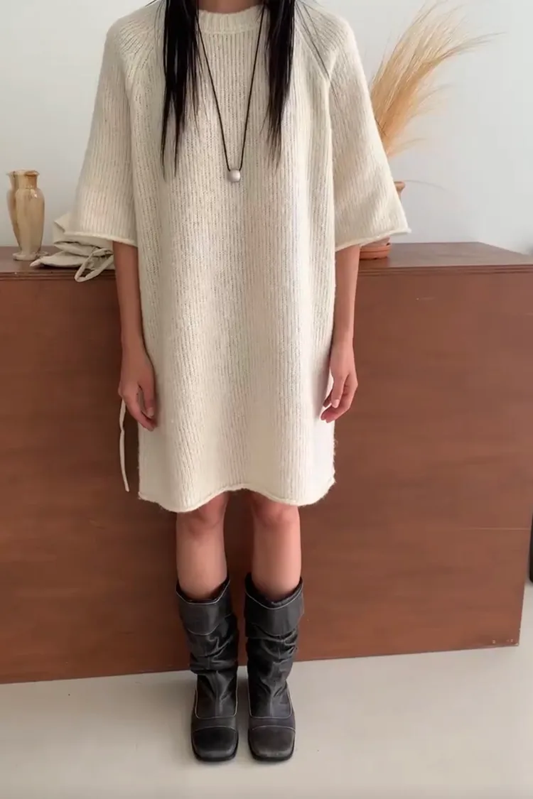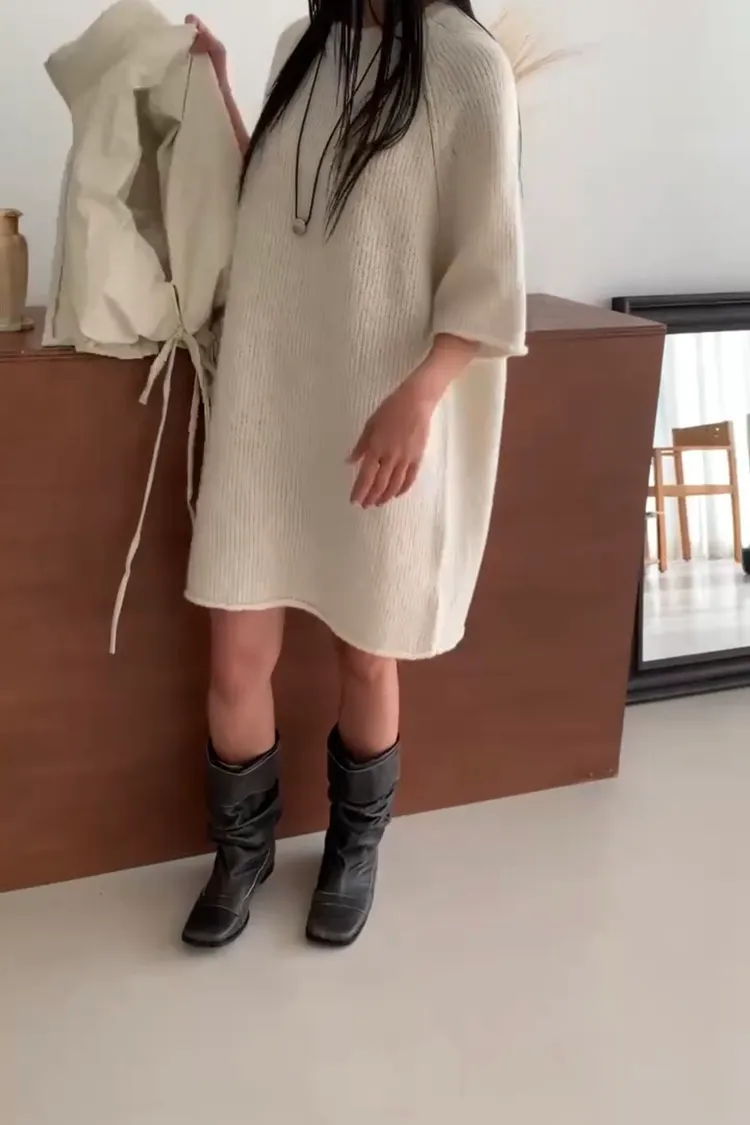 正韓 輕柔奶油針織上衣洋裝