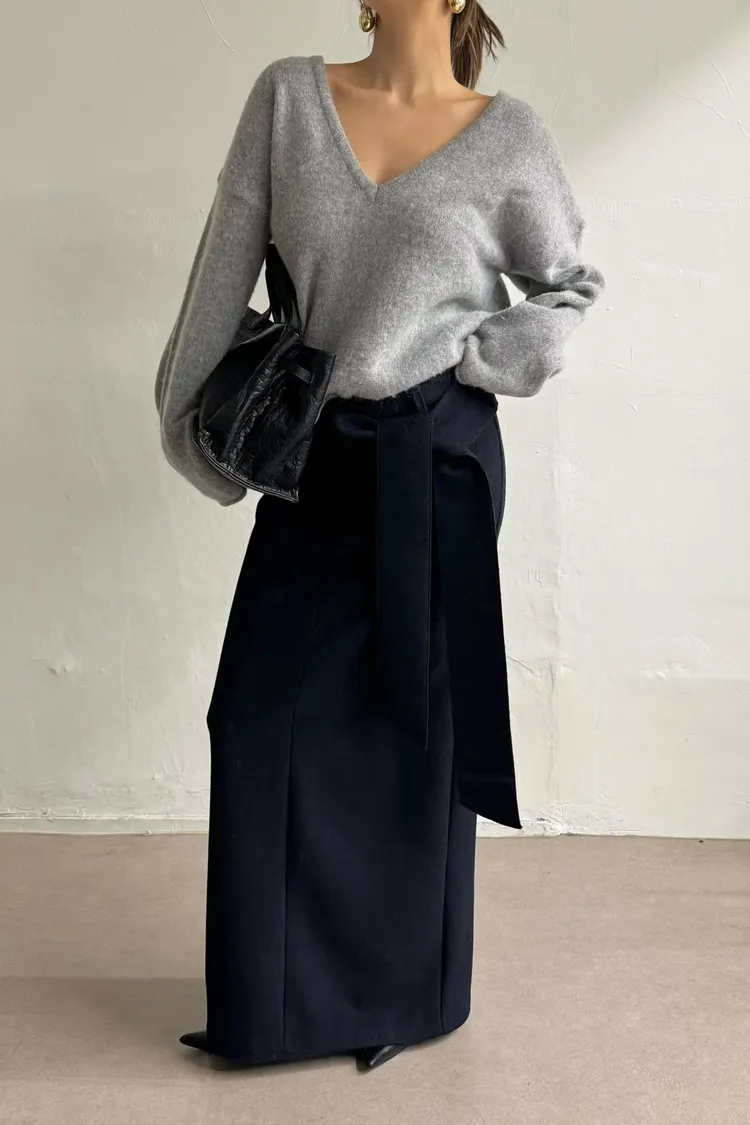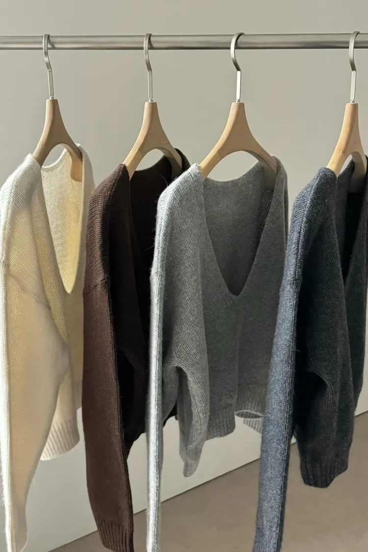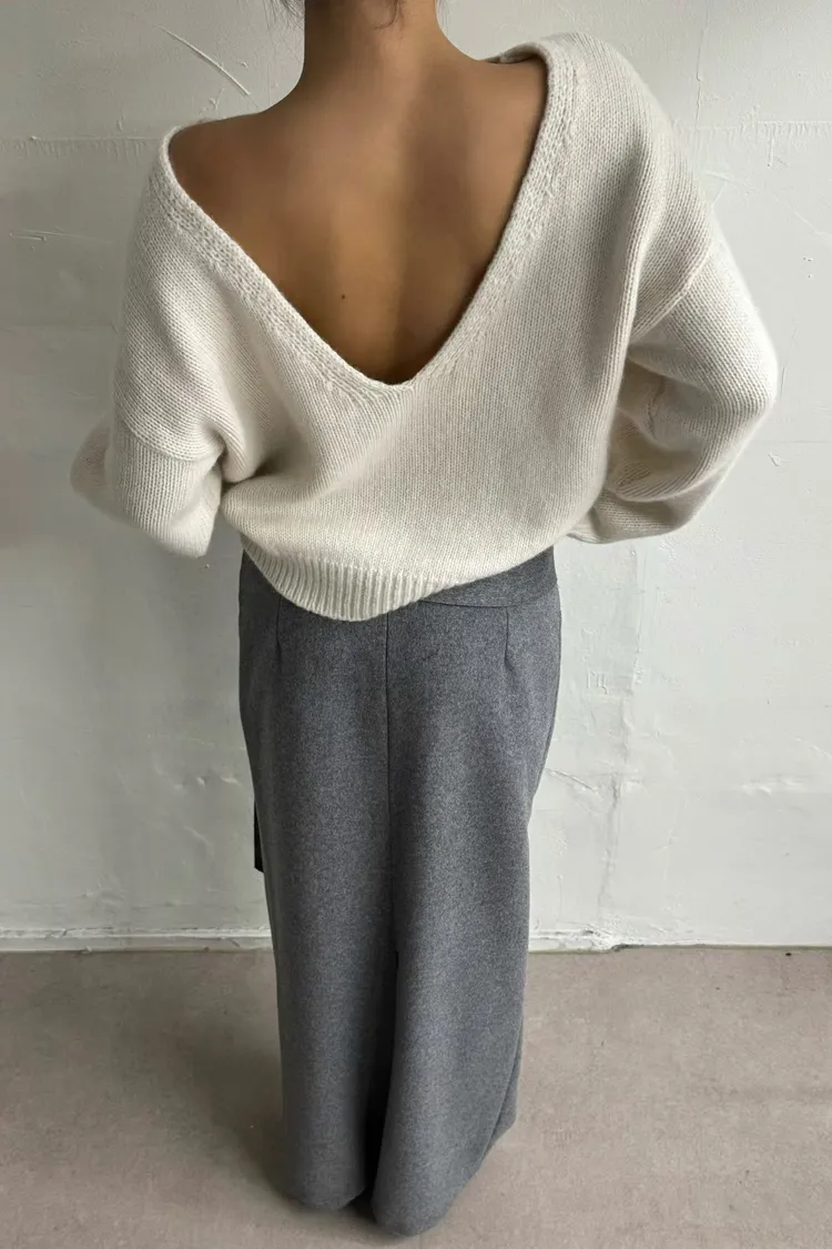 正韓 大U挖背針織羊毛兩穿上衣