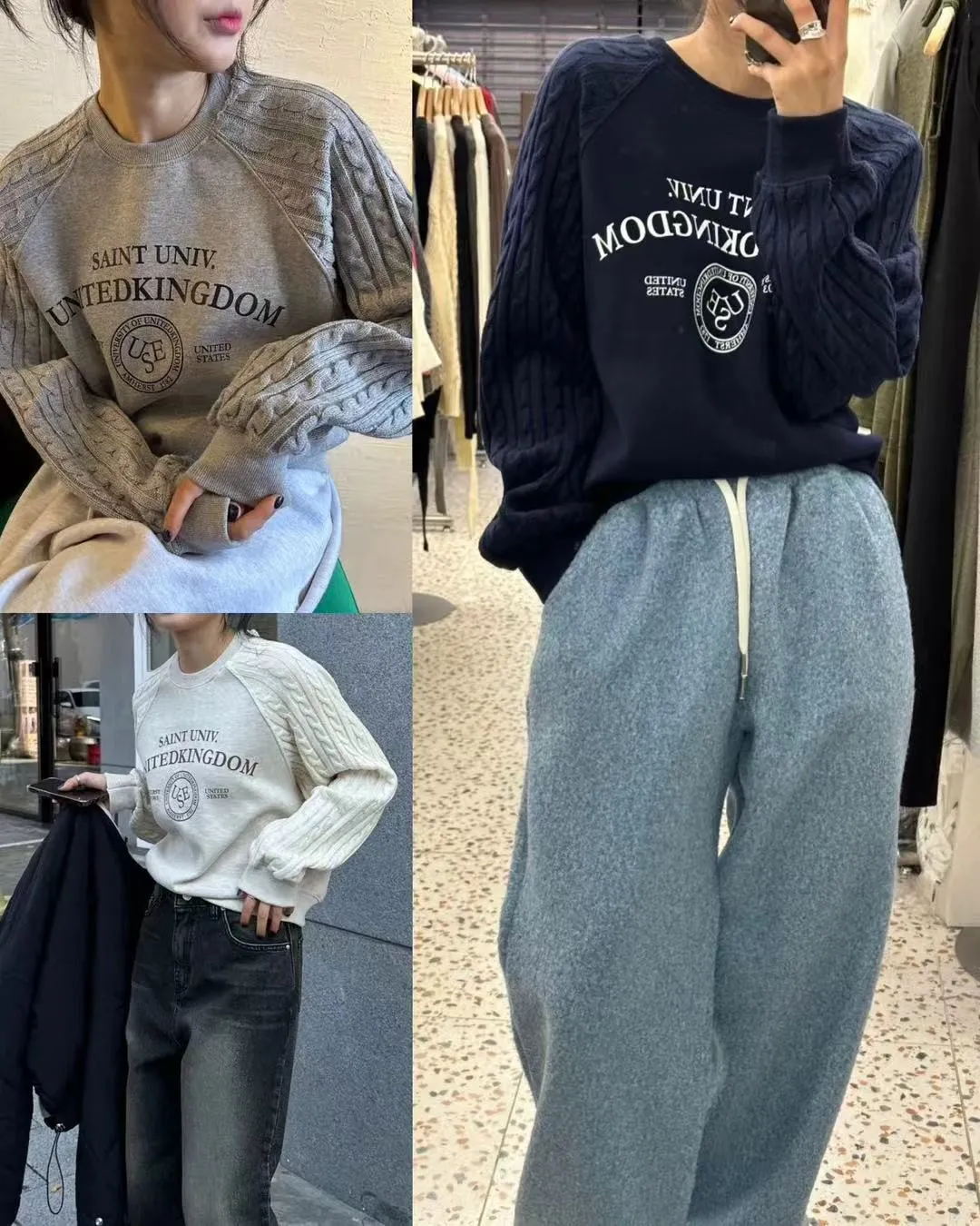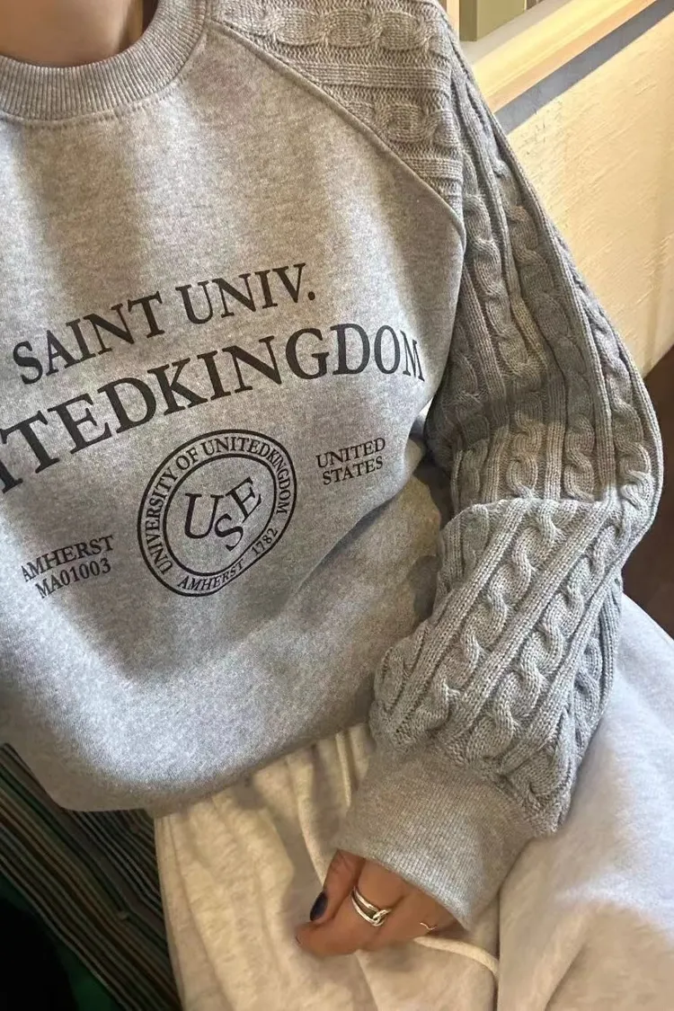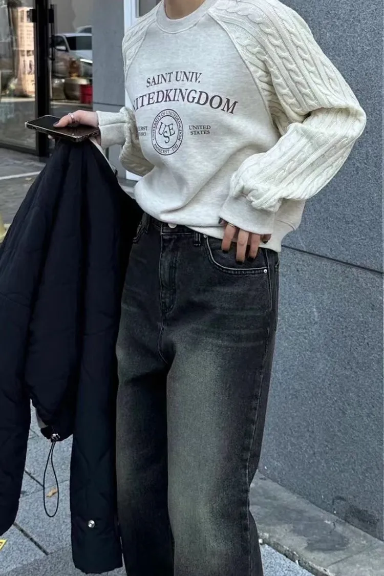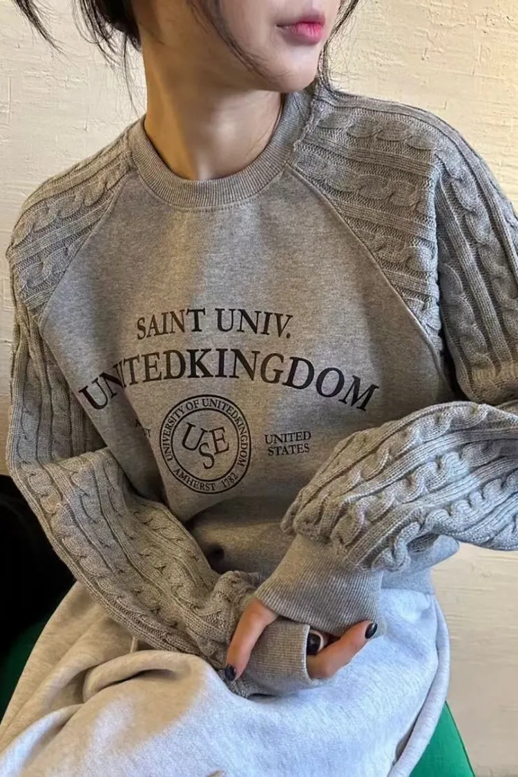 正韓 麻花拼接袖圓領上衣