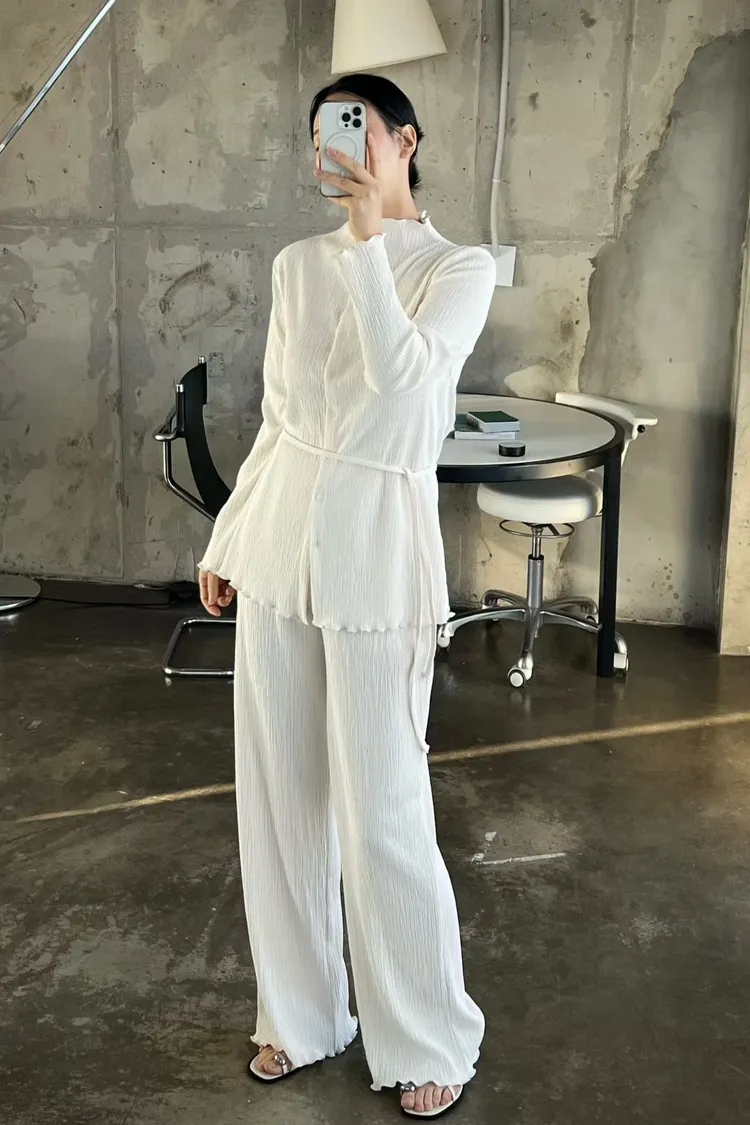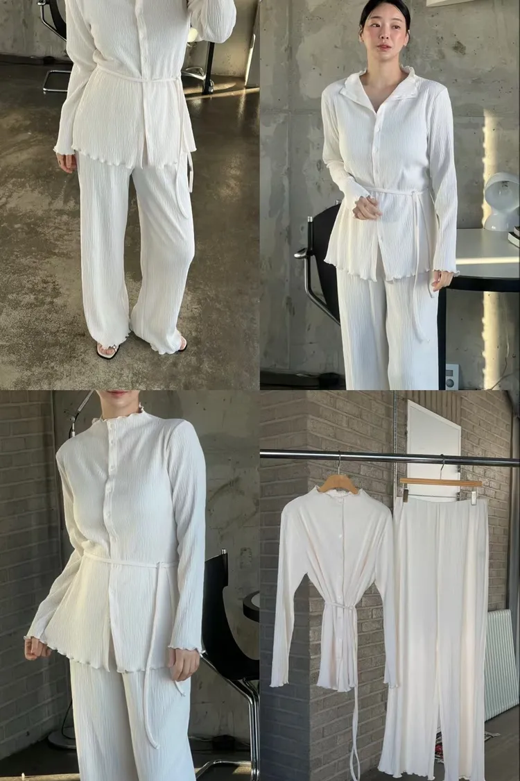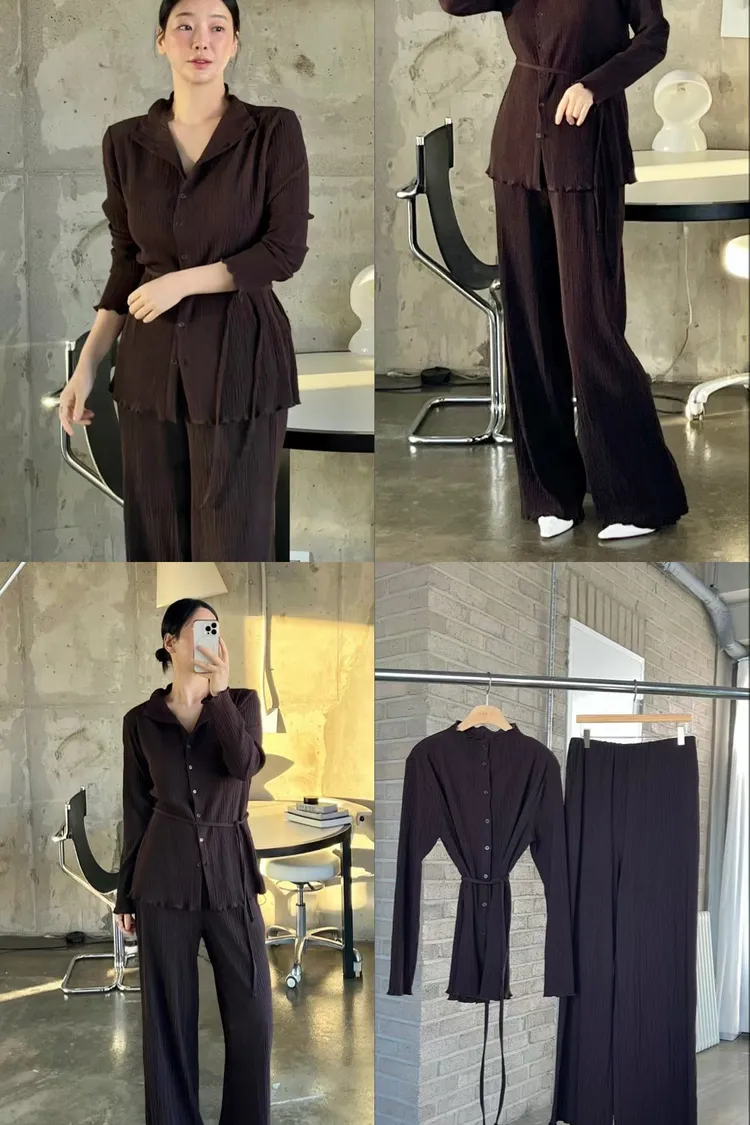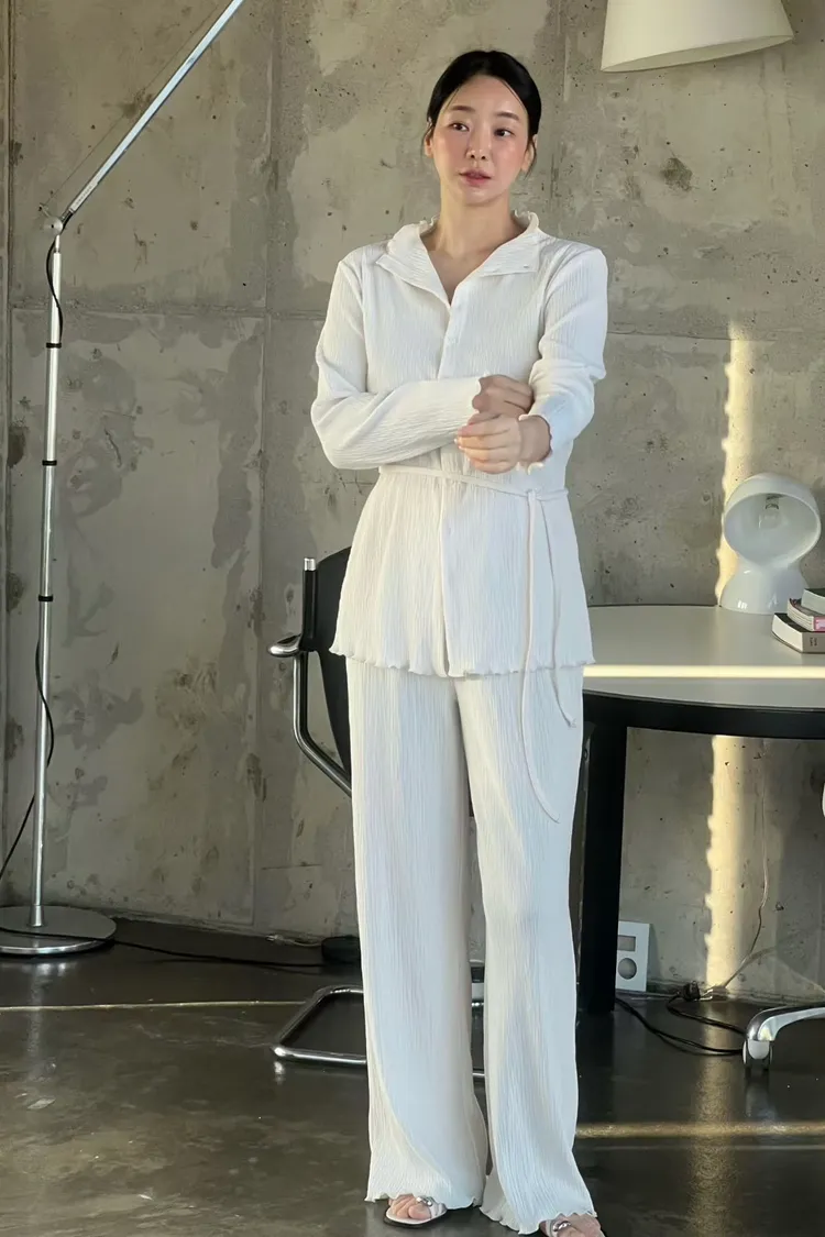 正韓 侘寂風壓褶套裝組
