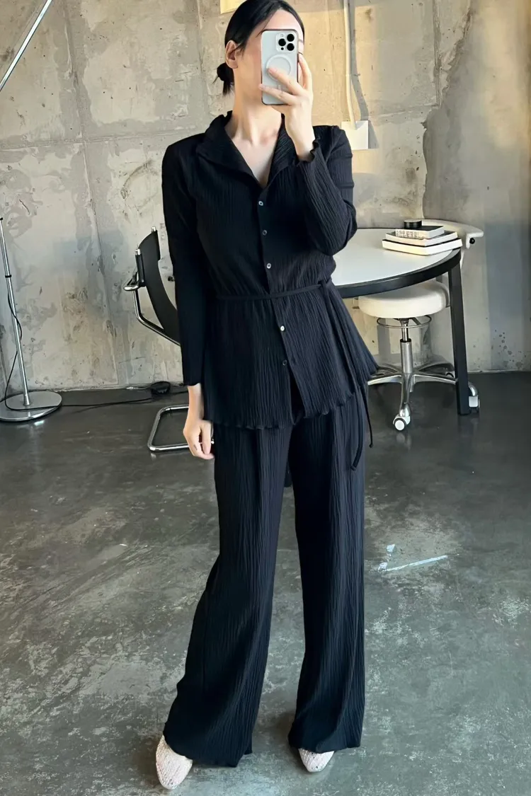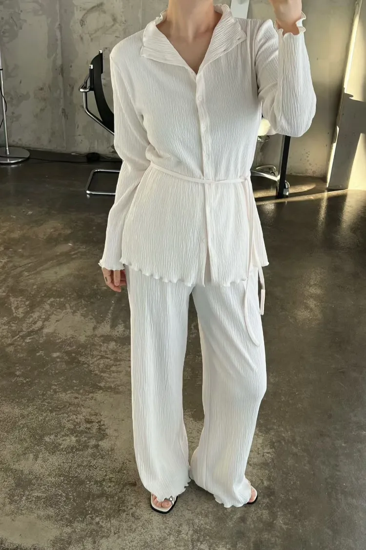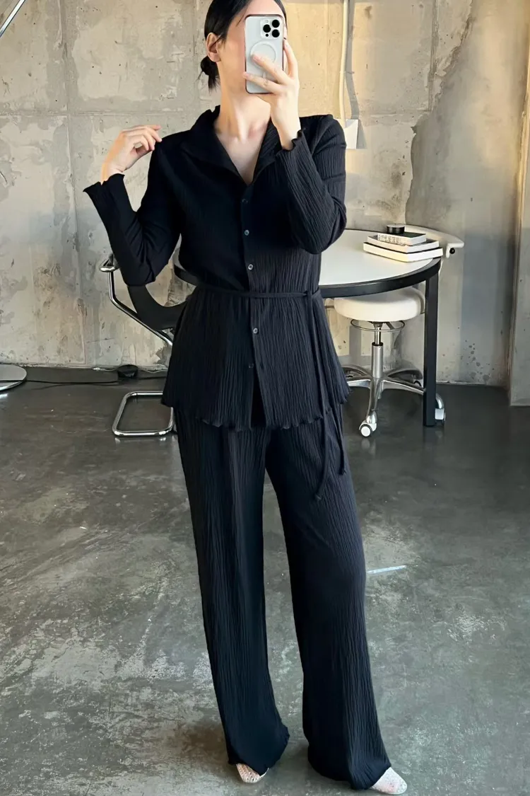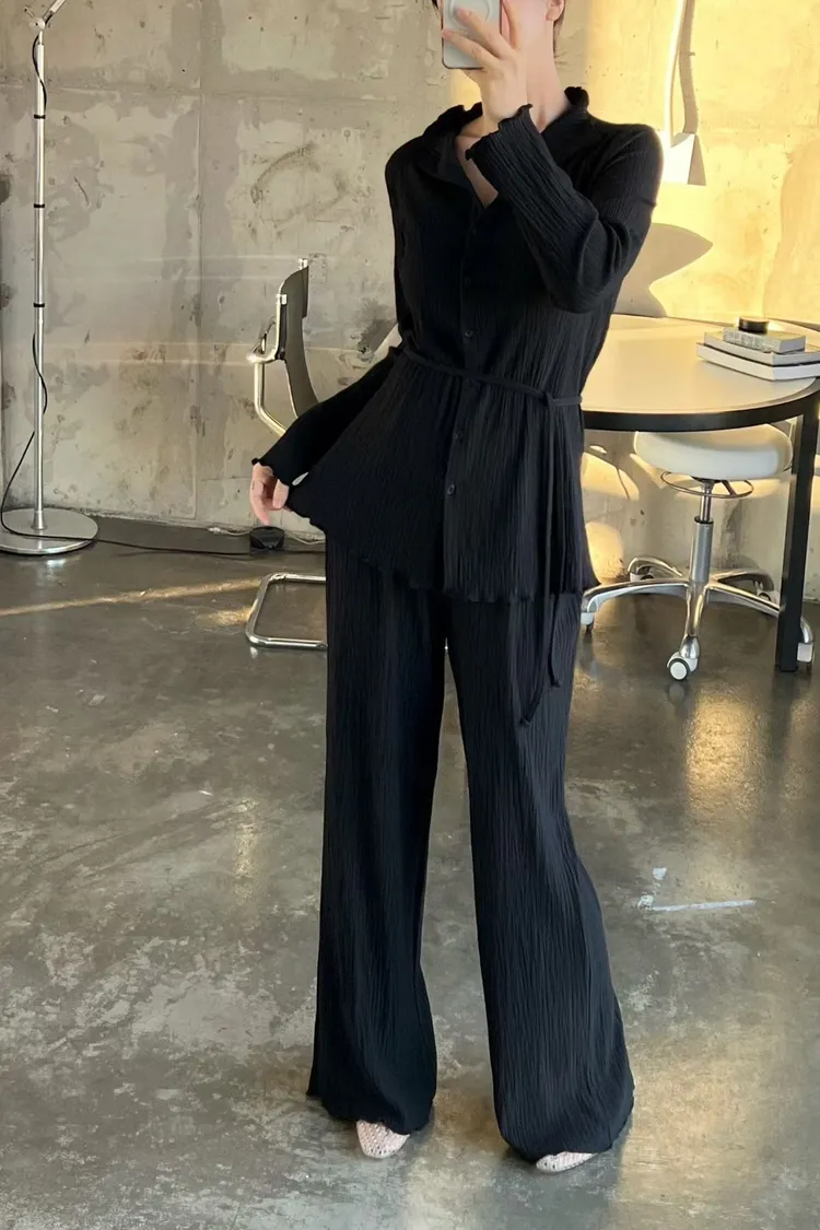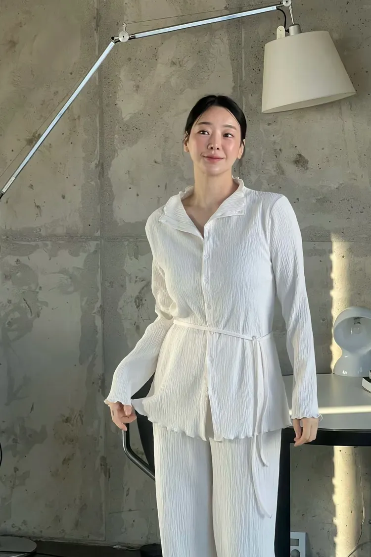 正韓 侘寂風壓褶套裝組