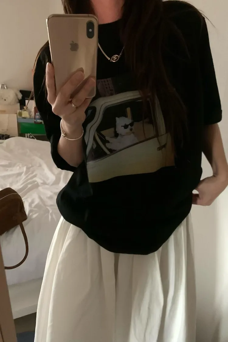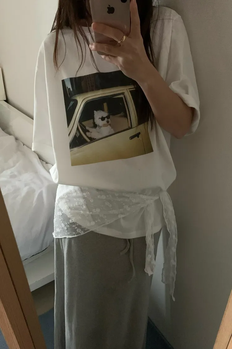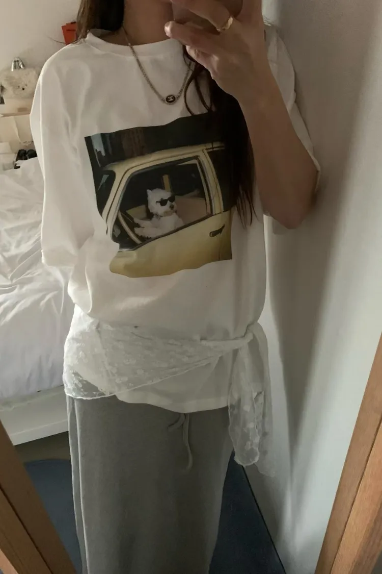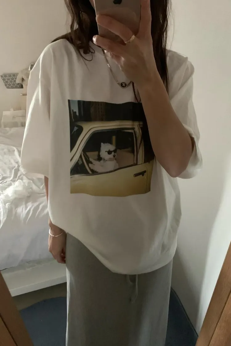 正韓 有點可愛!雪納瑞棉質上衣