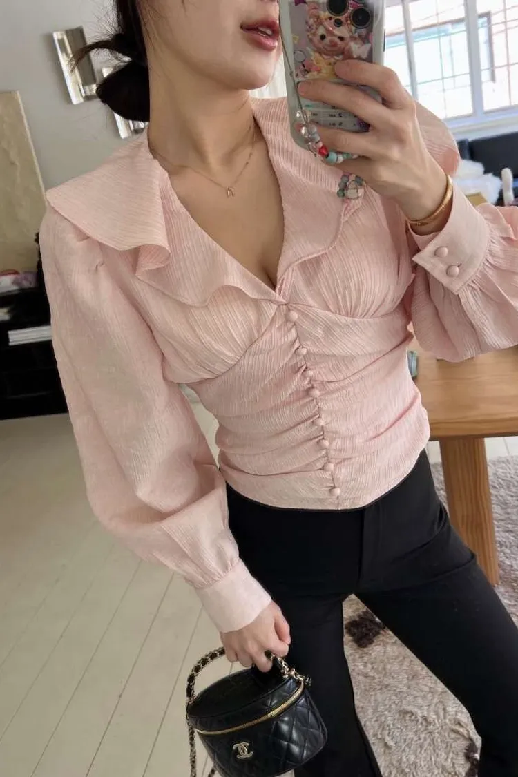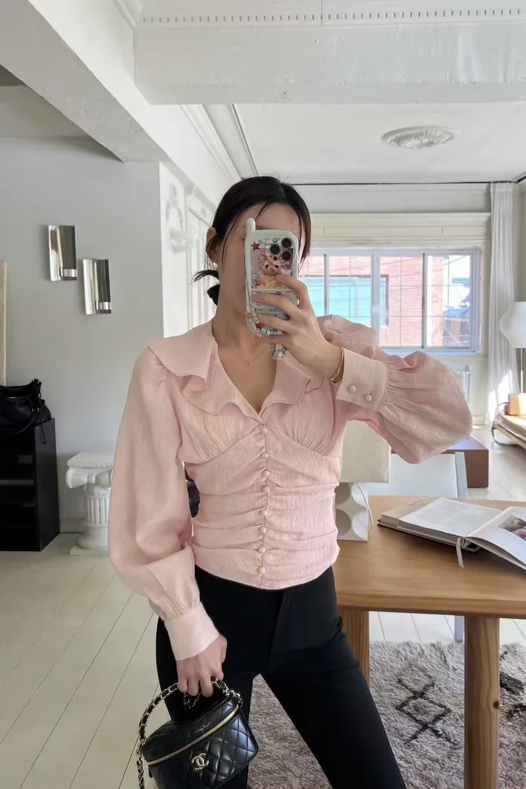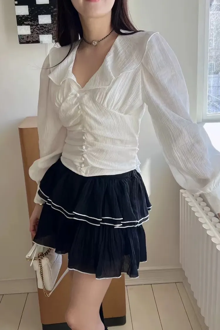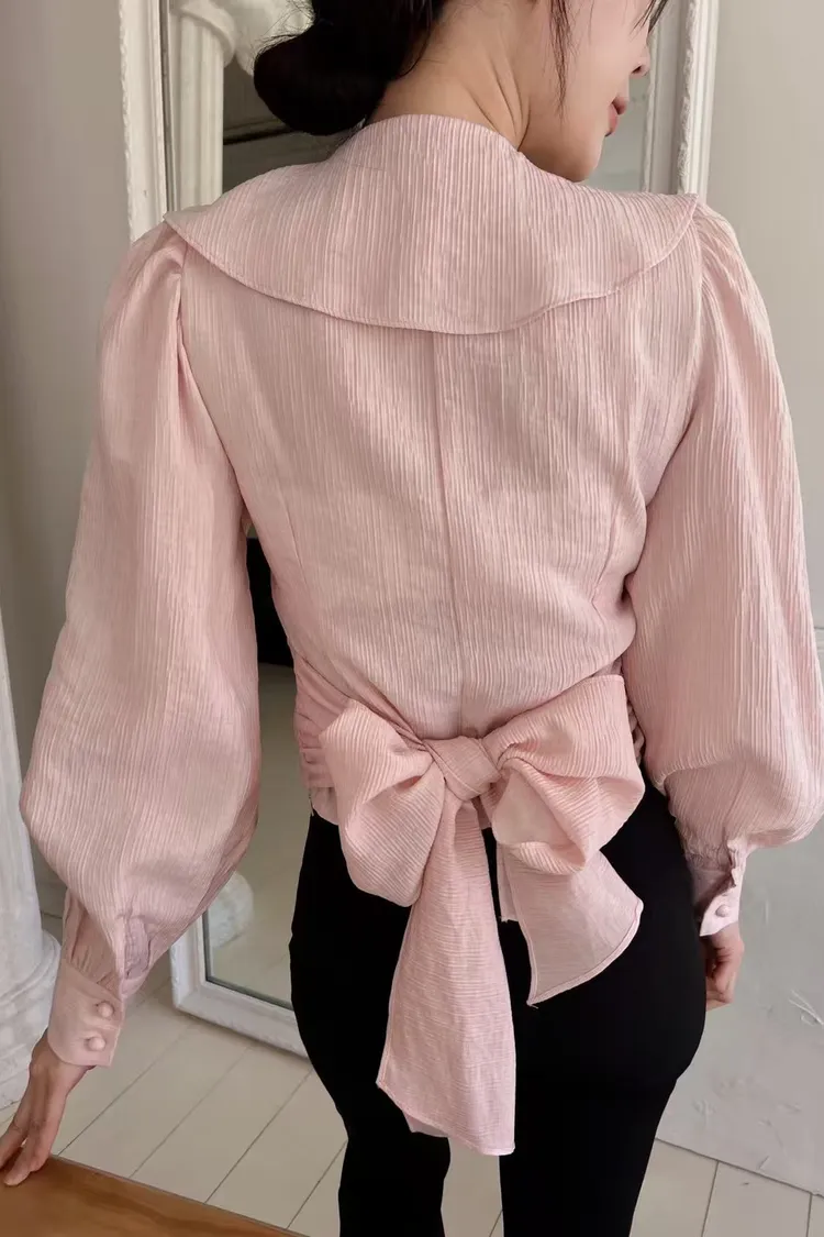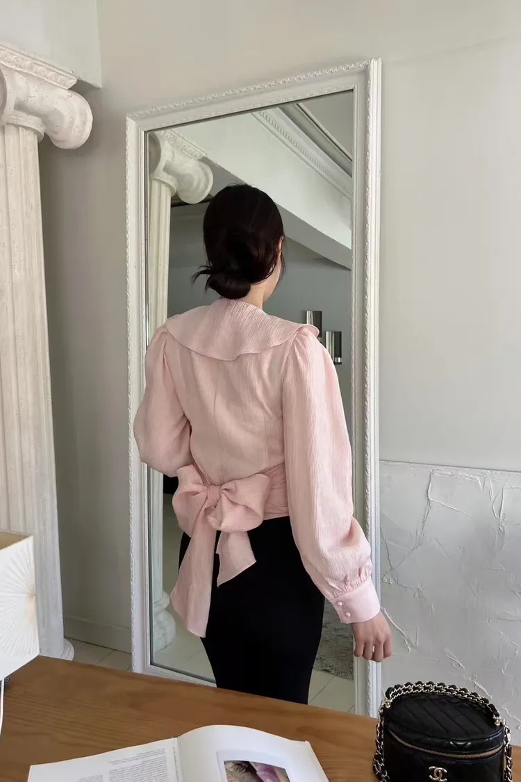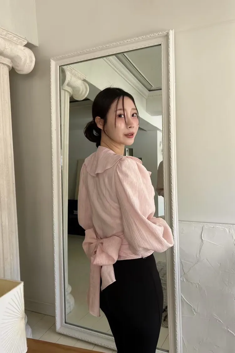 正韓 綁帶蝴蝶結荷葉上衣