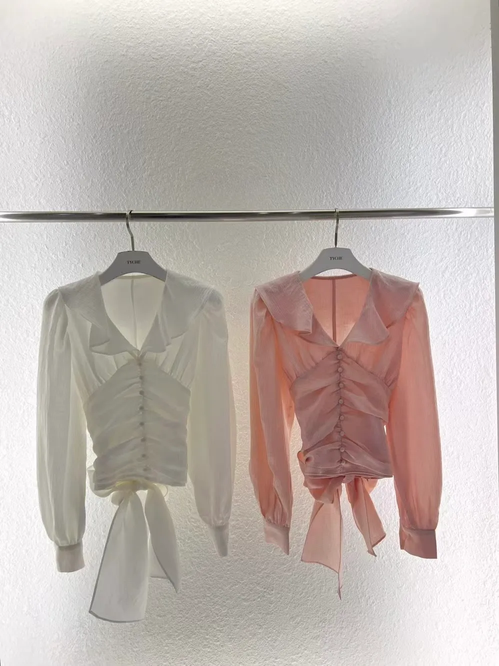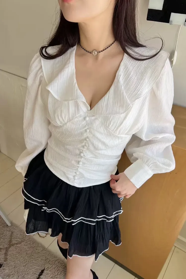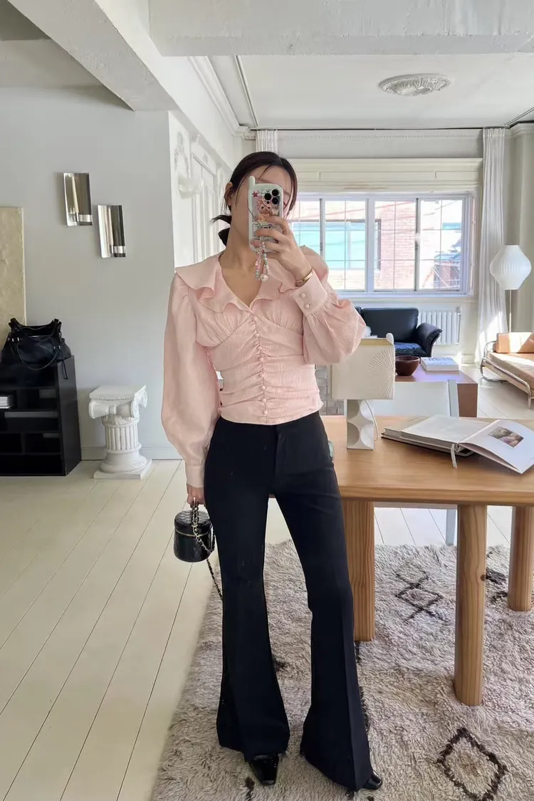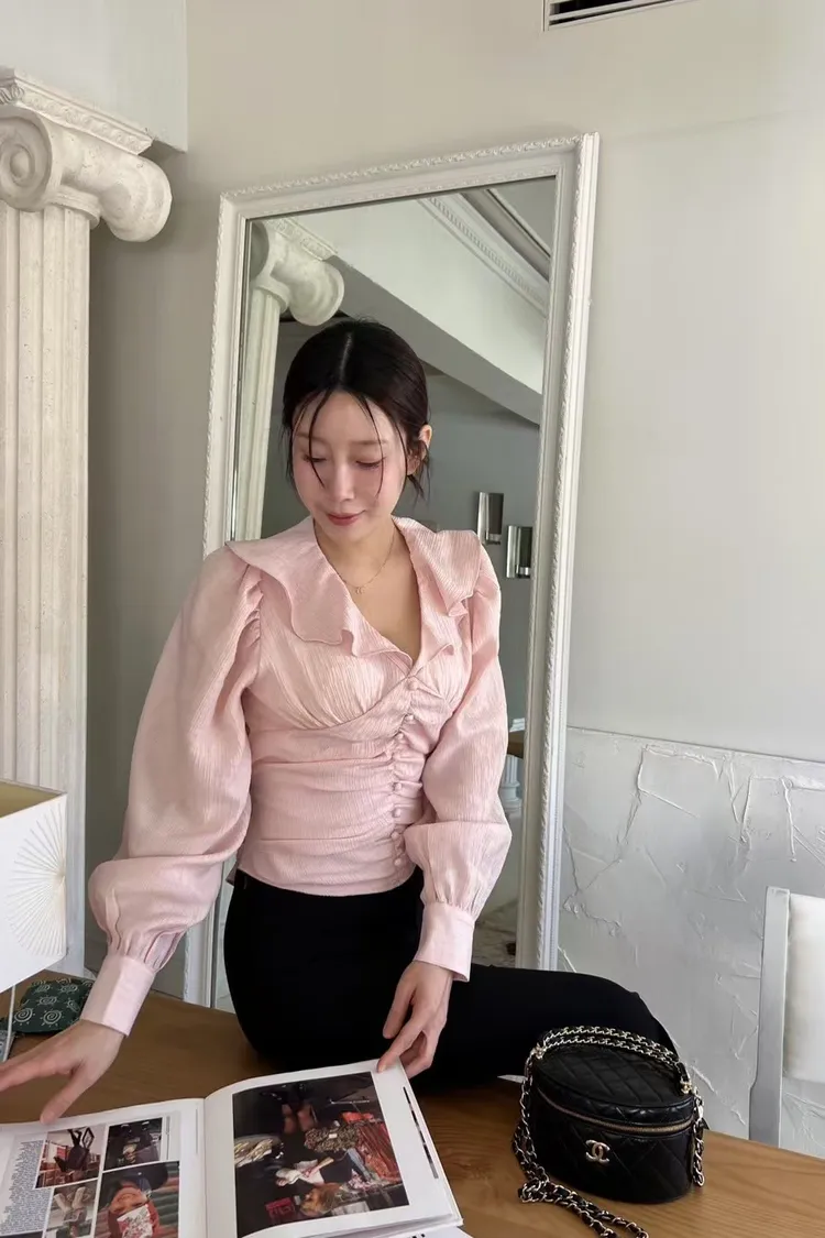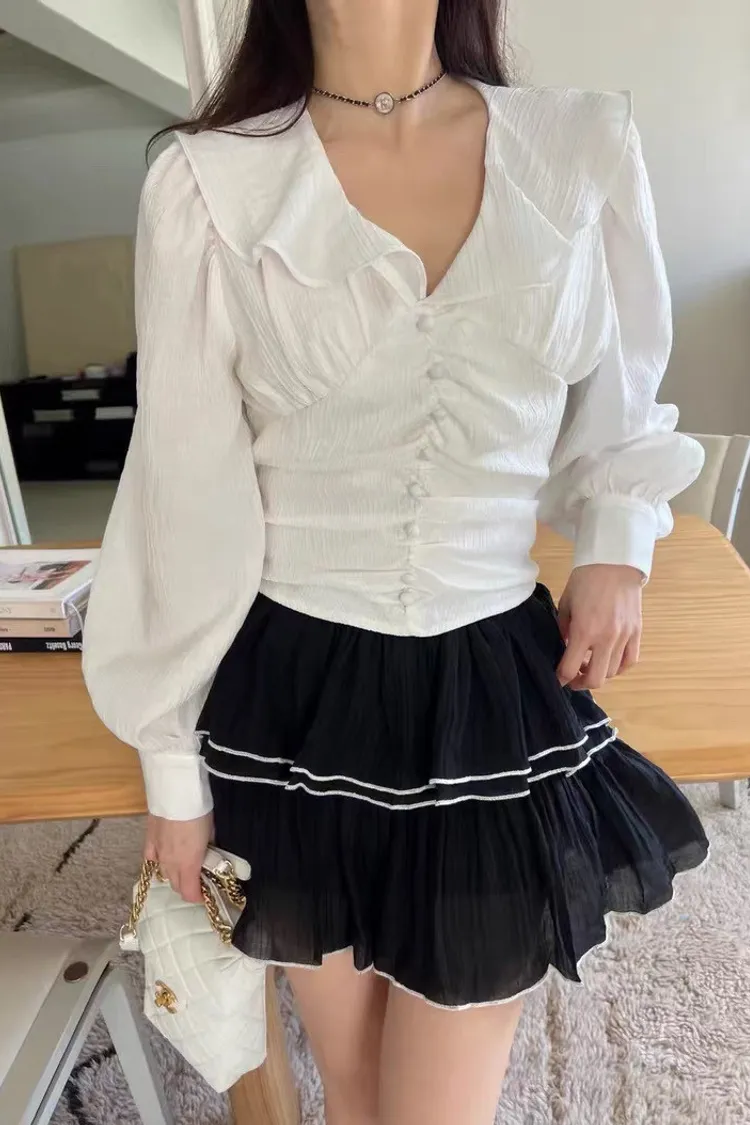 正韓 綁帶蝴蝶結荷葉上衣