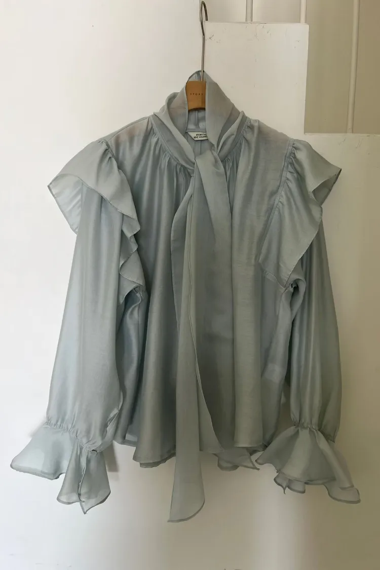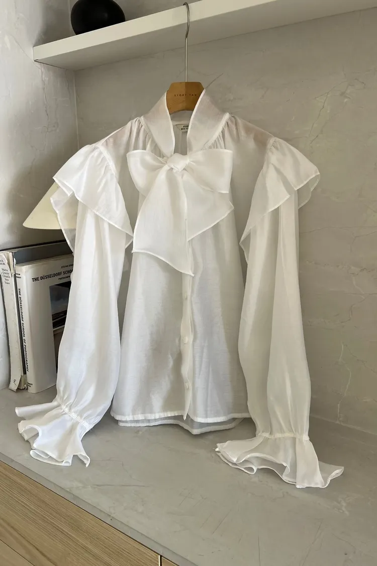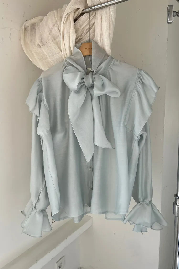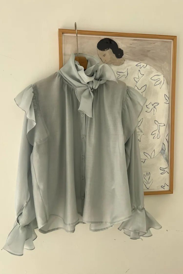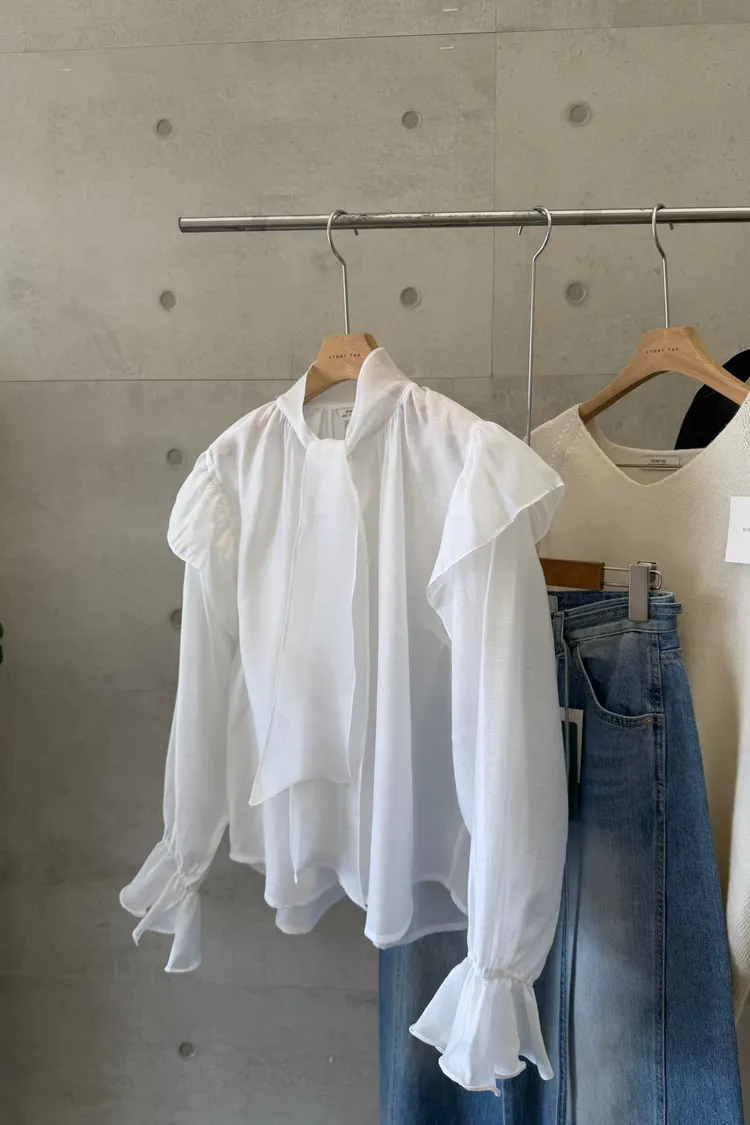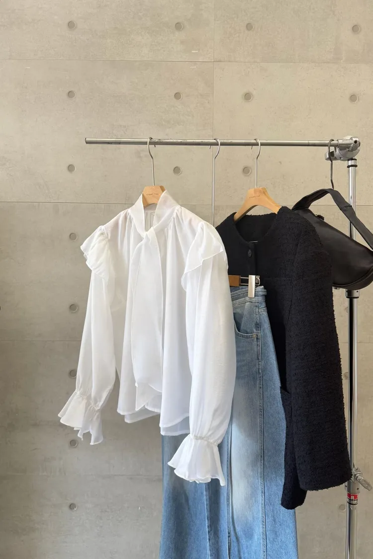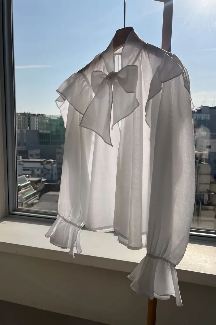 正韓 綁帶領結飄逸上衣