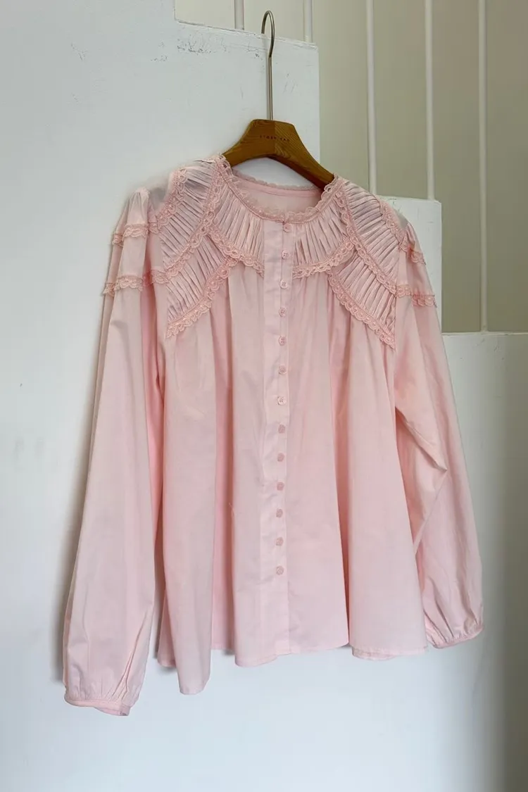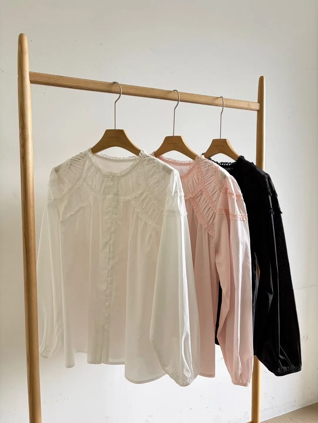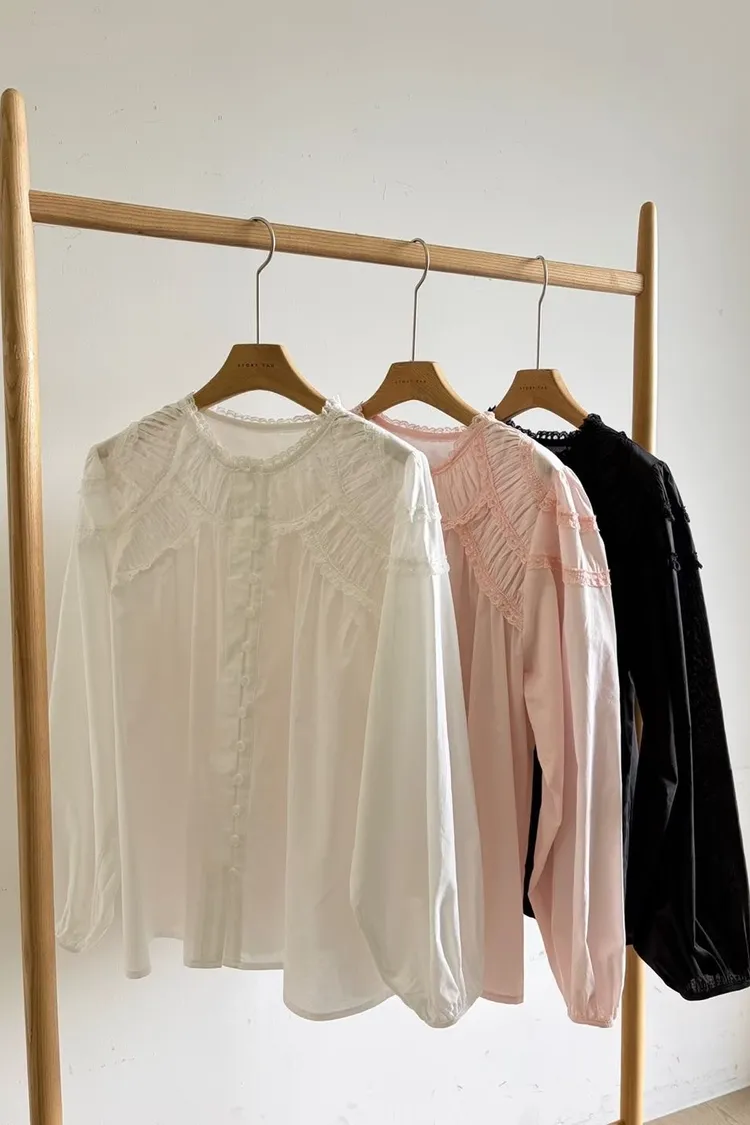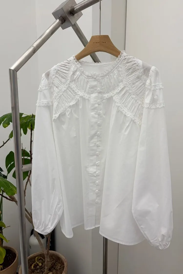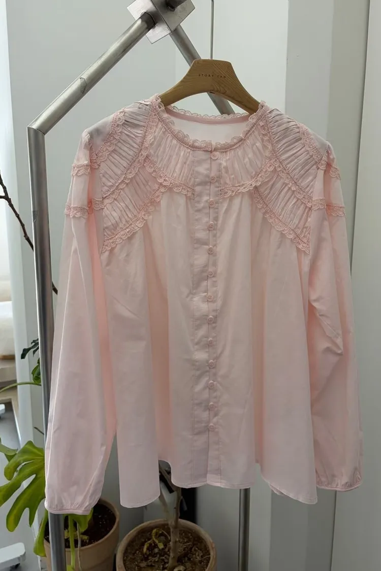 正韓 晨光凡爾賽蕾絲打褶襯衫