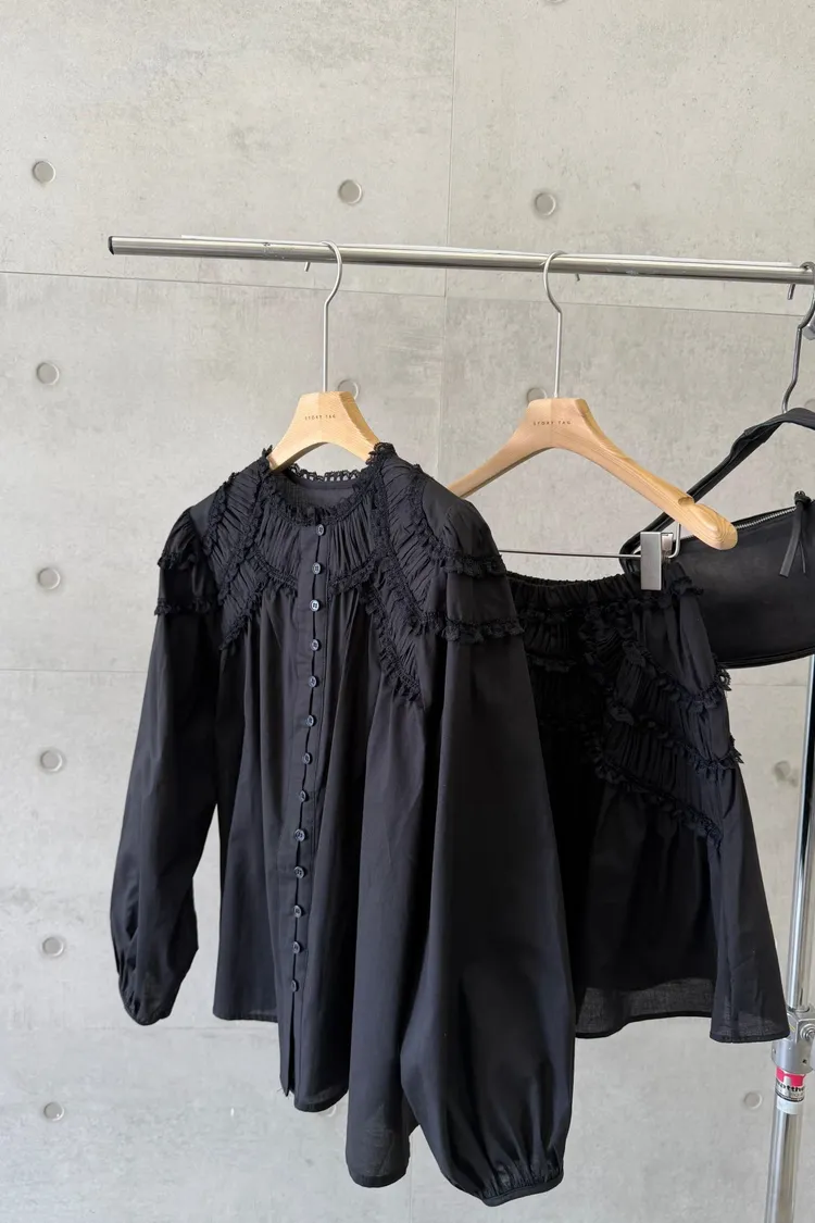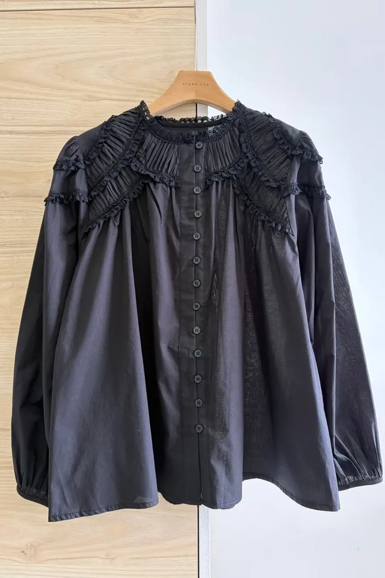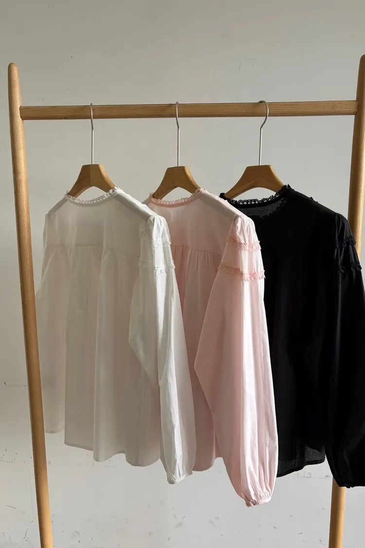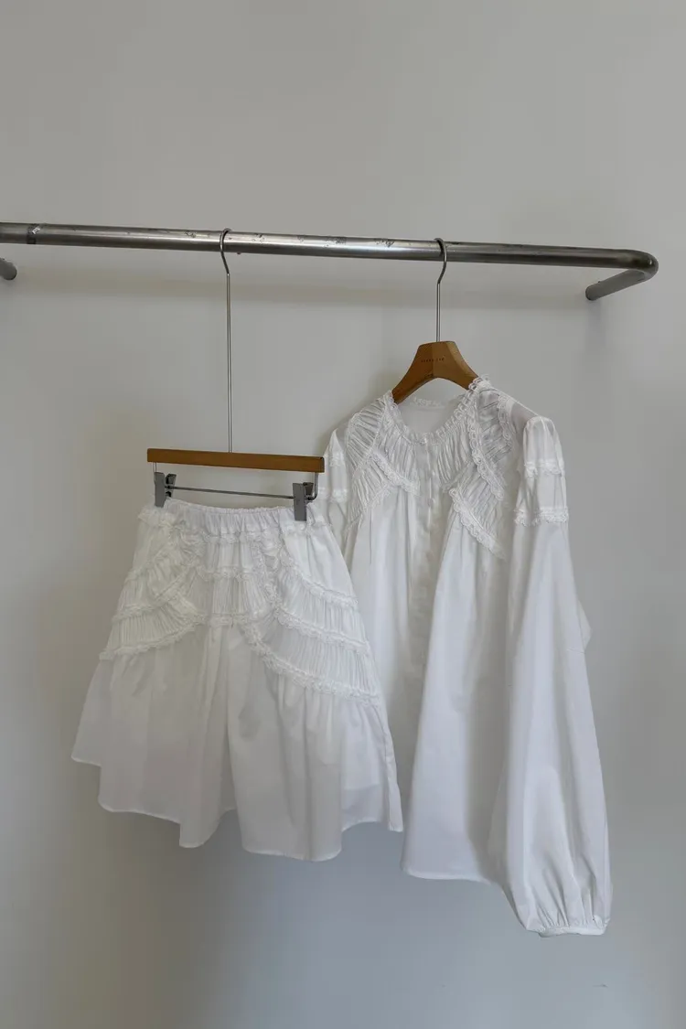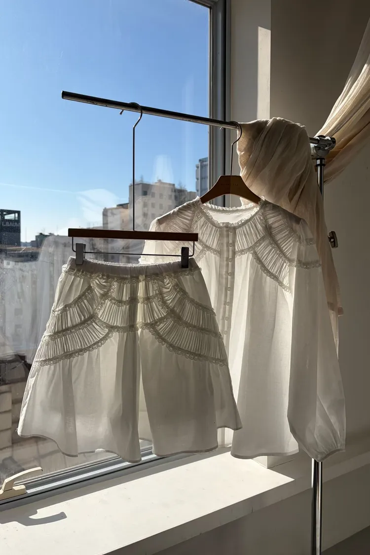 正韓 晨光凡爾賽蕾絲打褶襯衫