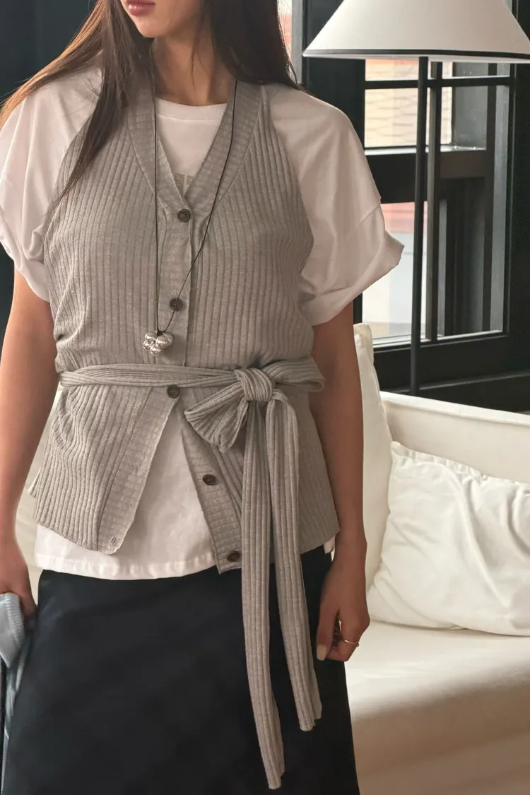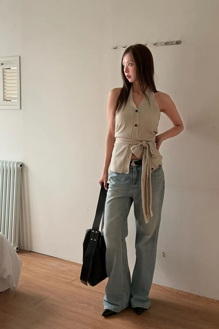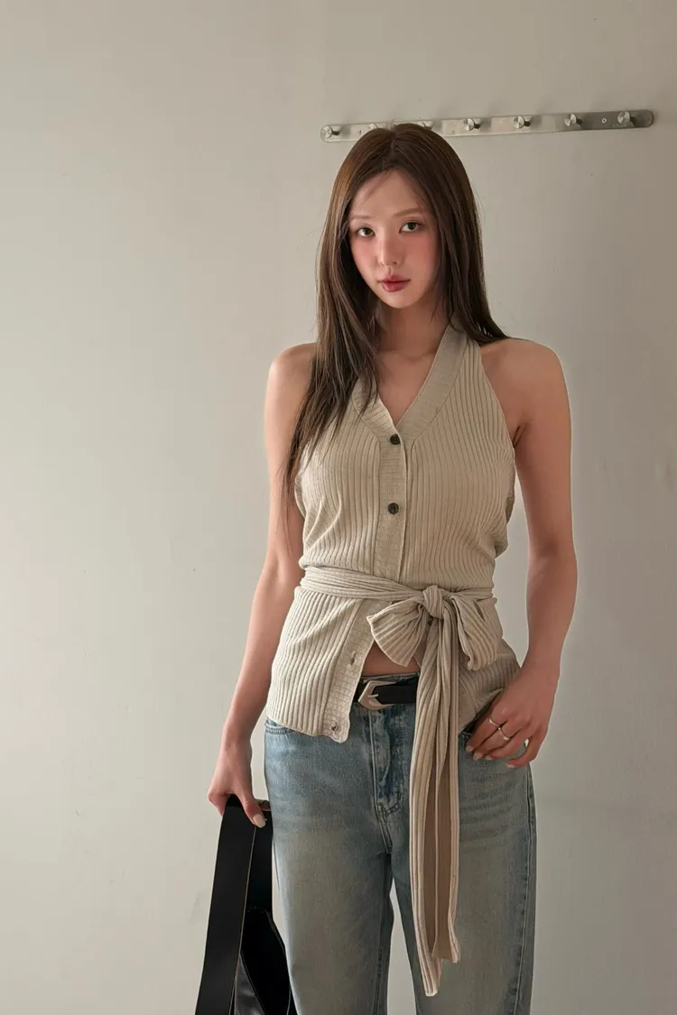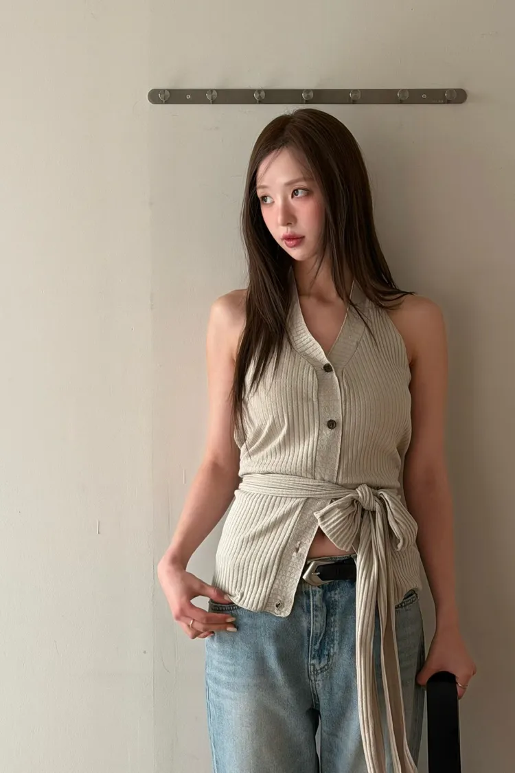 正韓 削肩繞脖唯美綁帶上衣