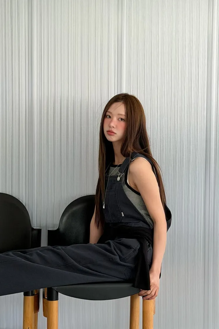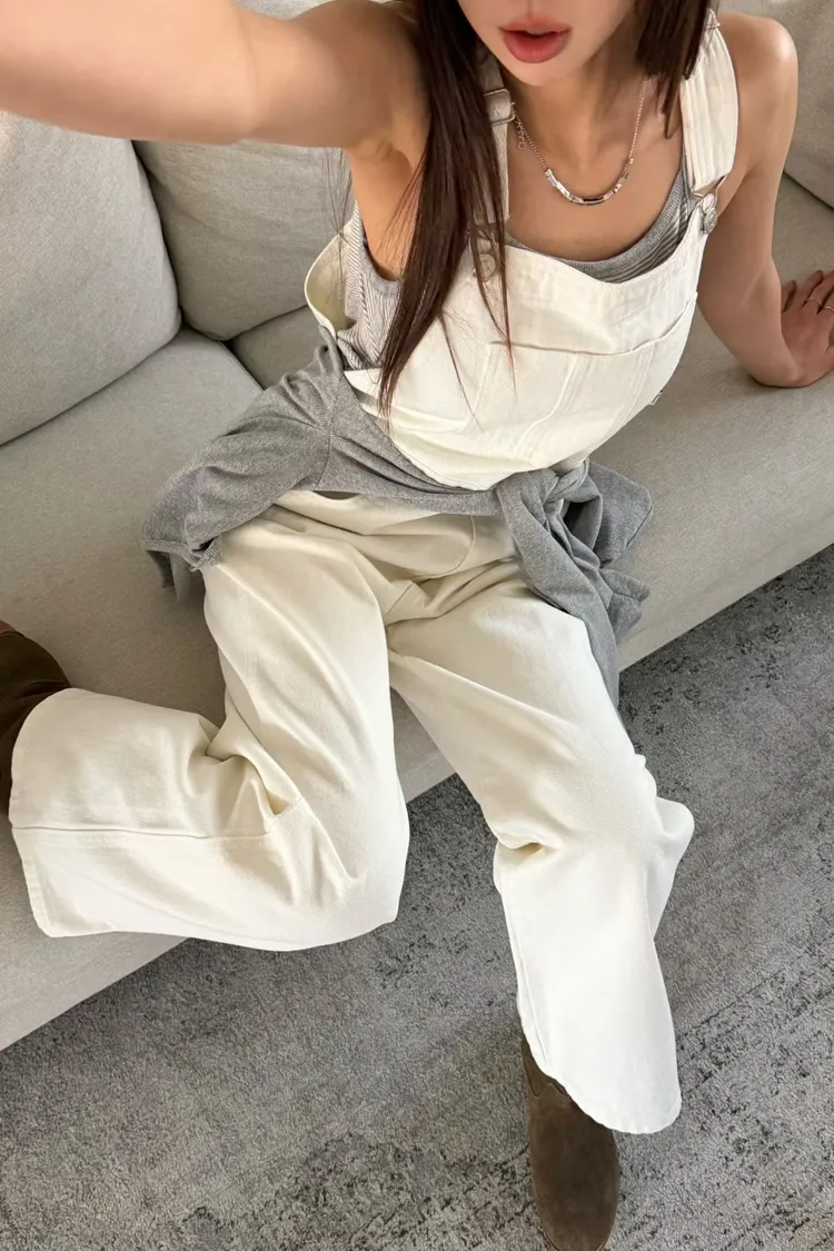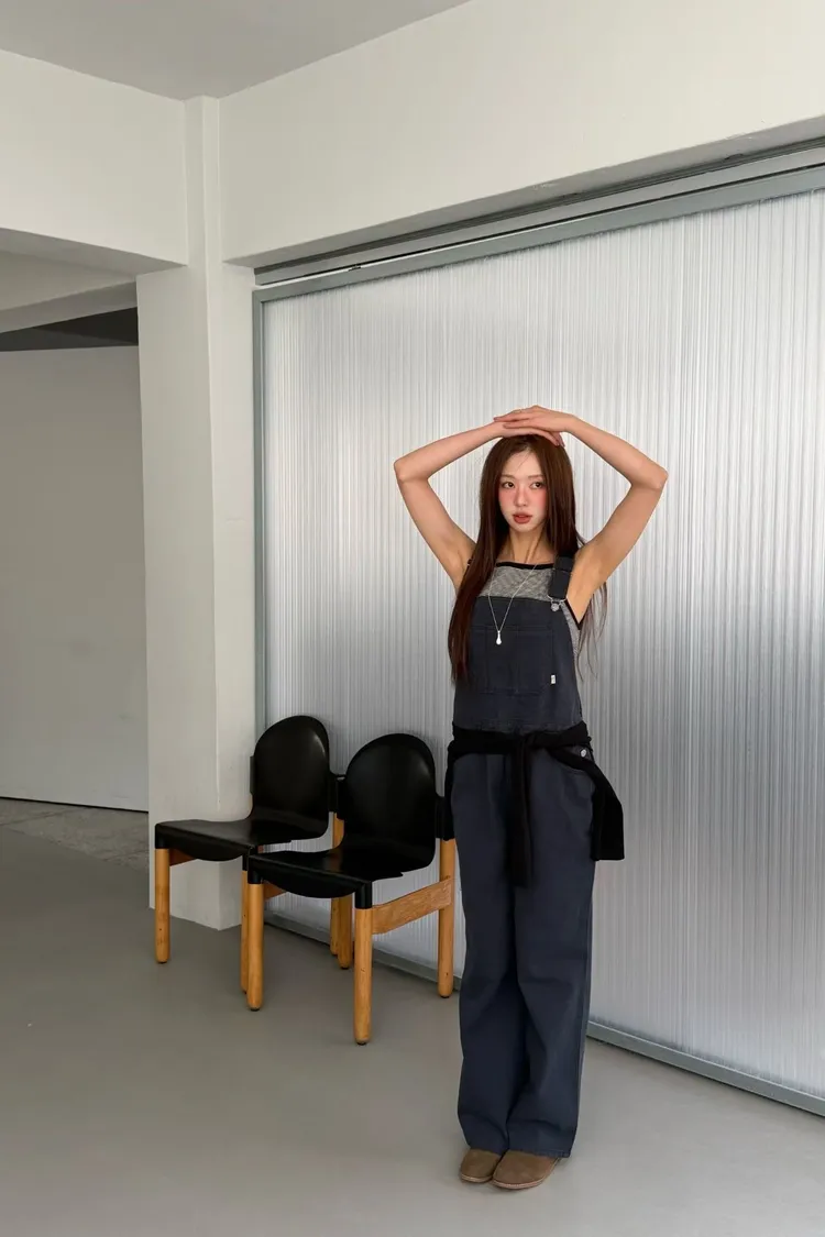 正韓 總是少一件的挺料吊帶褲