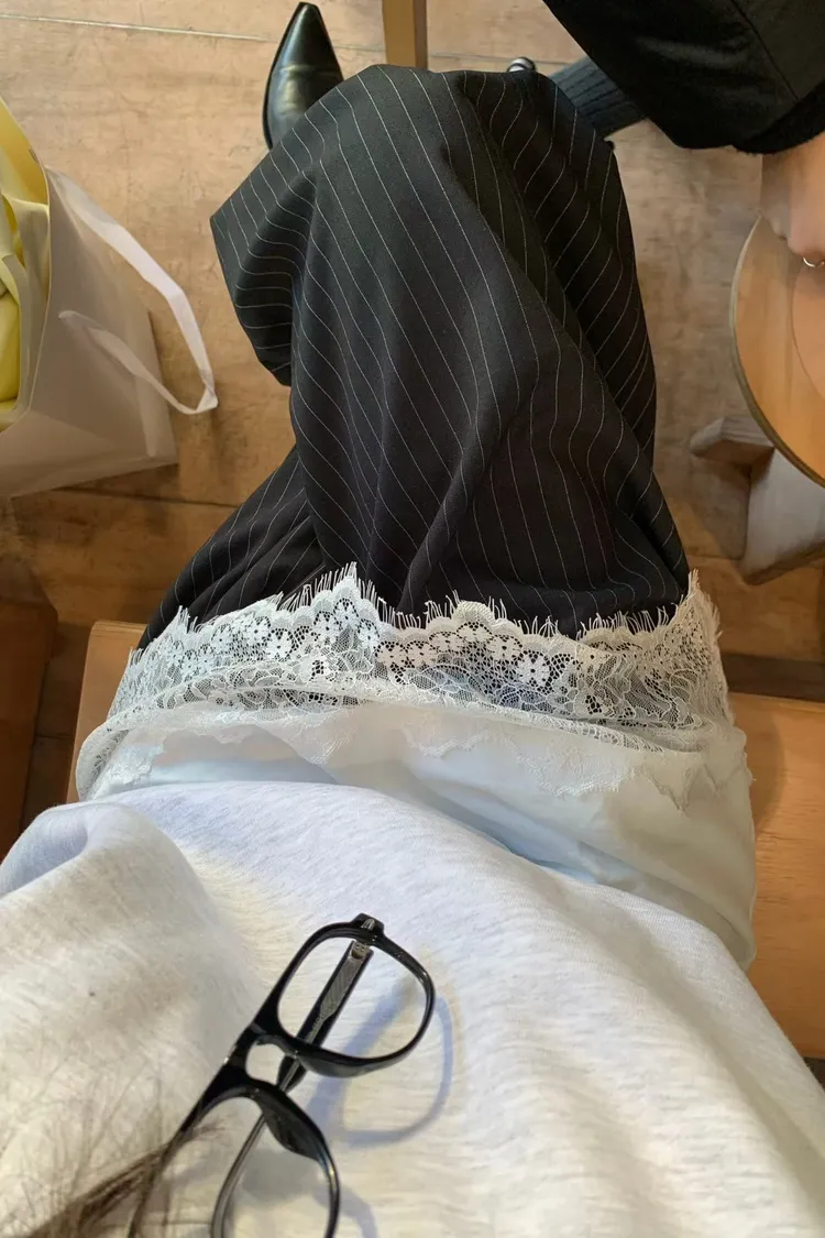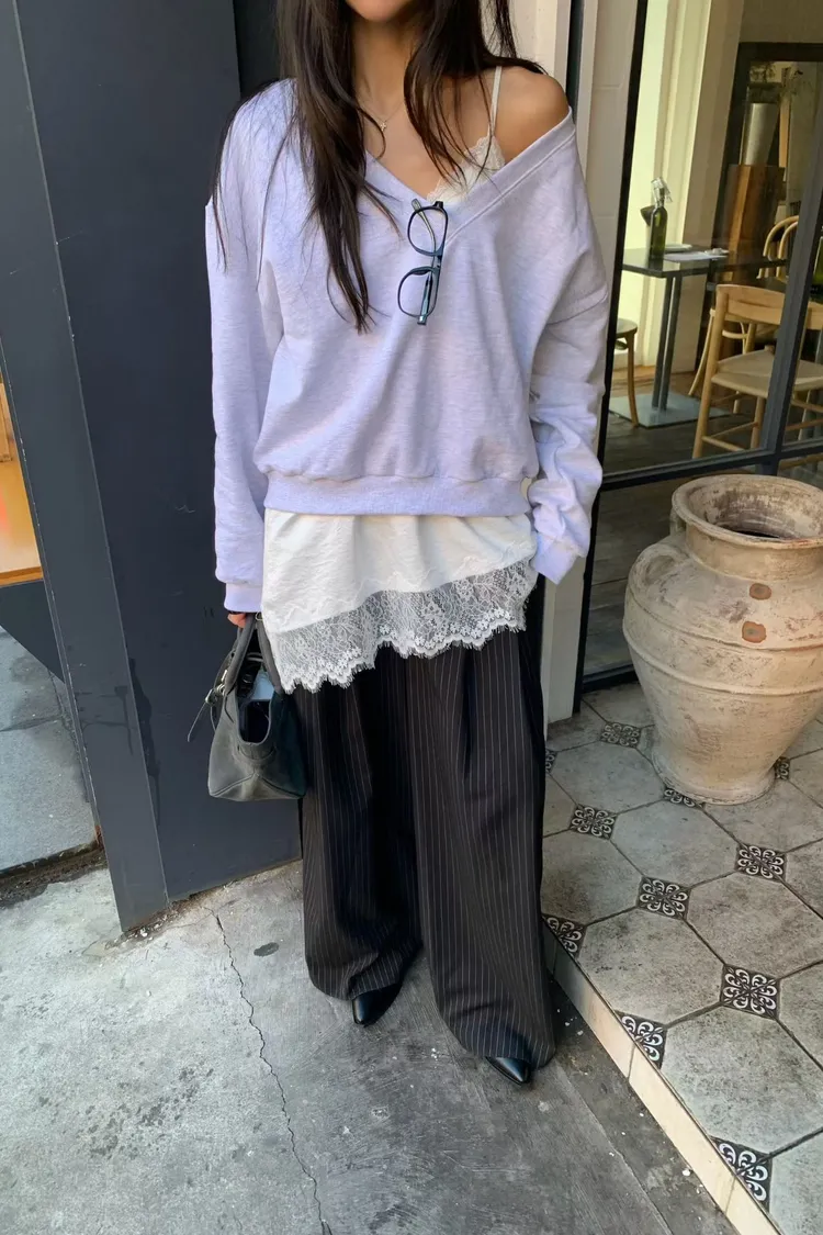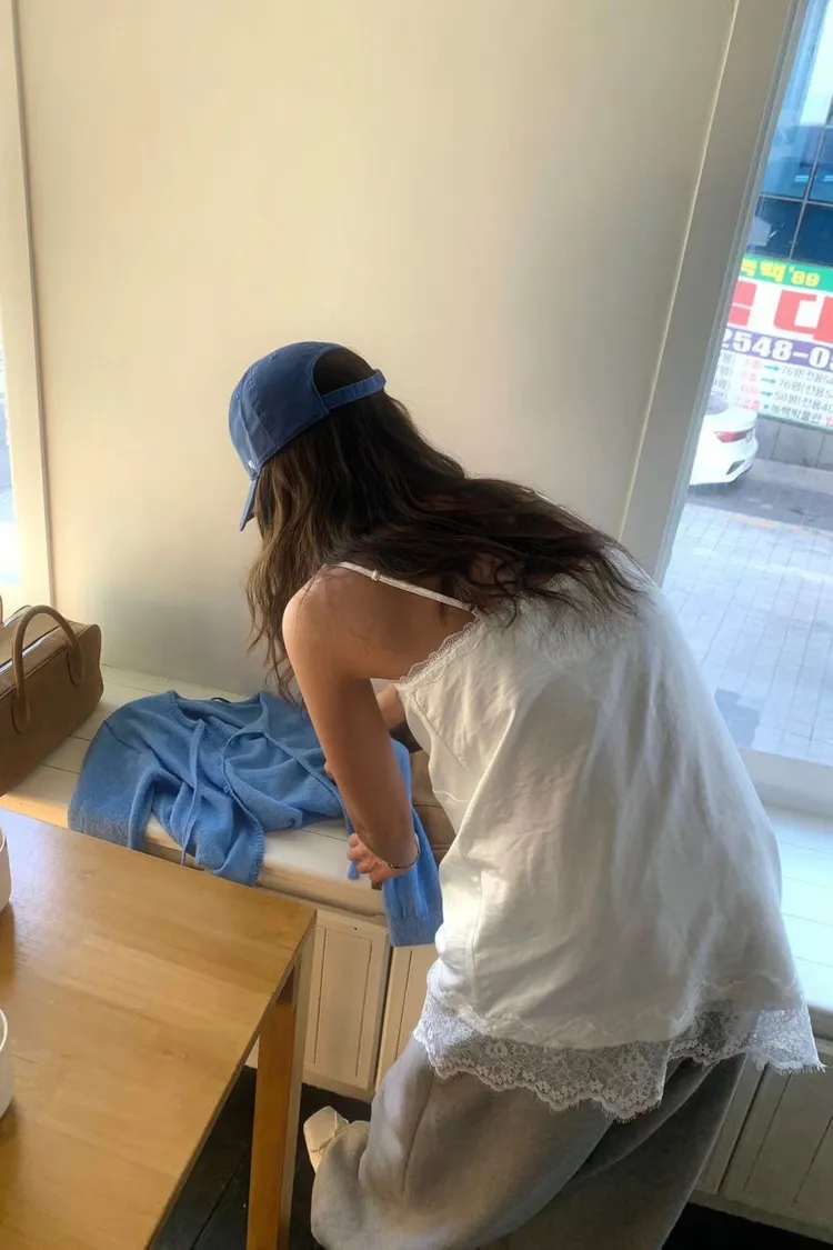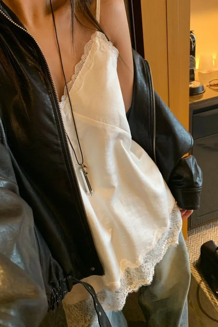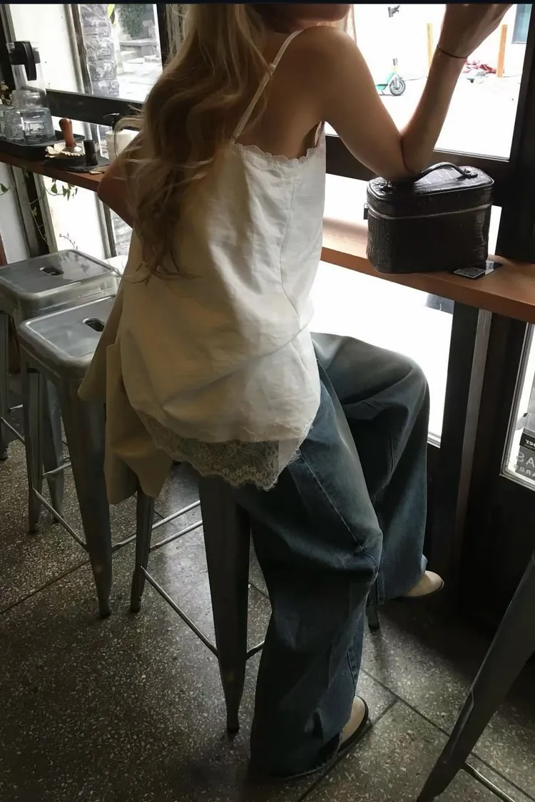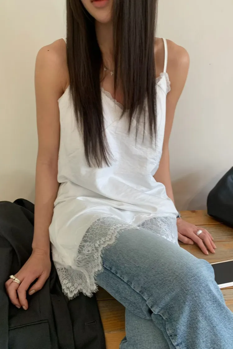 正韓 睫毛蕾絲細肩上衣洋