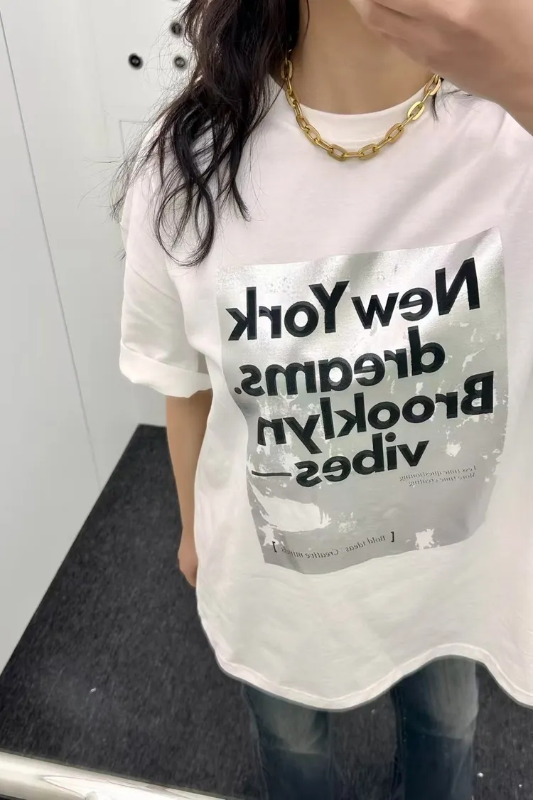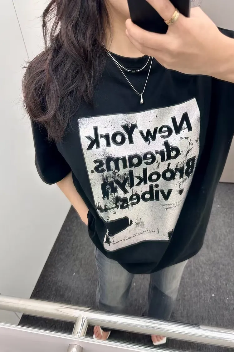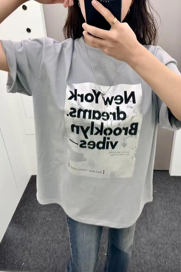 正韓 時尚設計字母短袖上衣