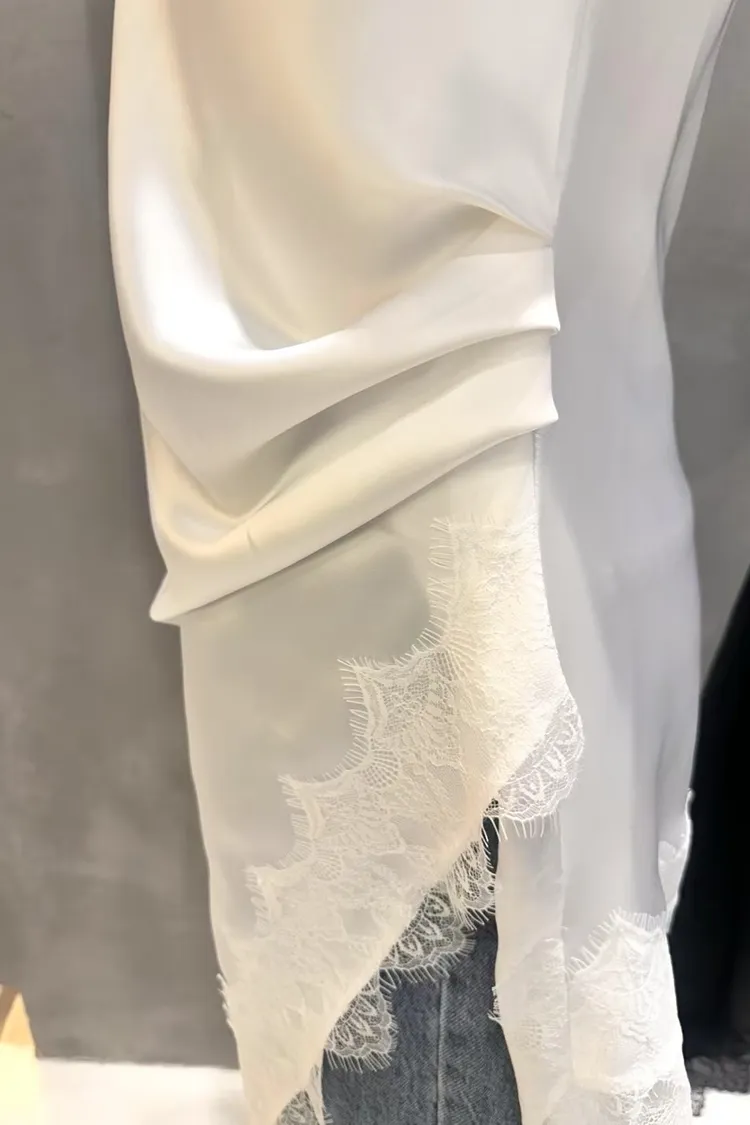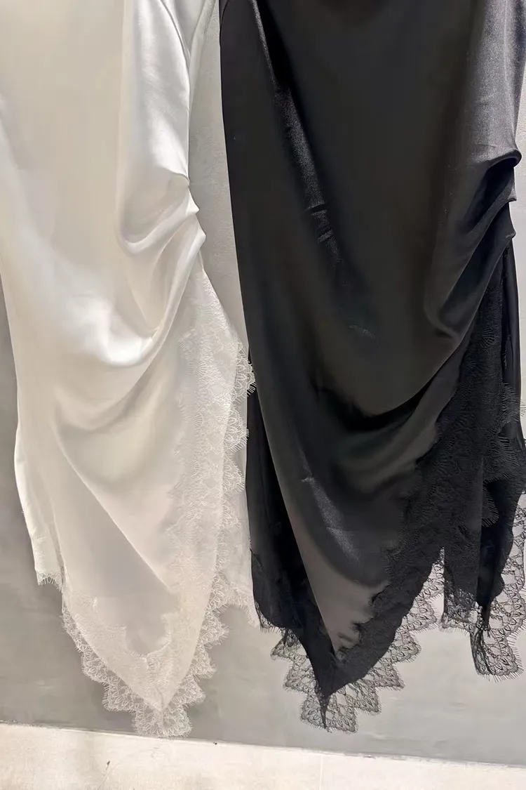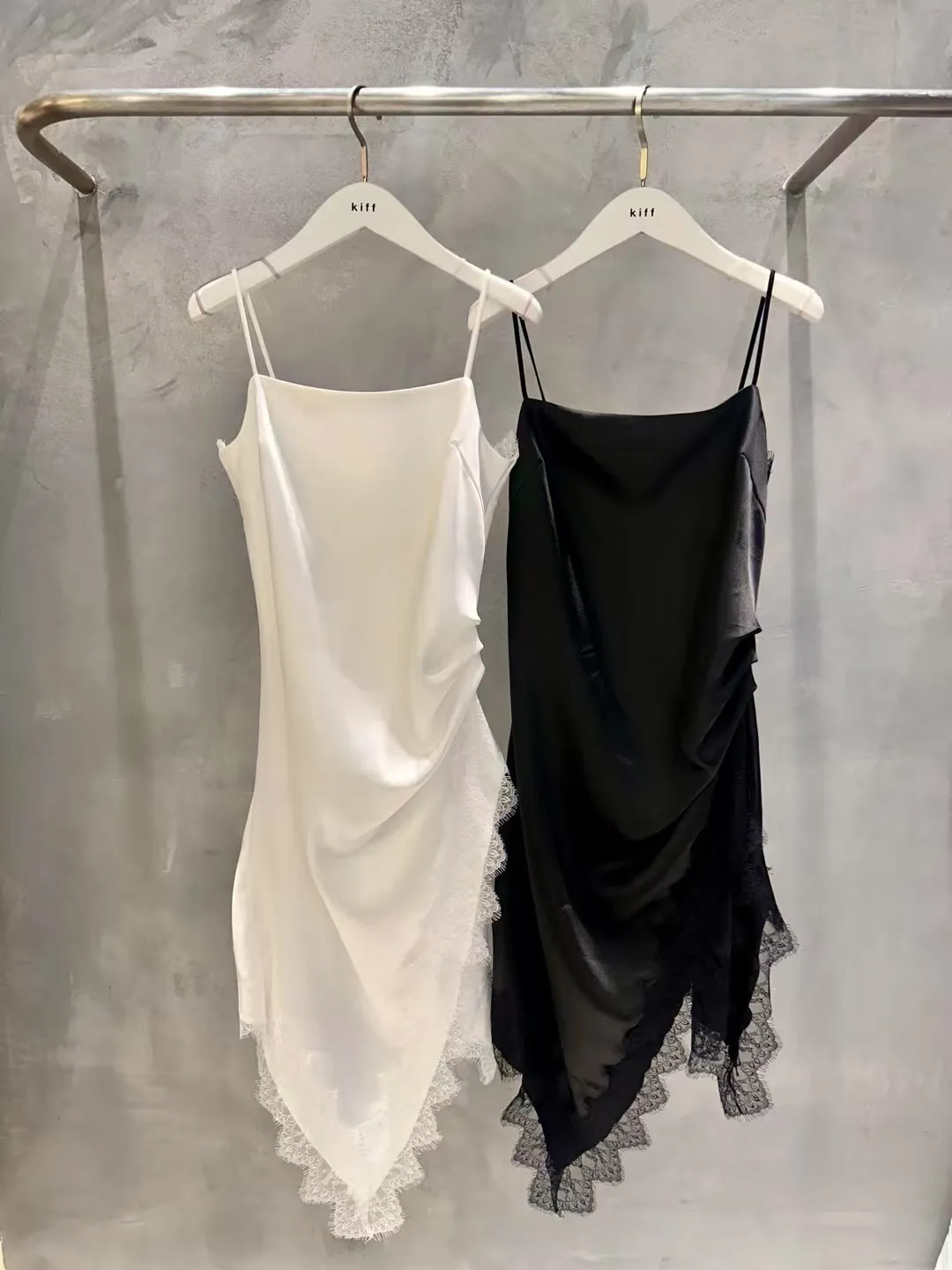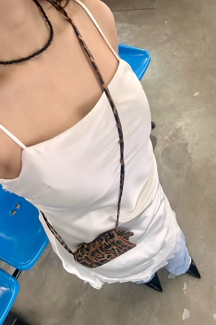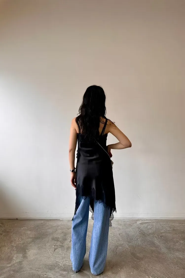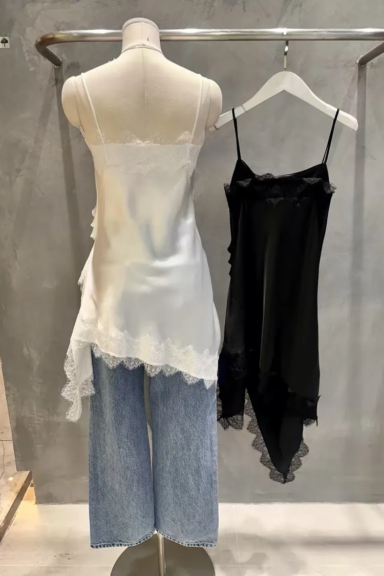 正韓 睫毛蕾絲開衩細肩洋裝