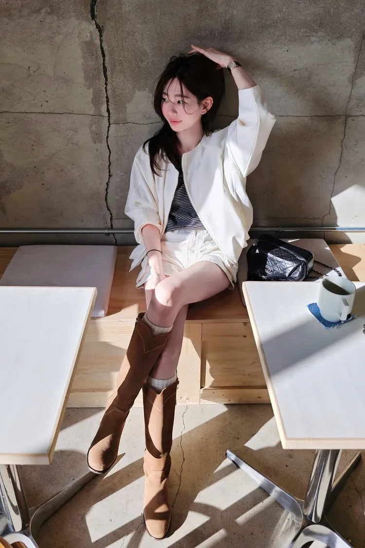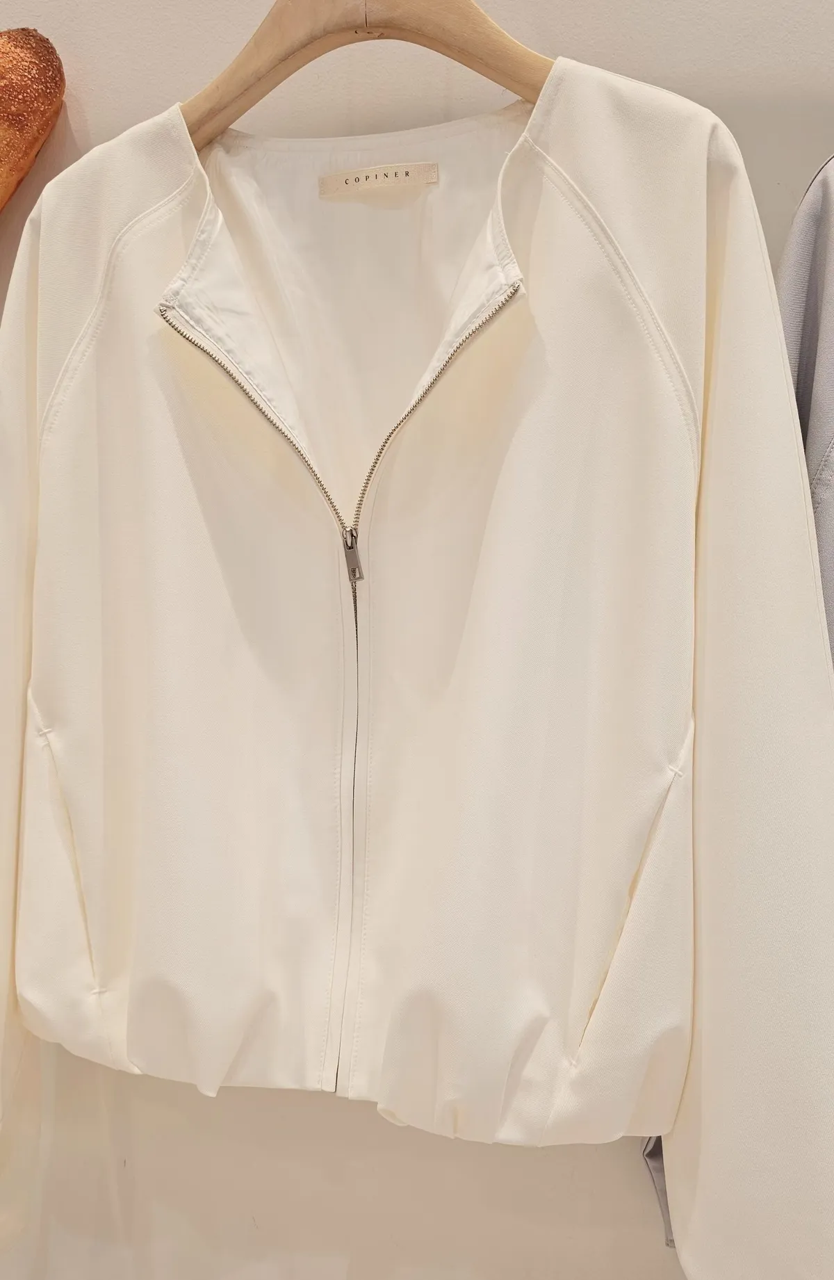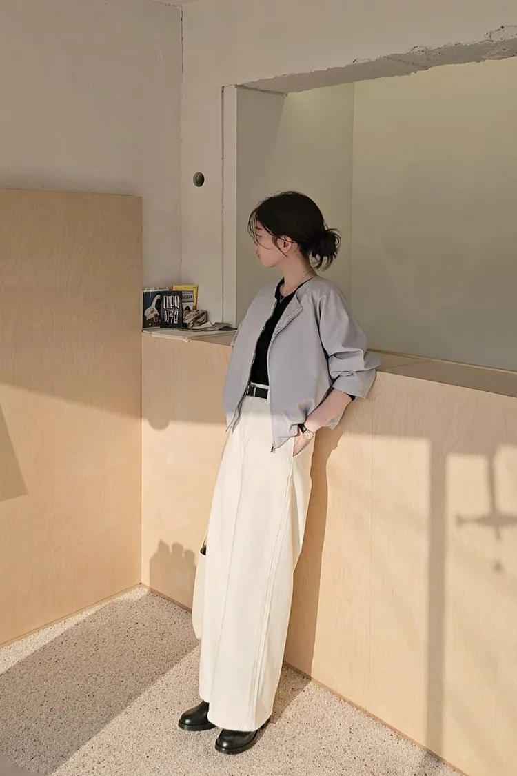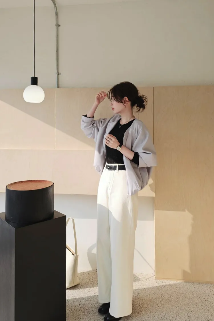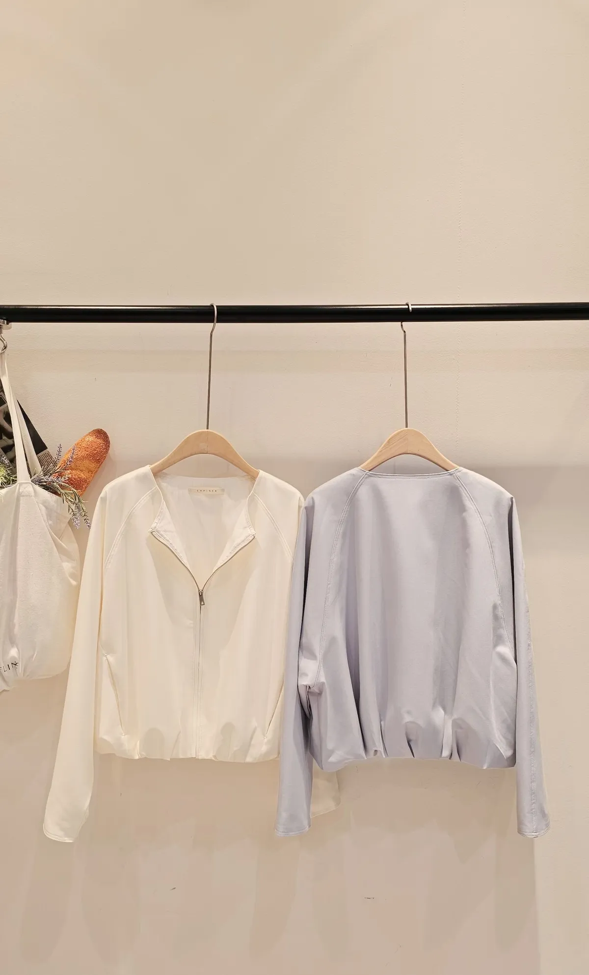清新感奶乎乎的一款質感薄夾克🧊🌿牛奶白和帶一點灰度低飽和淺藍色調下擺的打摺花苞線條很漂亮鬆弛感和細膩氣質一次到位✨ 薄款面料,觸感柔滑細緻,垂感很美的一款高質感全內裡,兩側隱形口袋 休閒修身版型 78%聚酯+16%人造絲+6%彈性 onni搭配🩰奶油短褲