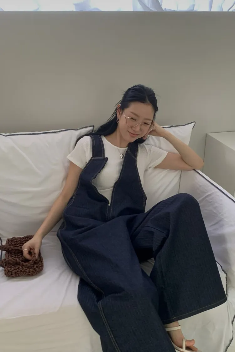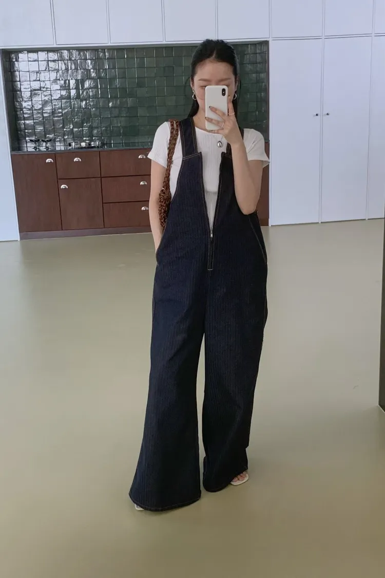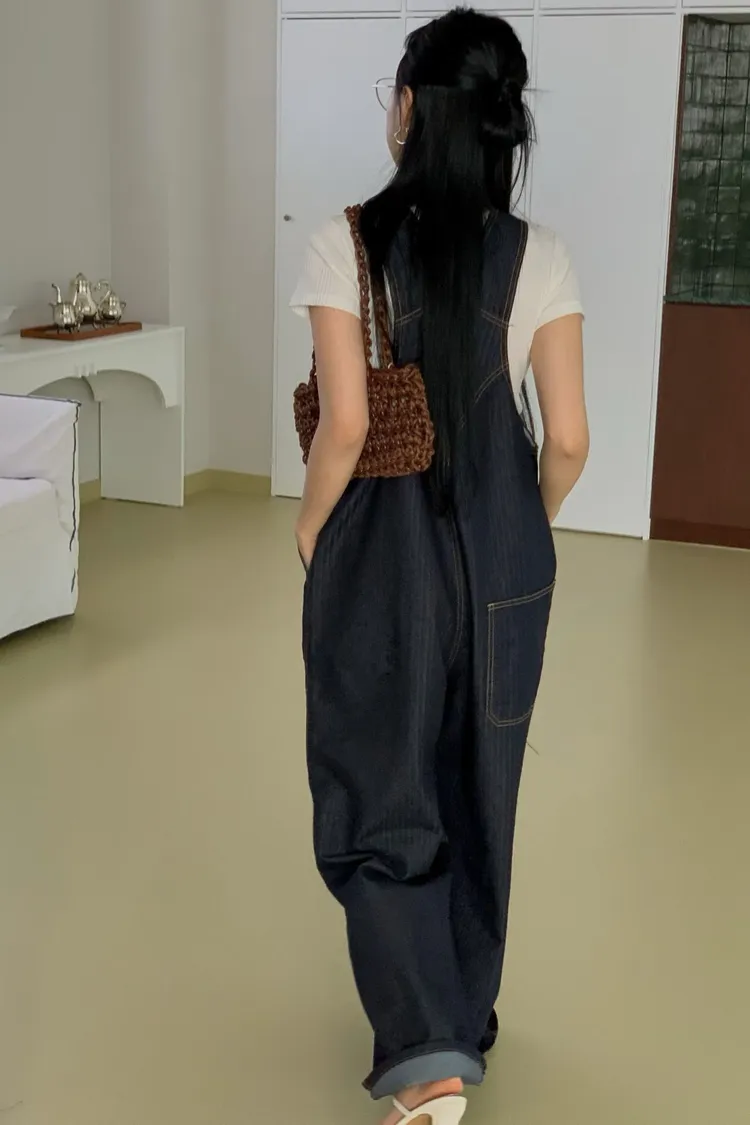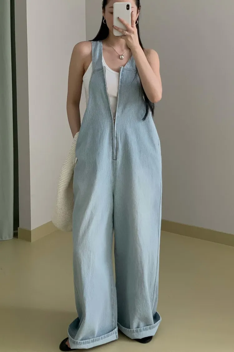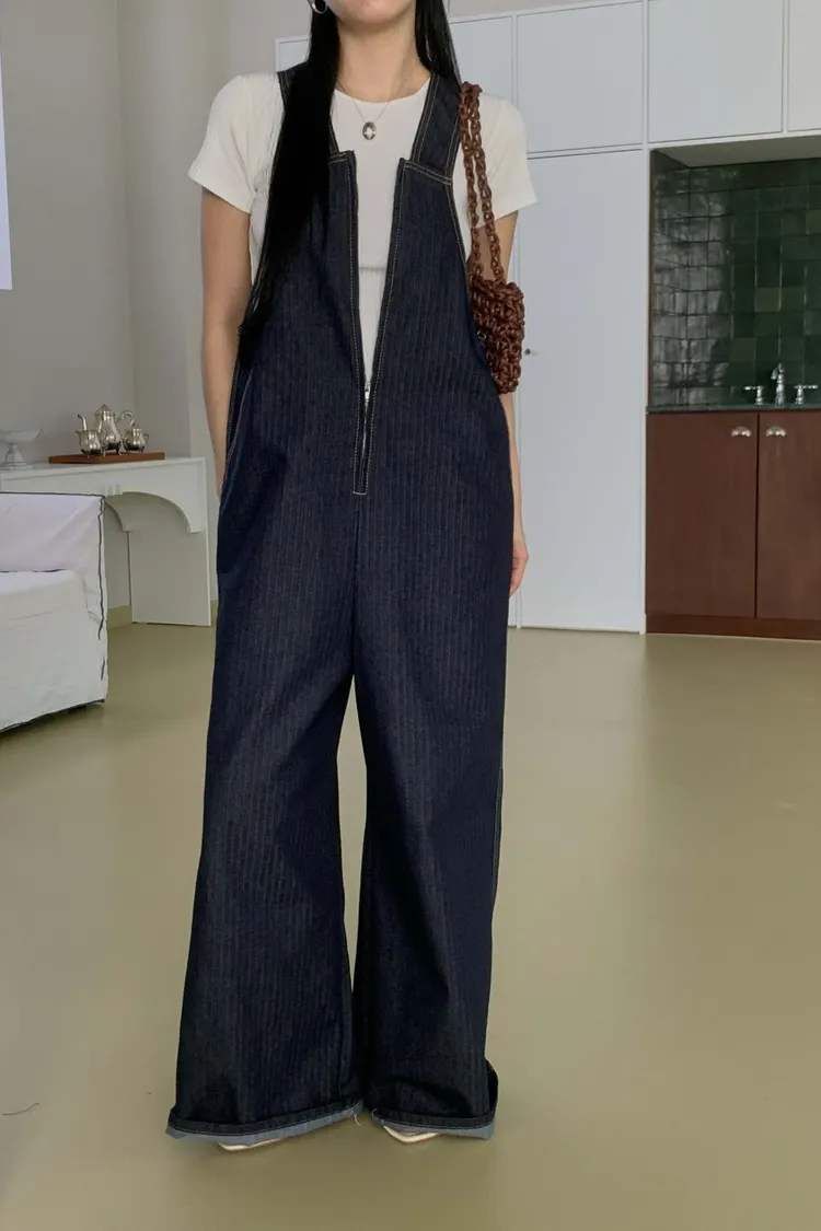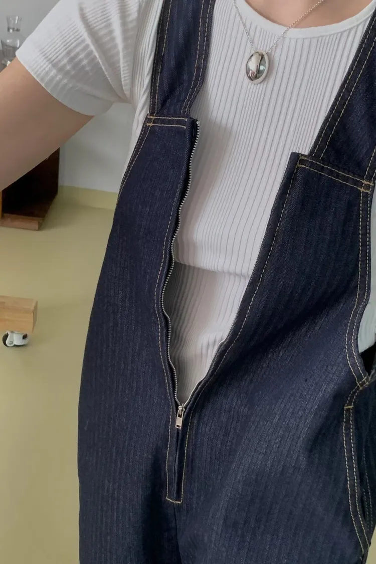 正韓 設計款深V連身吊帶褲