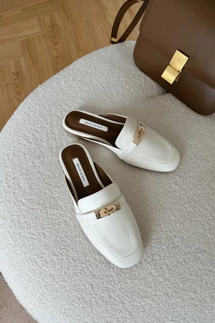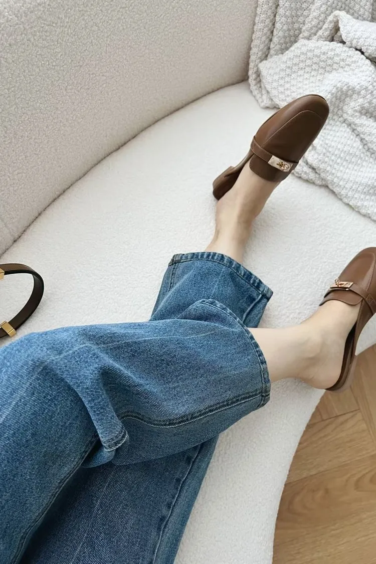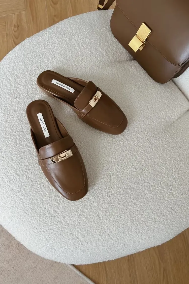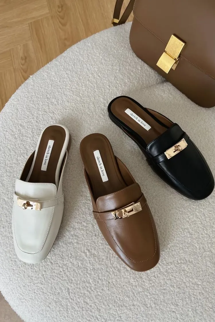 正韓 質感金釦穆勒修拖鞋