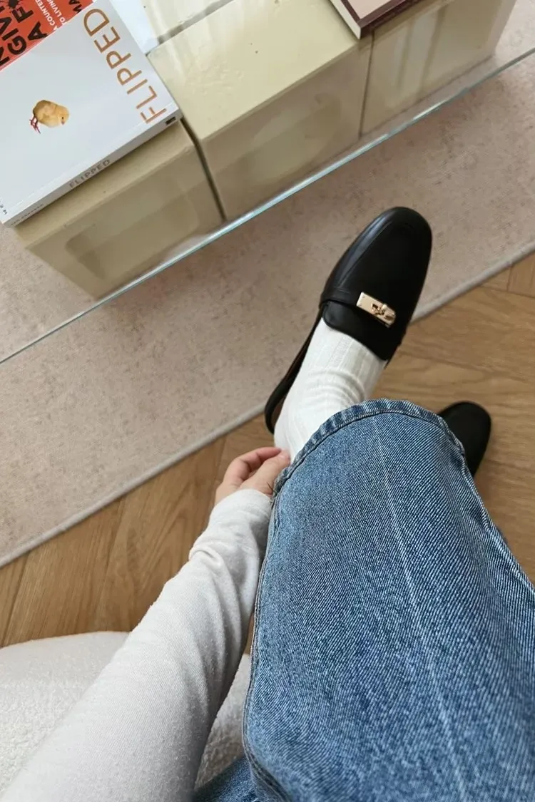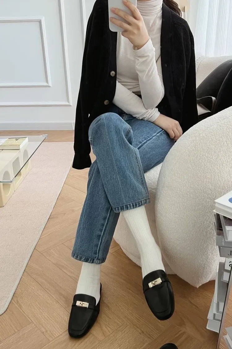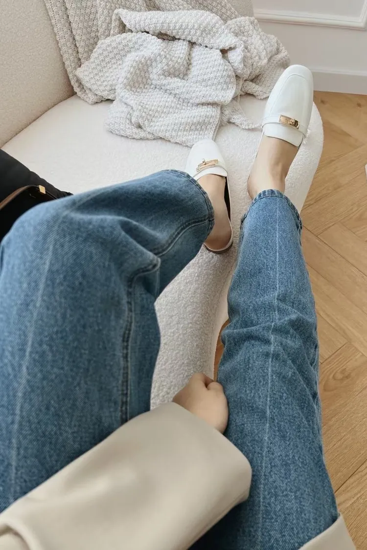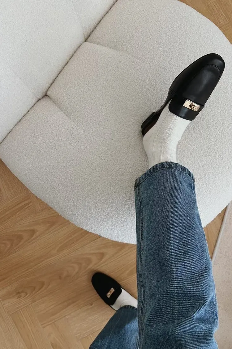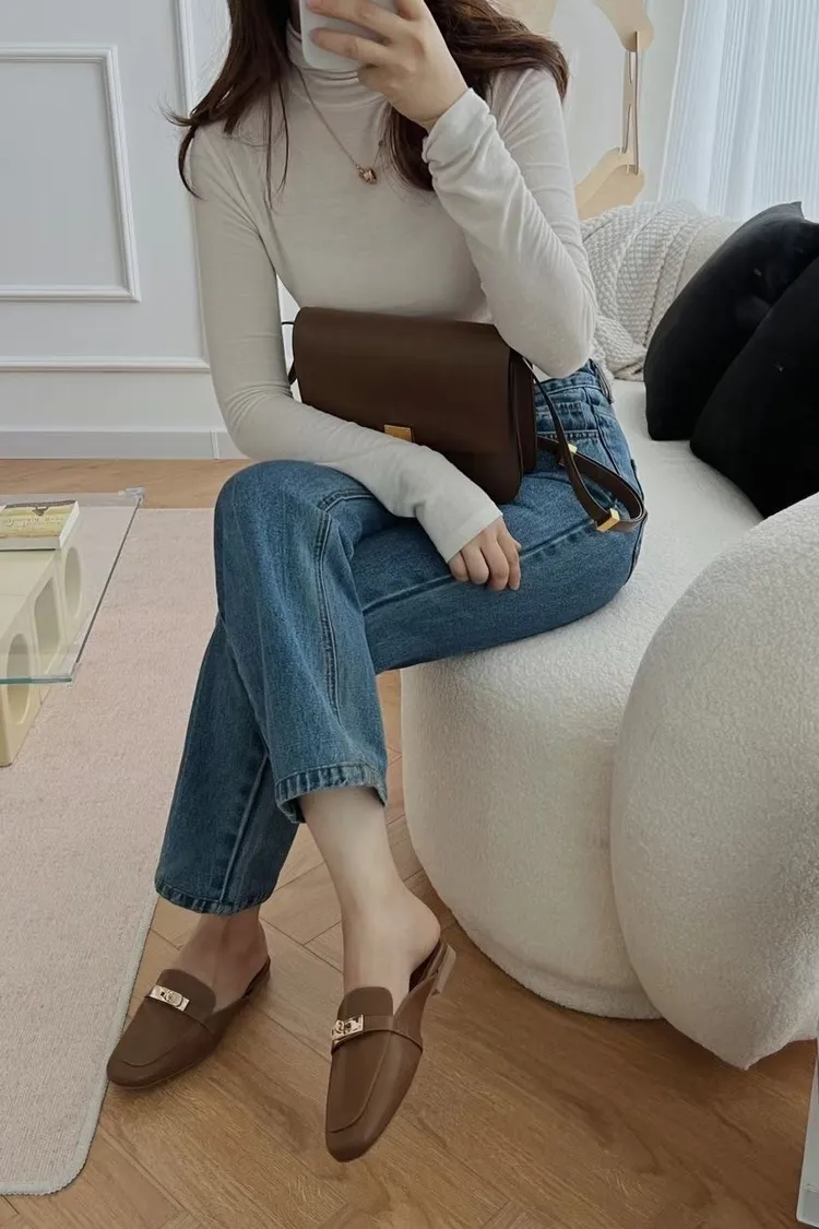 正韓 質感金釦穆勒修拖鞋