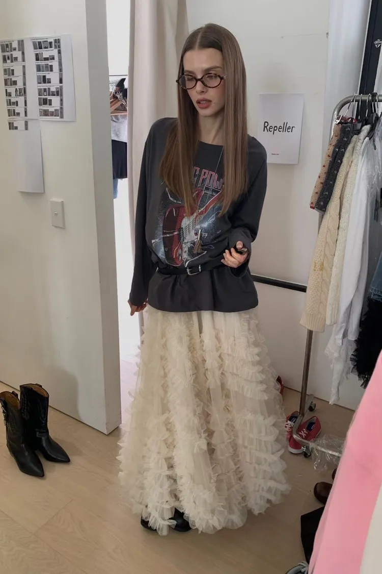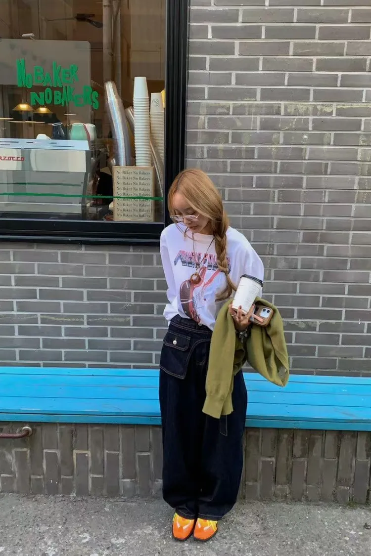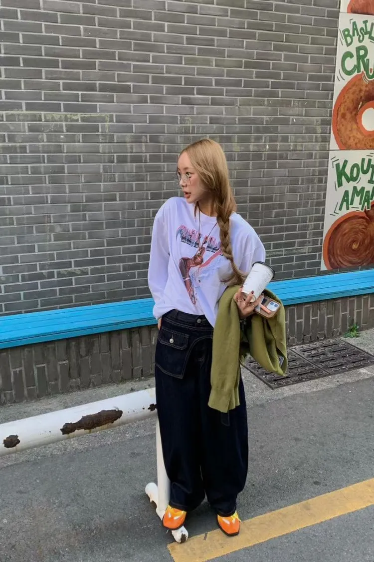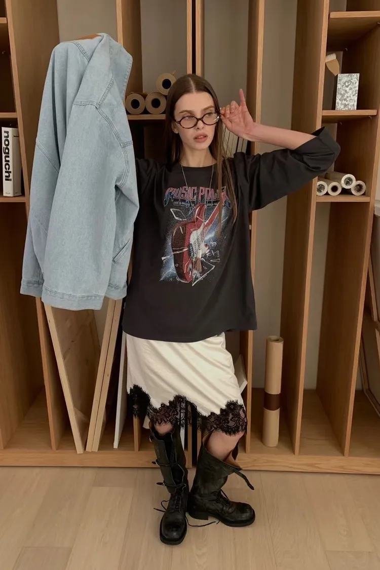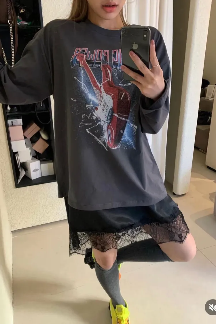 正韓 寬版個性吉他長版上衣