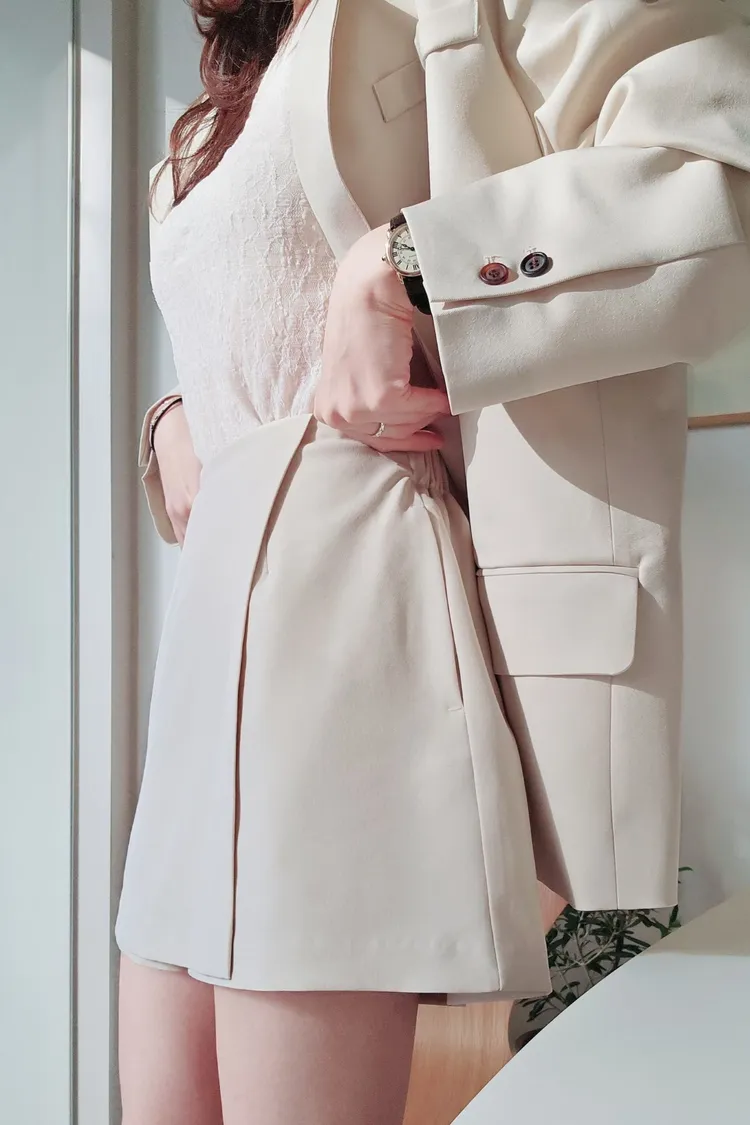 正面是一片裙樣式,背面是西裝短褲