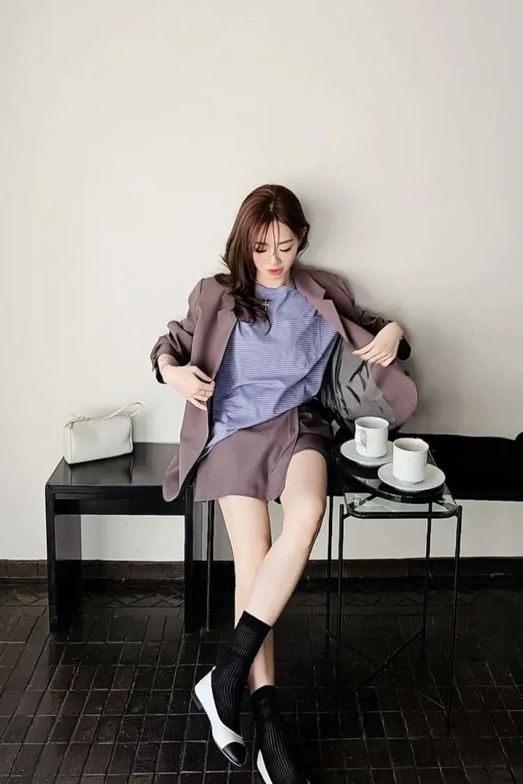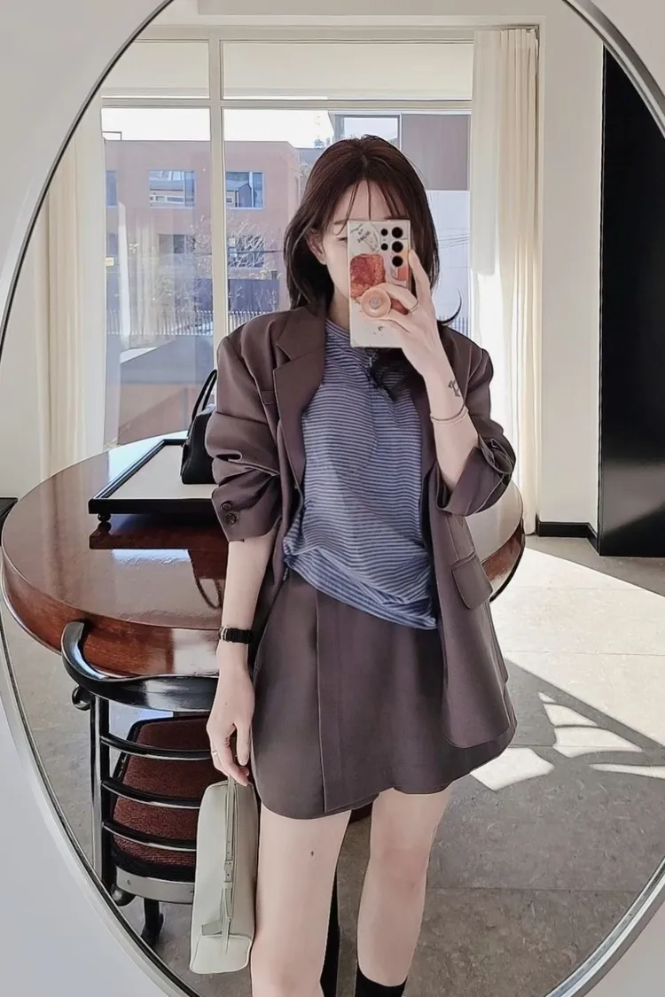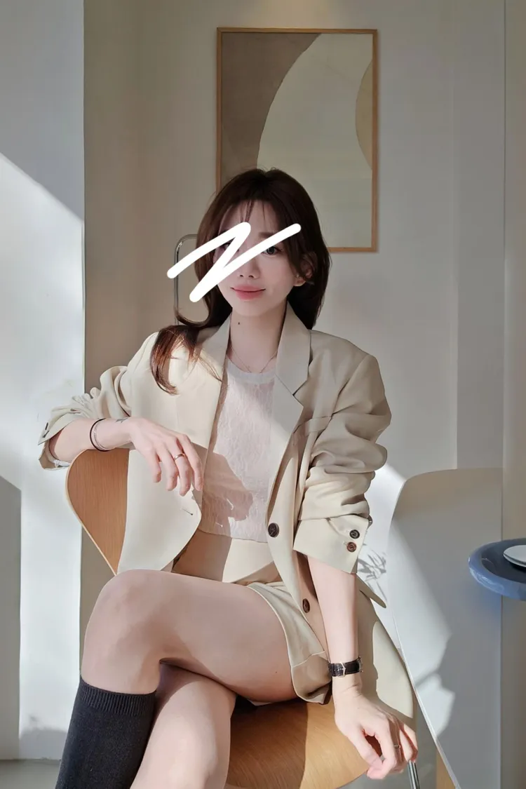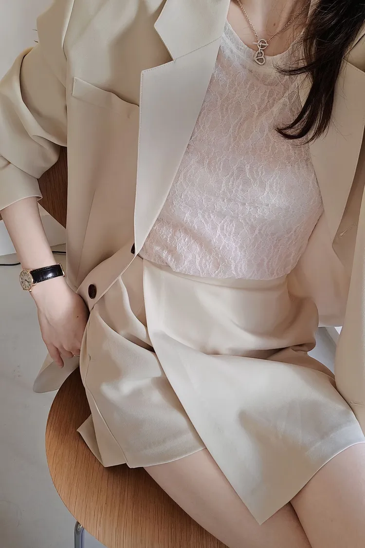 onni搭配🩰彈力蕾絲打底衫+高質感時髦西裝外套