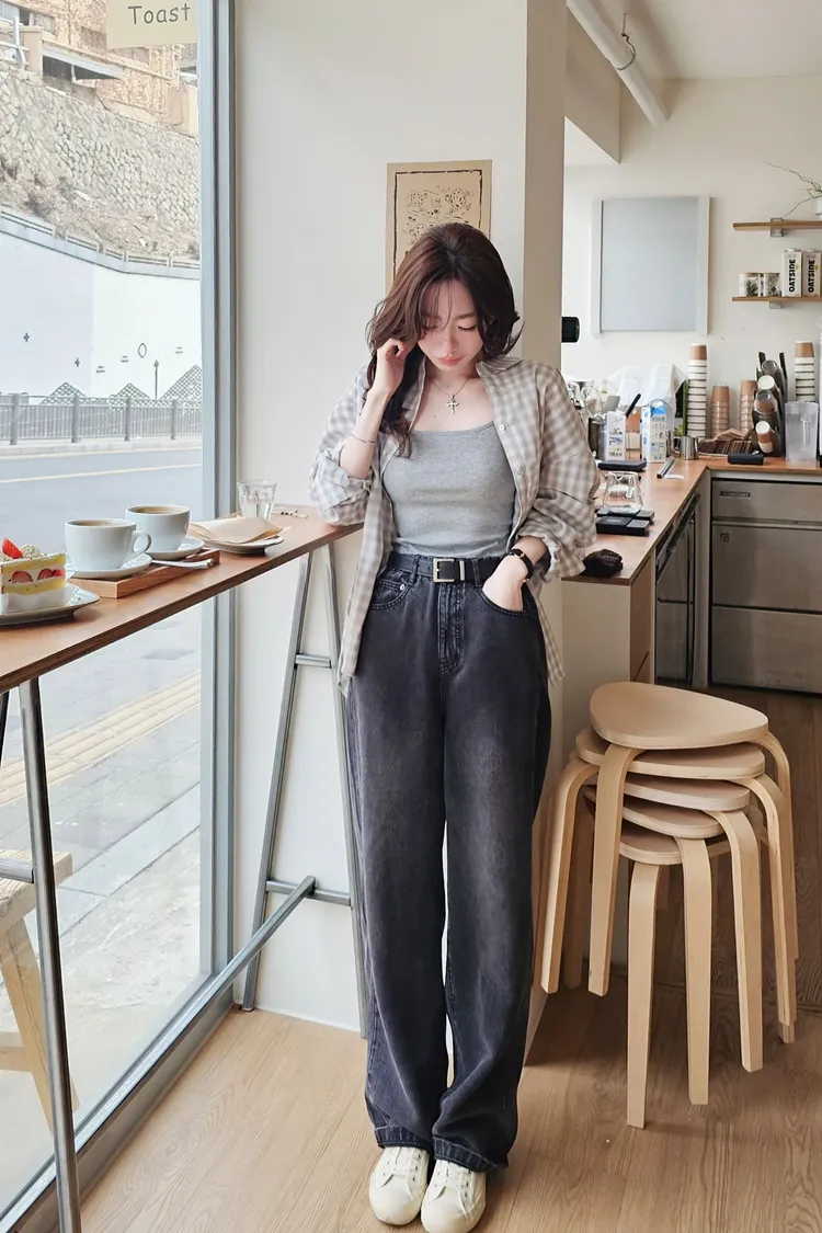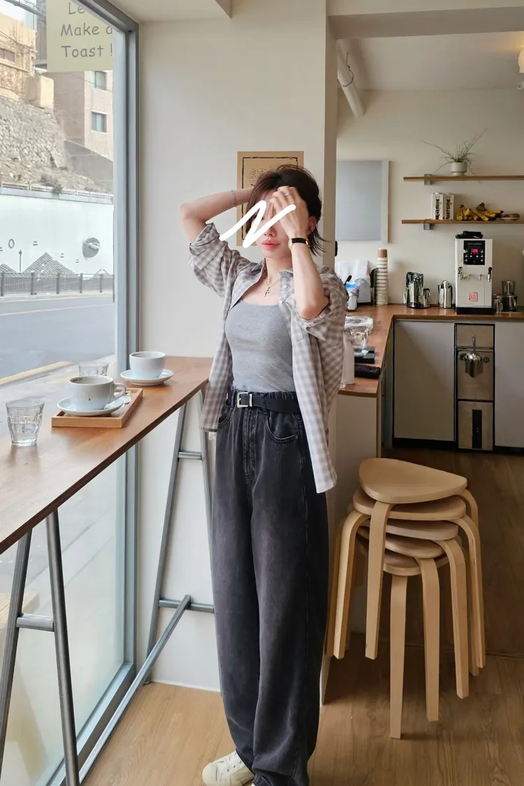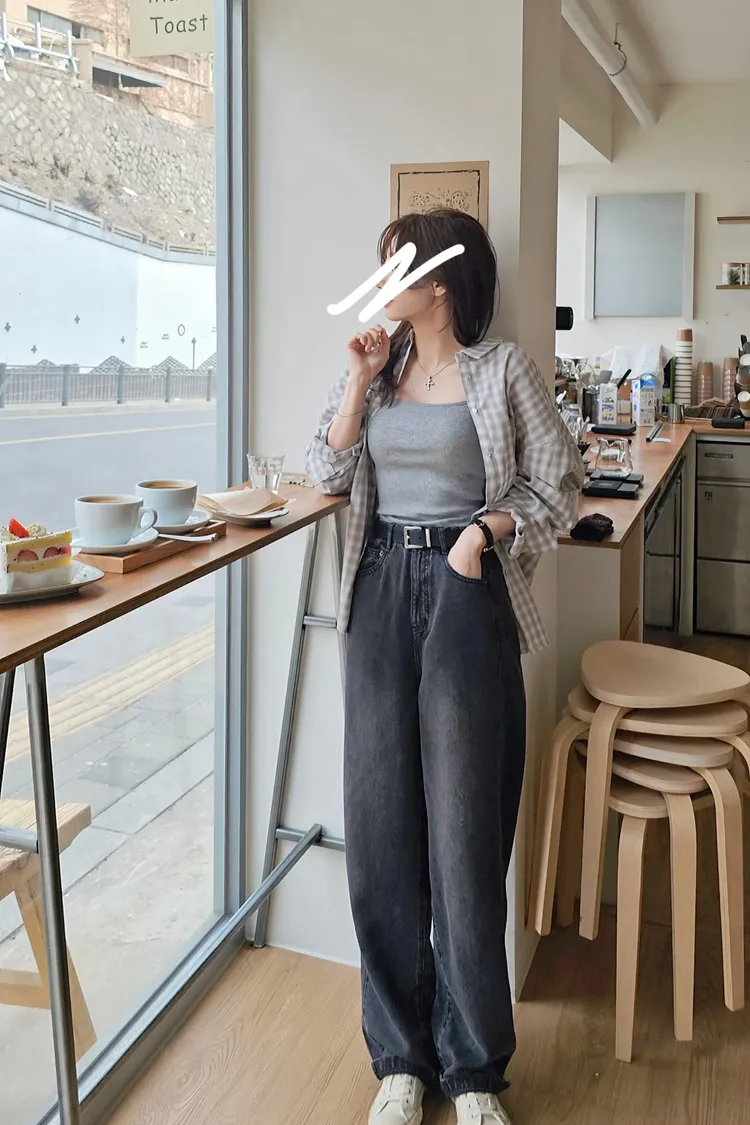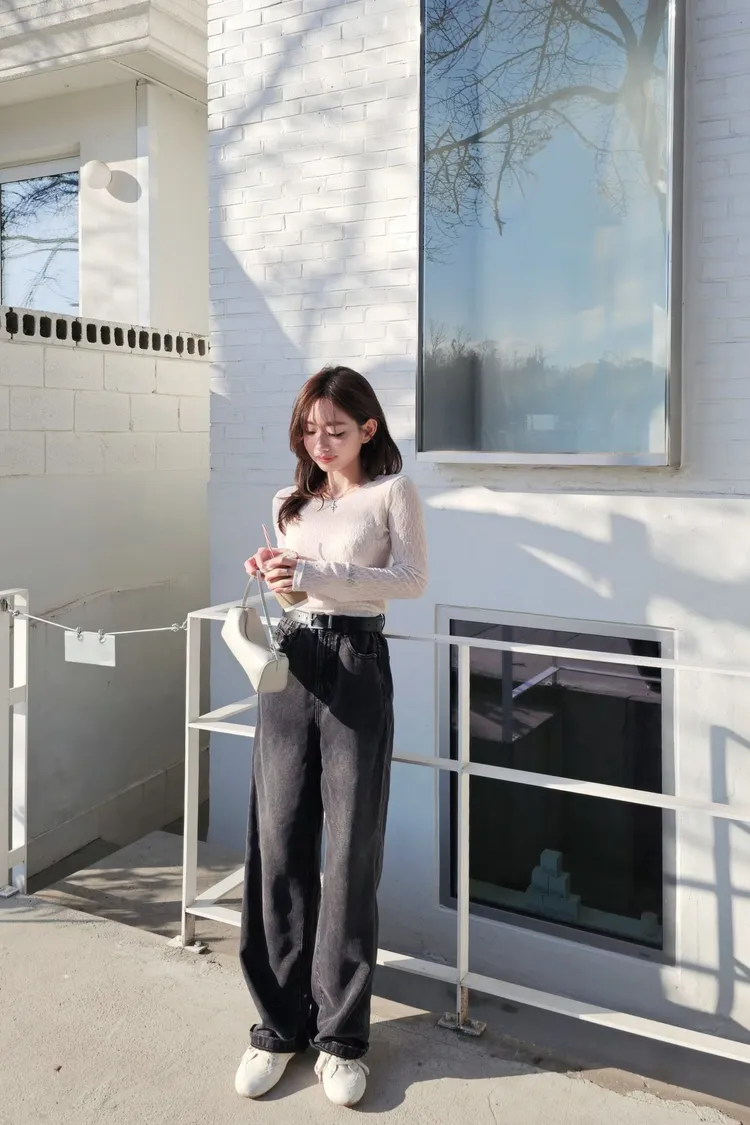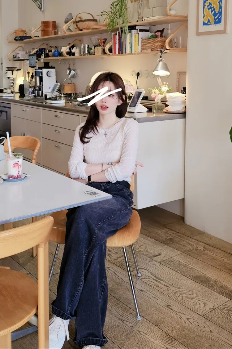 這兩季非常流行的微寬直筒版型,落地長度